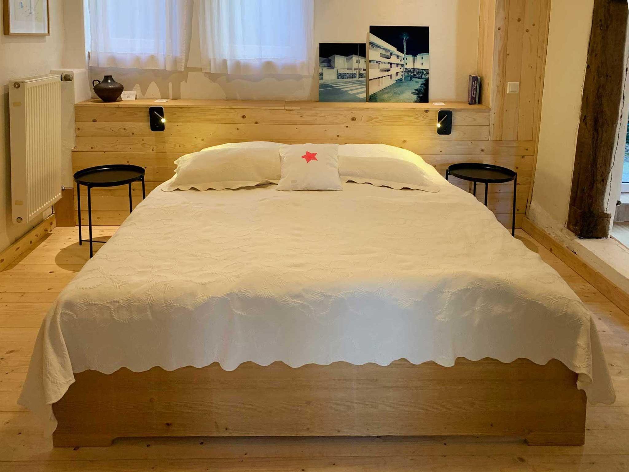 Freut Euch auf ein stilvolles Ambiente mit einem gemütlichen Schlafzimmer, ausgestattet mit einem komfortablen Kingsize-Bett (1,80 x 2,00 m inkl. Bettwäsche) und einem separaten Wohnzimmer mit Schlafcouch (Doppelbett inkl. Bettwäsche). Die offene Küche ist mit allem ausgestattet, was Ihr braucht, darunter ein Ceran-Kochfeld, ein Backofen und ein Kühl-/Gefrierschrank. Der angrenzende Essbereich bietet Platz für 4 Personen – perfekt für gesellige Mahlzeiten. Das Badezimmer ist mit hochwertigen Handtüchern, einem Fön sowie Seife und Duschgel ausgestattet – hier könnt Ihr den Tag erfrischt beginnen. Genießt die ruhige Atmosphäre auf unserer geschützten Garten-Terrasse mit Liegen und gemütlichen Sitzmöglichkeiten – der ideale Ort zum Entspannen. Frühstück – Genuss von Anfang an Der Übernachtungspreis umfasst die Wohnung, jedoch nicht das Frühstück. Auf Wunsch könnt Ihr unser köstliches Frühstück dazu buchen. Wir servieren es täglich von 8:00 bis 10:00 Uhr – solltet Ihr früher aufbrechen müssen, gebt uns einfach am Vorabend Bescheid. Unser Frühstück bietet Euch alles, was Ihr für einen guten Start in den Tag braucht: frisches Brot, selbst gemachte Marmelade, regionaler Honig, frische Rühreier, Bio-Käse, luftgetrockneter Schinken, Stracke-Wurst sowie Joghurt und Müsli aus Bio-Produkten. Ein wahrer Genuss für nur 9,50 Euro pro Person. Für aktive Gäste: Fahrräder zur Miete Für unsere Gäste, die ohne Fahrräder anreisen, halten wir 4 hochwertige Räder zur Miete bereit, damit Ihr die Umgebung bequem erkunden könnt. Unsere Stube – Gemütlichkeit und regionale Köstlichkeiten Direkt gegenüber erwartet Euch unsere „Stube“ – ein einladender Raum, um den Tag ausklingen zu lassen. Morgens könnt Ihr Euch hier bei unserem Frühstück mit Bio-Produkten stärken. Nach einem erlebnisreichen Tag laden wir Euch ein, bei selbst gebackenem Kuchen, frisch gebrühtem Kaffee und Bio-Tee zu verweilen. Wenn Ihr Lust auf eine herzhaftes Brotzeit habt, genießt regionale Bio-Käse und Wurst auf der Terrasse. Für den entspannten Abend bieten wir eine Auswahl an ausgesuchten Weinen und kühlem Bier, die immer für Euch bereitstehen. Und an den Wochenenden sowie an speziellen Tagen bieten wir unseren beliebten Grill- / Barbecue-Abend – perfekt für gesellige Stunden!