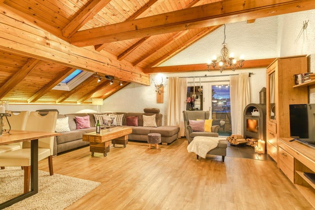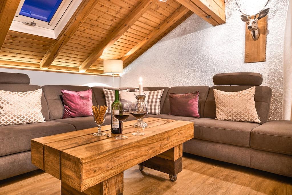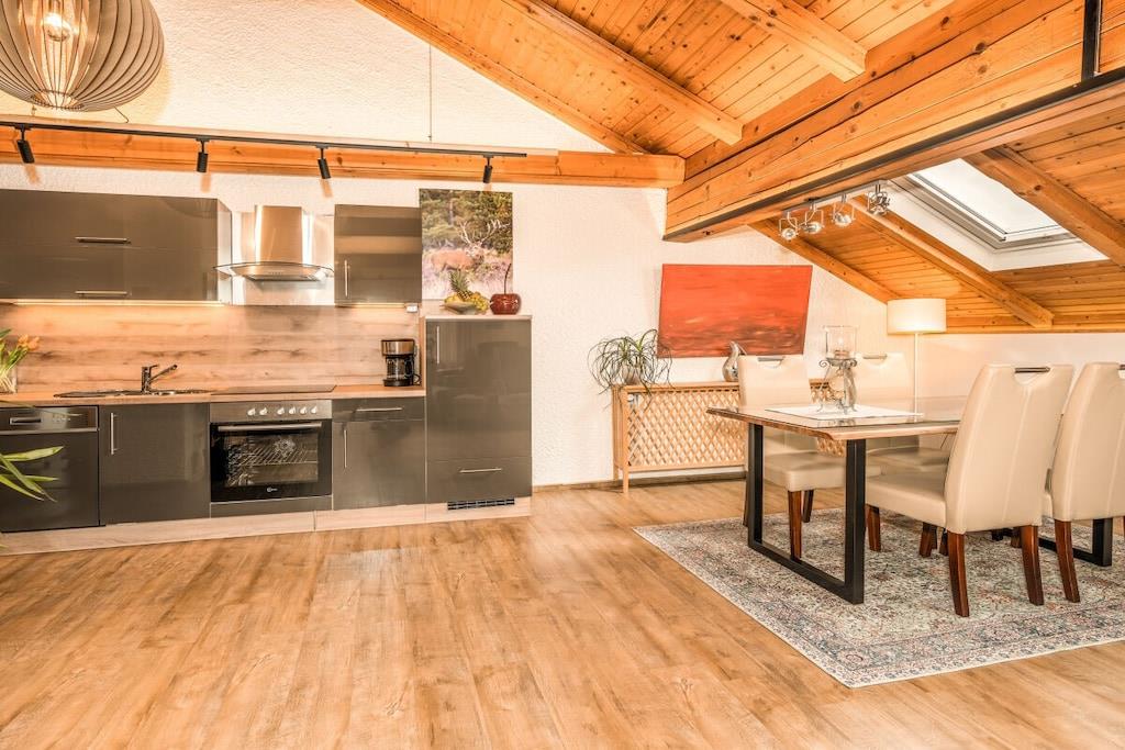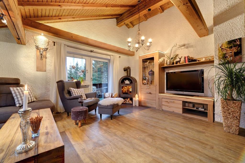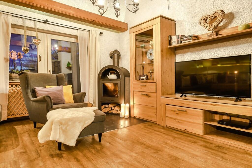 Die Ferienwohnung hat eine Wohnfläche von ca.80m² und ist gemütlich und hochwertig eingerichtet. Die Wohnung besteht aus Vorflur, großen modern eingerichteten Wohnzimmer mit neuen 50-Zoll-HD-Fernseher, zusätzlichem Kaminofen, großer Küchenzeile mit Geschirrspüler, gemütlicher Eßecke, separatem Schlafzimmer mit 2. Fernseher, Dusche-WC, ca. 10m Süd-West-Balkon nach hinten zum Garten und vielem mehr. Ein eigener Parkplatz befindet sich direkt am Haus. Bettwäsche, kostenloser Hand- und Duschtuchwechsel sowie WLAN sind inklusive.