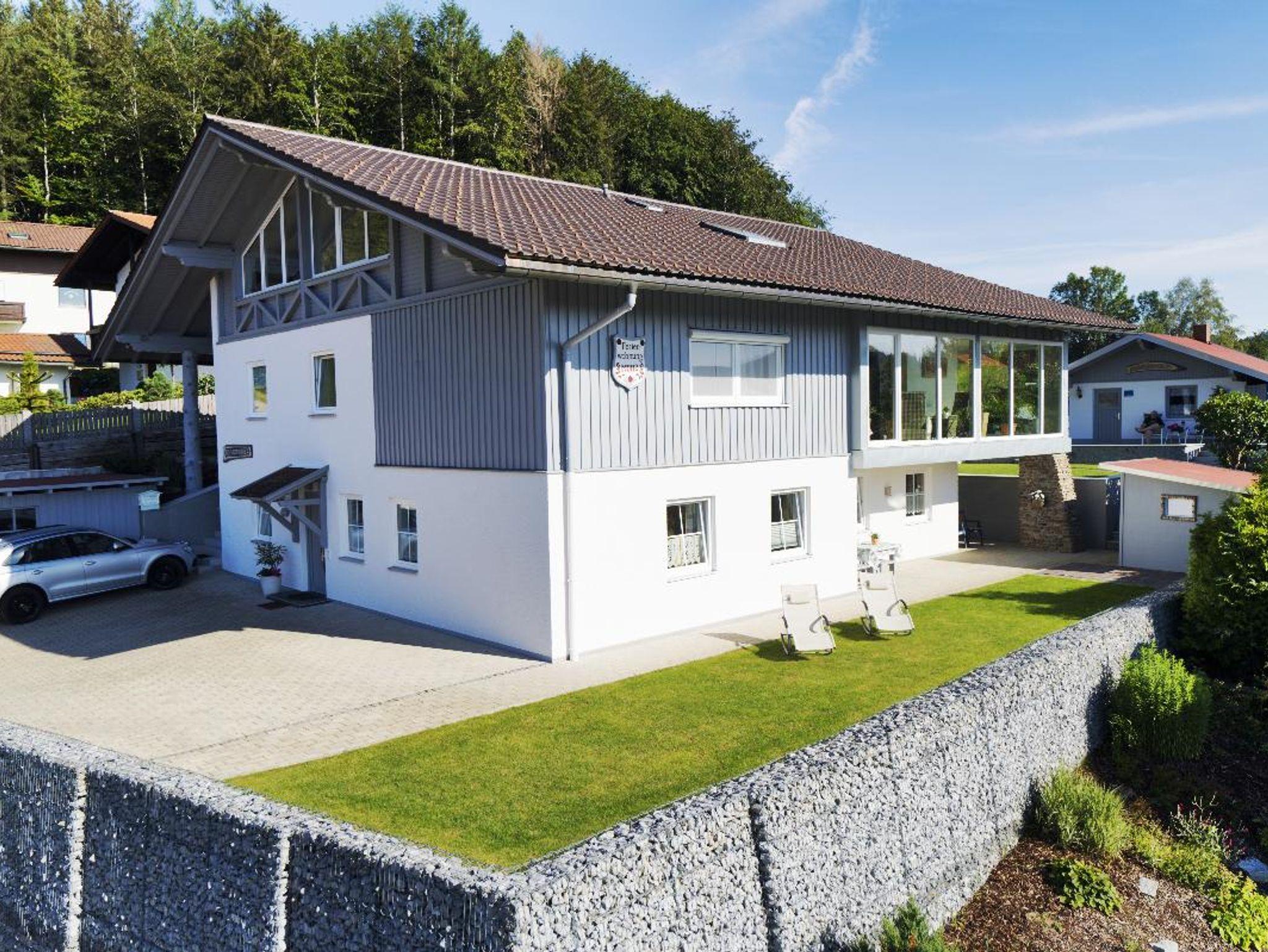 Unsere Ferienwohnungen liegen in ruhiger Hanglage, direkt am Waldrand. Auf der sonnigen Liegeterrasse mit einem herrlichem Blick auf Bodenmais können Sie gemütliche Stunden verbringen und den Alltagsstress hinter sich lassen.