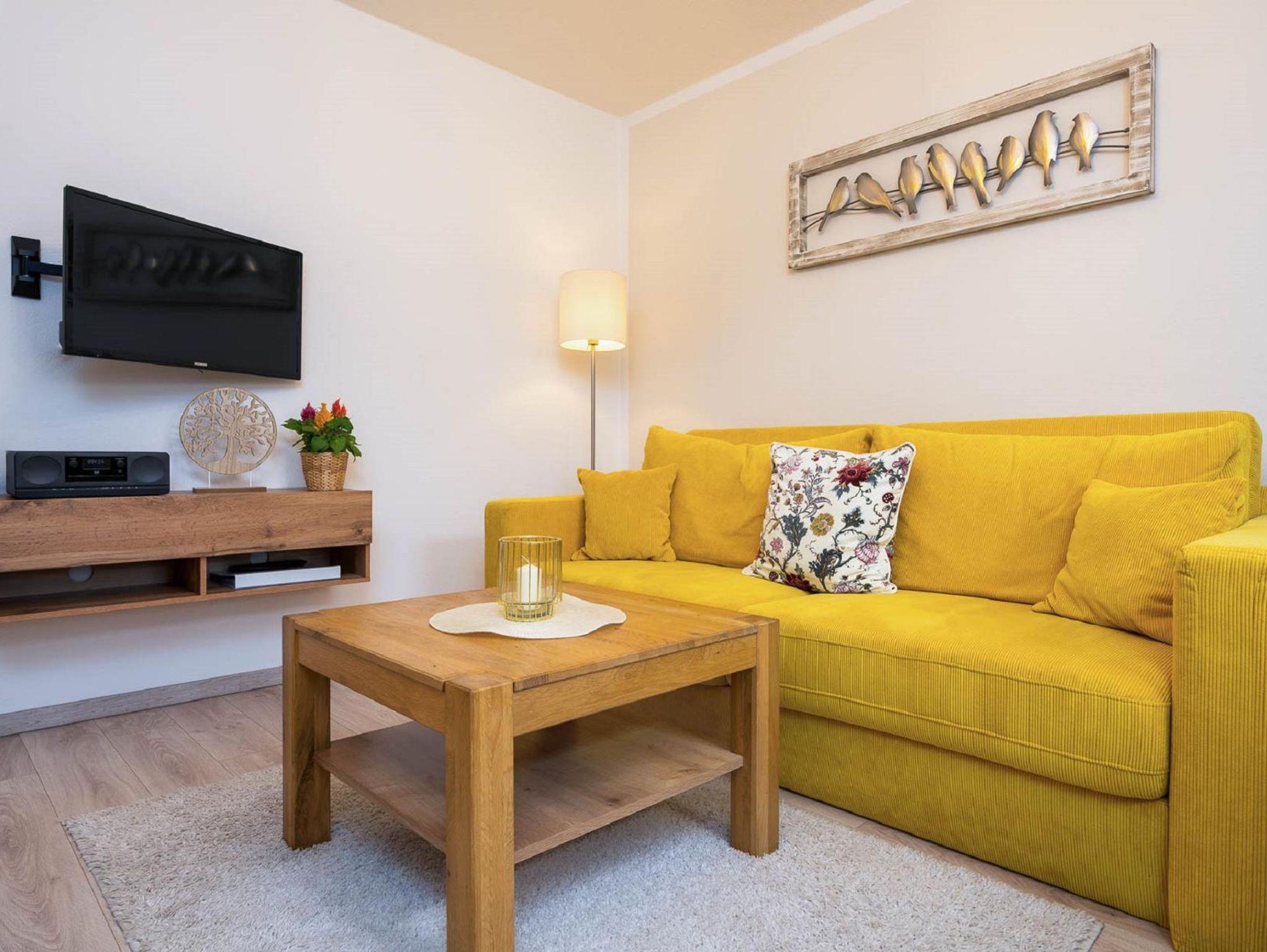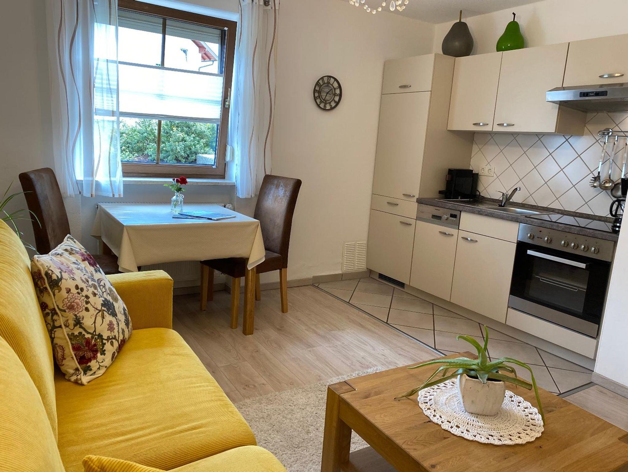 Unsere neugestaltete Ferienwohnung mit 41m2 Wohnfläche im Erdgeschoss bietet Platz für 1-2 Personen. Das gemütliche Wohnzimmer mit Couch, Esstisch mit Stühlen und SAT-TV lädt zum Verweilen ein. Die komplett ausgestattete Einbauküche mit Backofen, Herd, Kaffeemaschine und Kühlschrank lässt keine Wünsche offen. Die Ferienwohnung verfügt über ein Schlafzimmer mit einem Doppelbett. Das helle Badezimmer mit geräumiger Dusche rundet das Gesamtbild ab. Auf der Terrasse können Sie entspannte Tage genießen. Das WLAN und den Parkplatz vor dem Haus können Sie kostenfrei nutzen.
