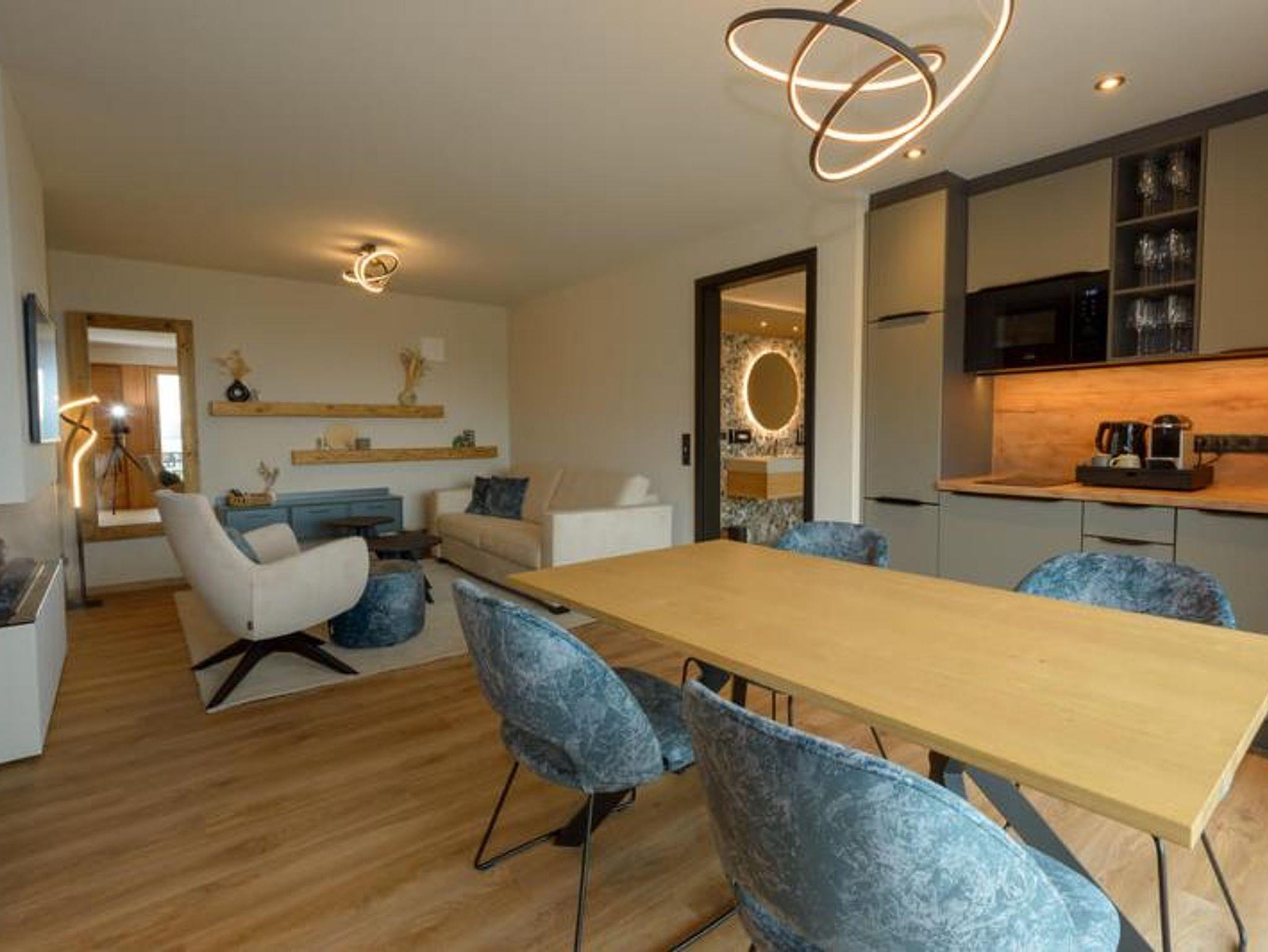 Die Unterkunft bietet Platz für bis zu 4 Personen und besteht aus einem großzügigen Raum, der Schlafzimmer, Wohnzimmer und eine voll ausgestattete Küche mit Geschirrspüler vereint. Der Schlafbereich lässt sich durch einen Vorhang abtrennen. Ein Wohlfühl-Badezimmer mit Badewanne und Regendusche, eine exklusive Sauna und ein gemütlicher Kamin sorgen für Entspannung.