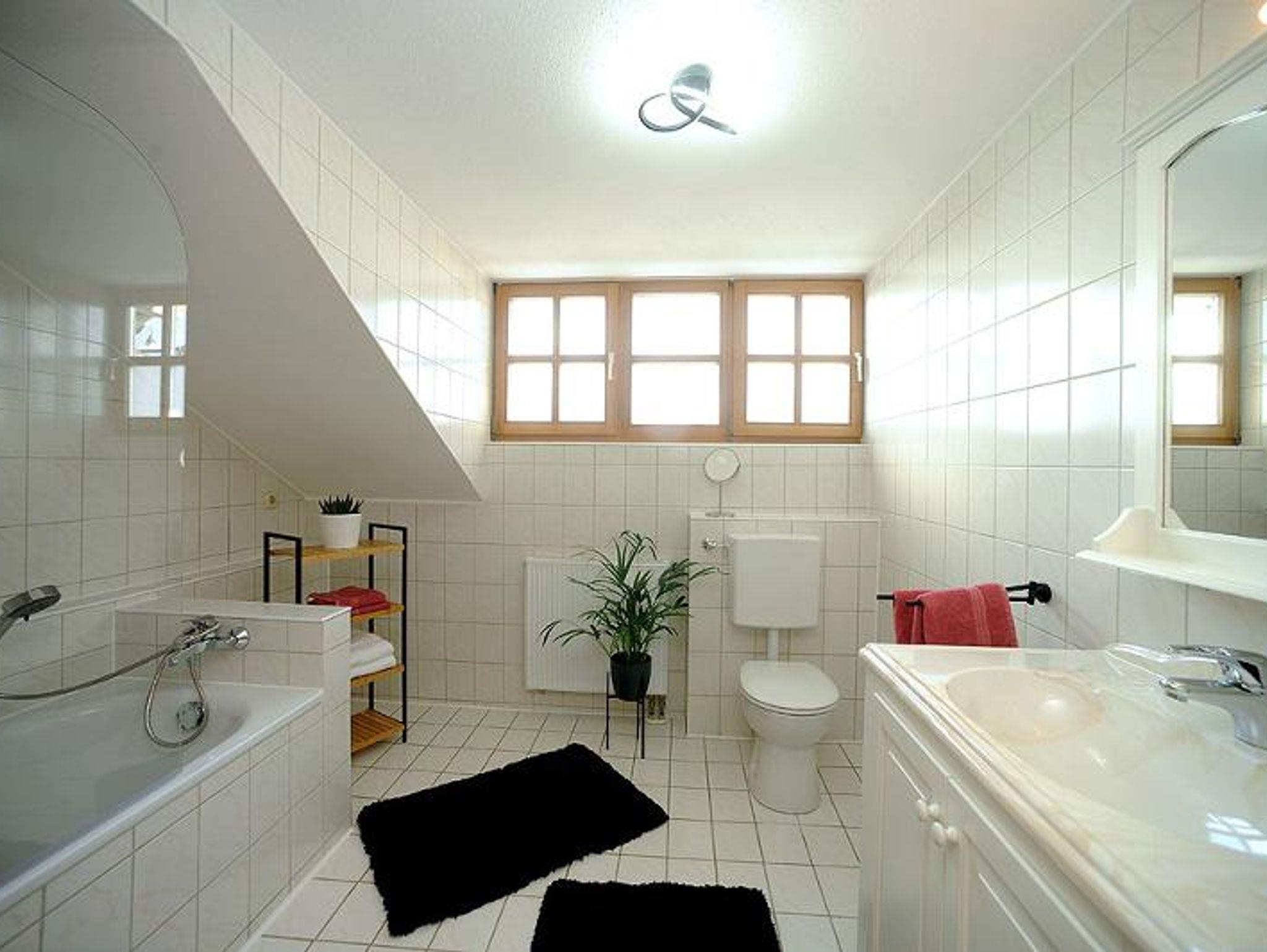 Das Badezimmer verfügt über eine Badewanne. Die Küche ist voll