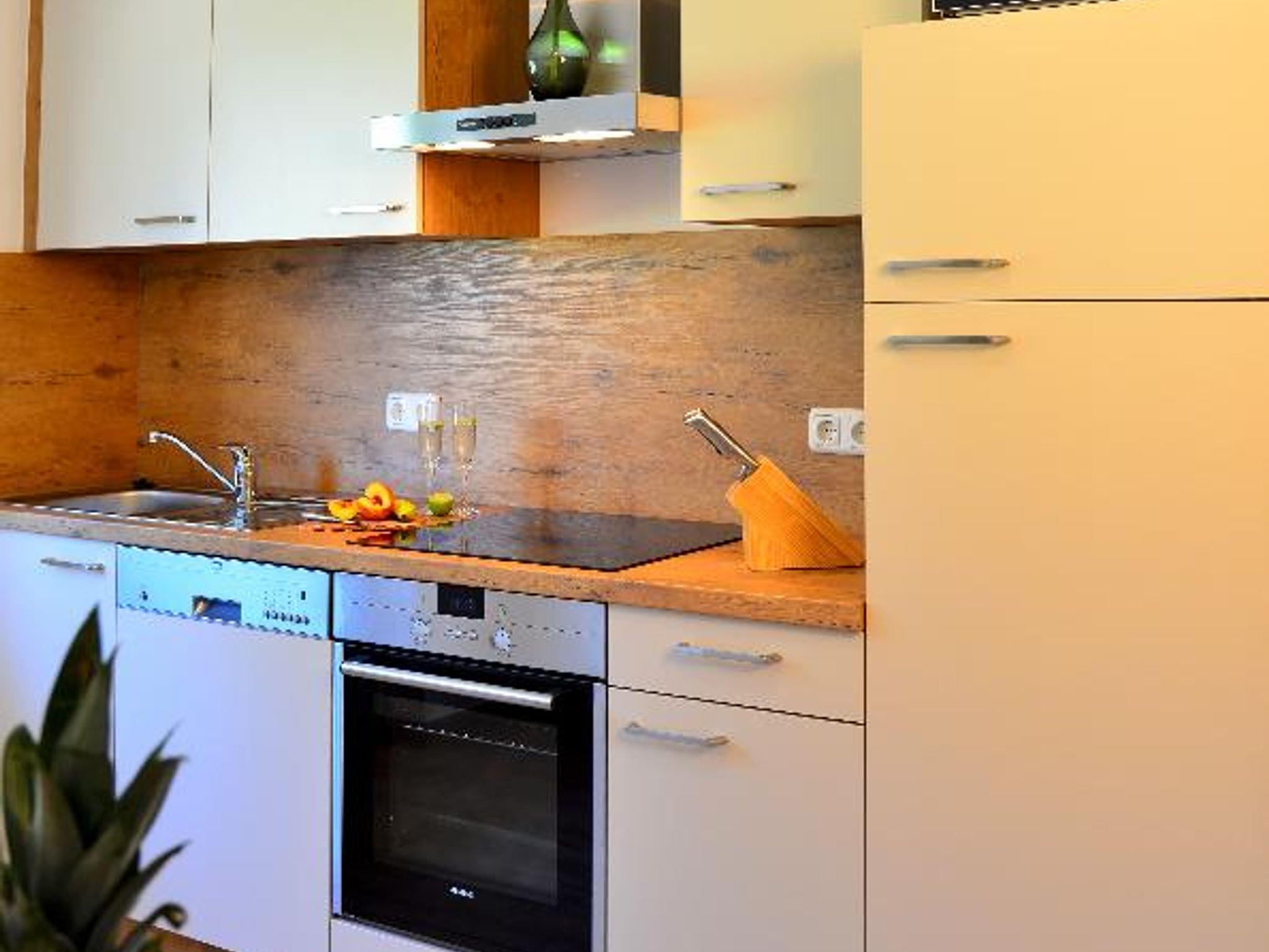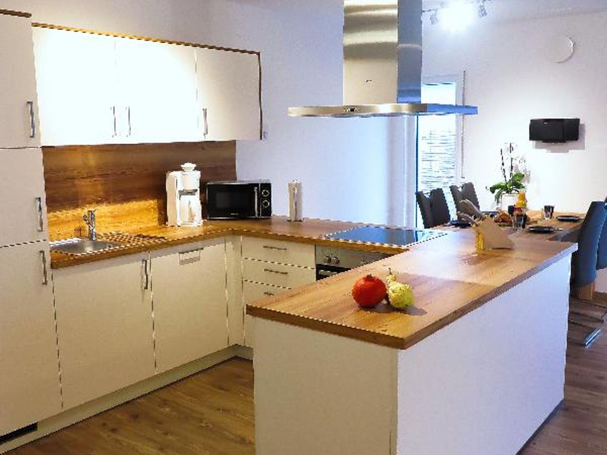 Unsere modernen und großzügigen 4****Sterne Ferienwohnungen Sebastian und Fidelis im Erdgeschoss bzw. Parterre verfügen unter anderem über eine gemütliche Küche mit Spülmaschine, Mikrowelle, Eierkocher, Wasserkocher, Kaffeemaschine/Padmaschine und Toaster, ein neues Bad und eine neue, moderne Einrichtung. Die Wohnungen 1 und 2 im Obergeschoss wurden von März bis Juni 2017 zu einer geräumigen 95qm Wohnung für bis zu 6 Personen umgebaut. Ferienwohnung Verena