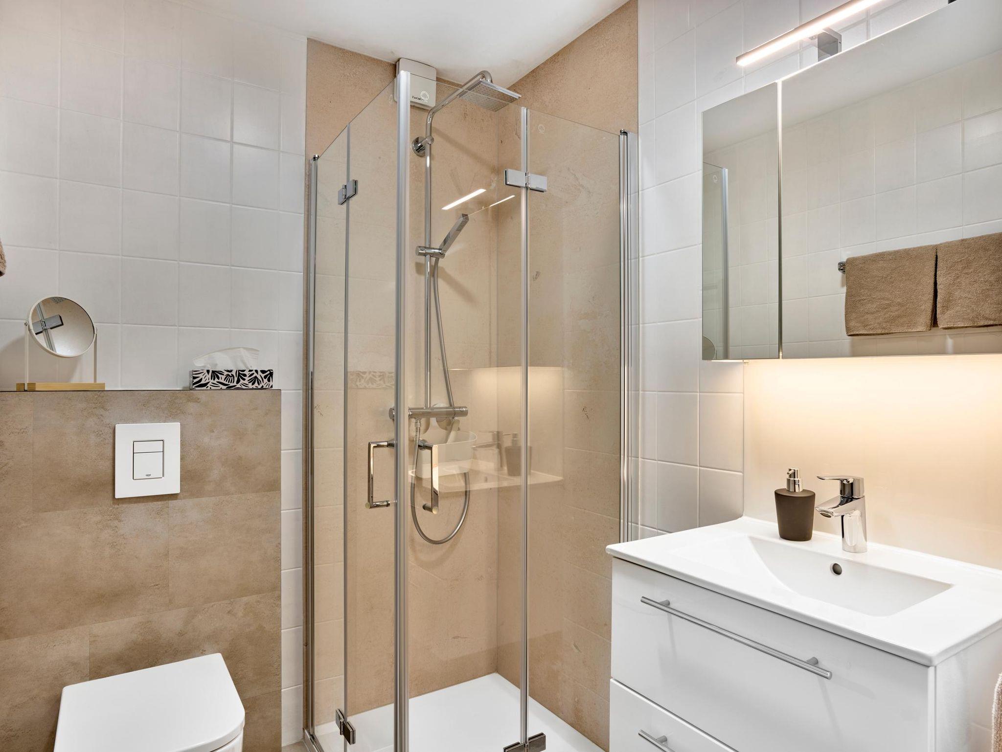 getrennten Matratzen. Das Badezimmer verfügt über Dusche und WC.