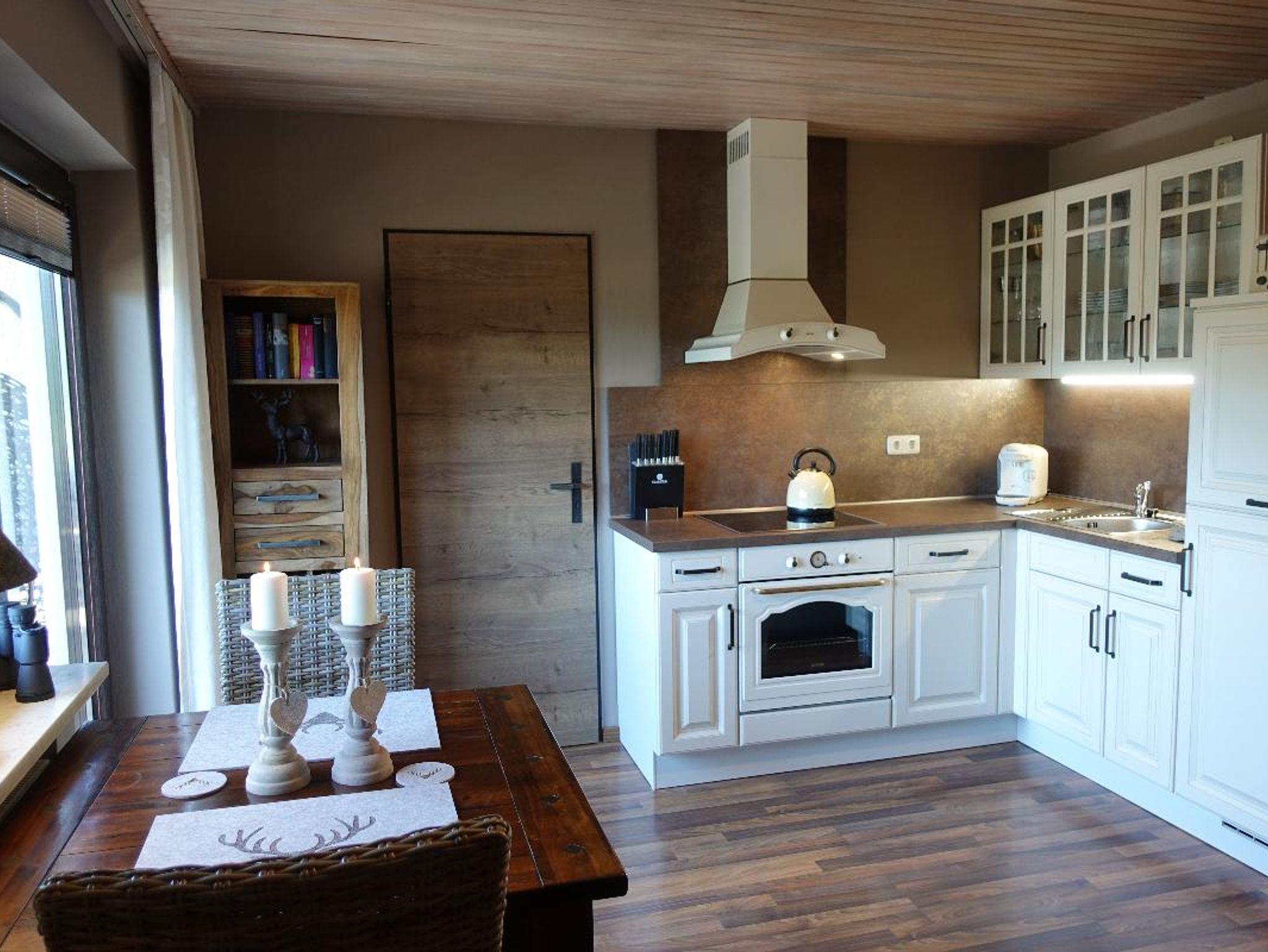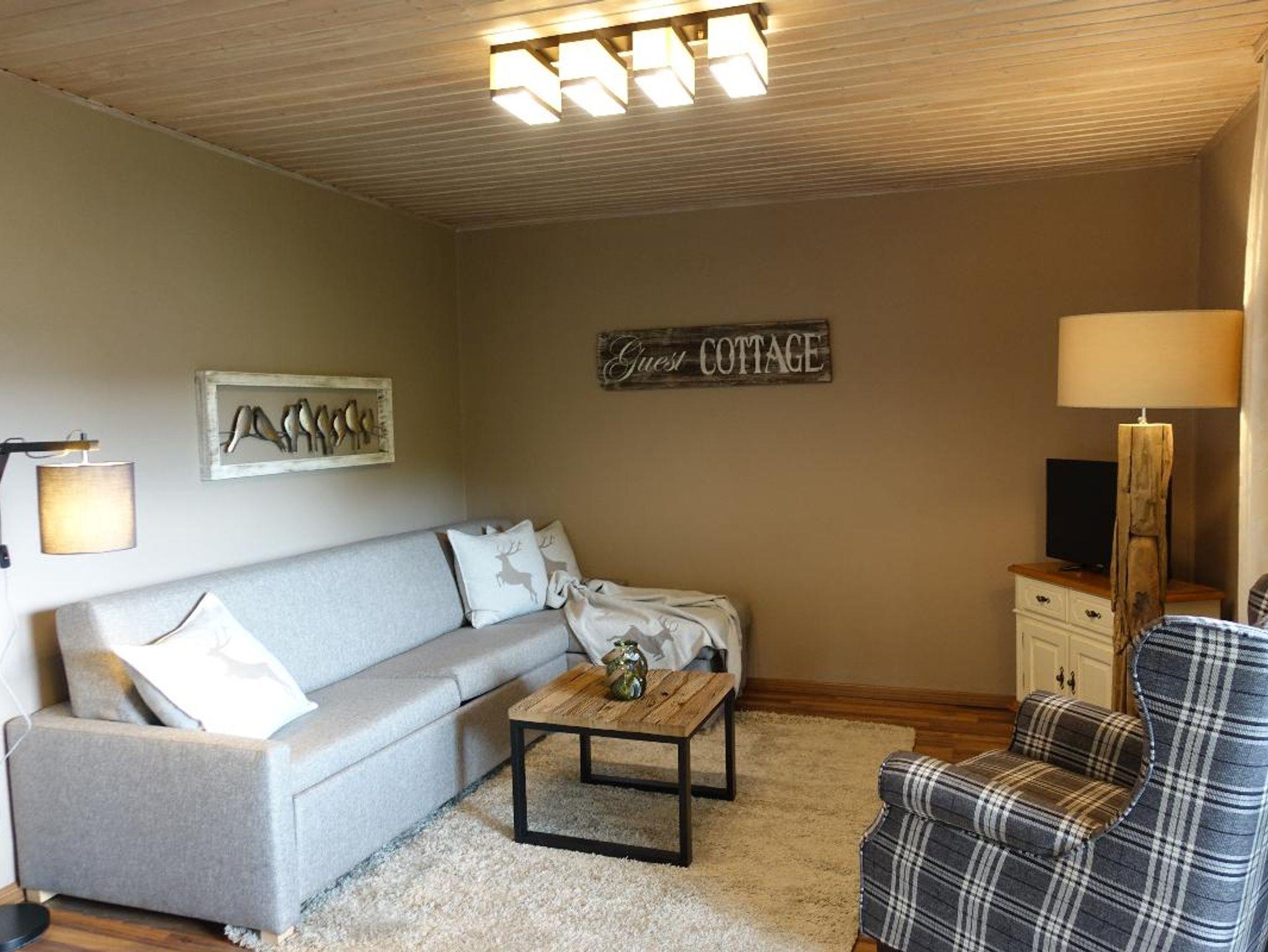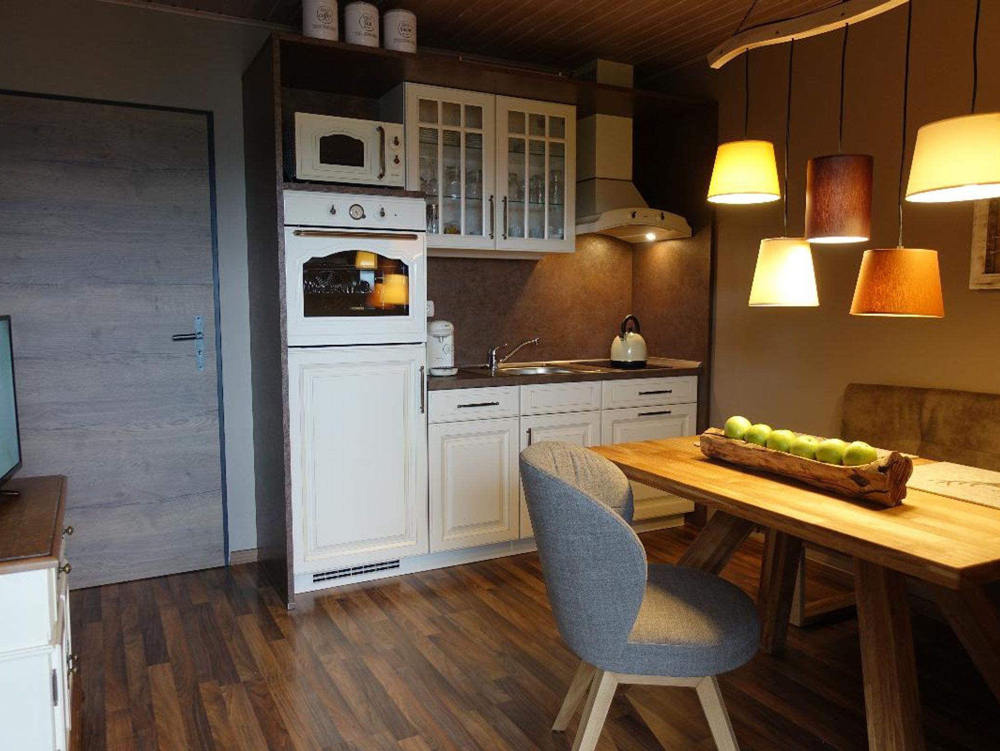 Auf ca. 30 qm bieten wir Dir in diesem Ferienhaus gemütlichstes Ambiente: mit abgeteiltem Schlafbereich (Bett 180x200cm), gemütlicher Sitzecke mit SAT-TV & WLan, hochwertiger Küchenzeile, Bad mit Dusche & WC, einem Kriechboden mit 2 weiteren Schlafplätzen, sowie einer teilüberdachten Südterrasse.