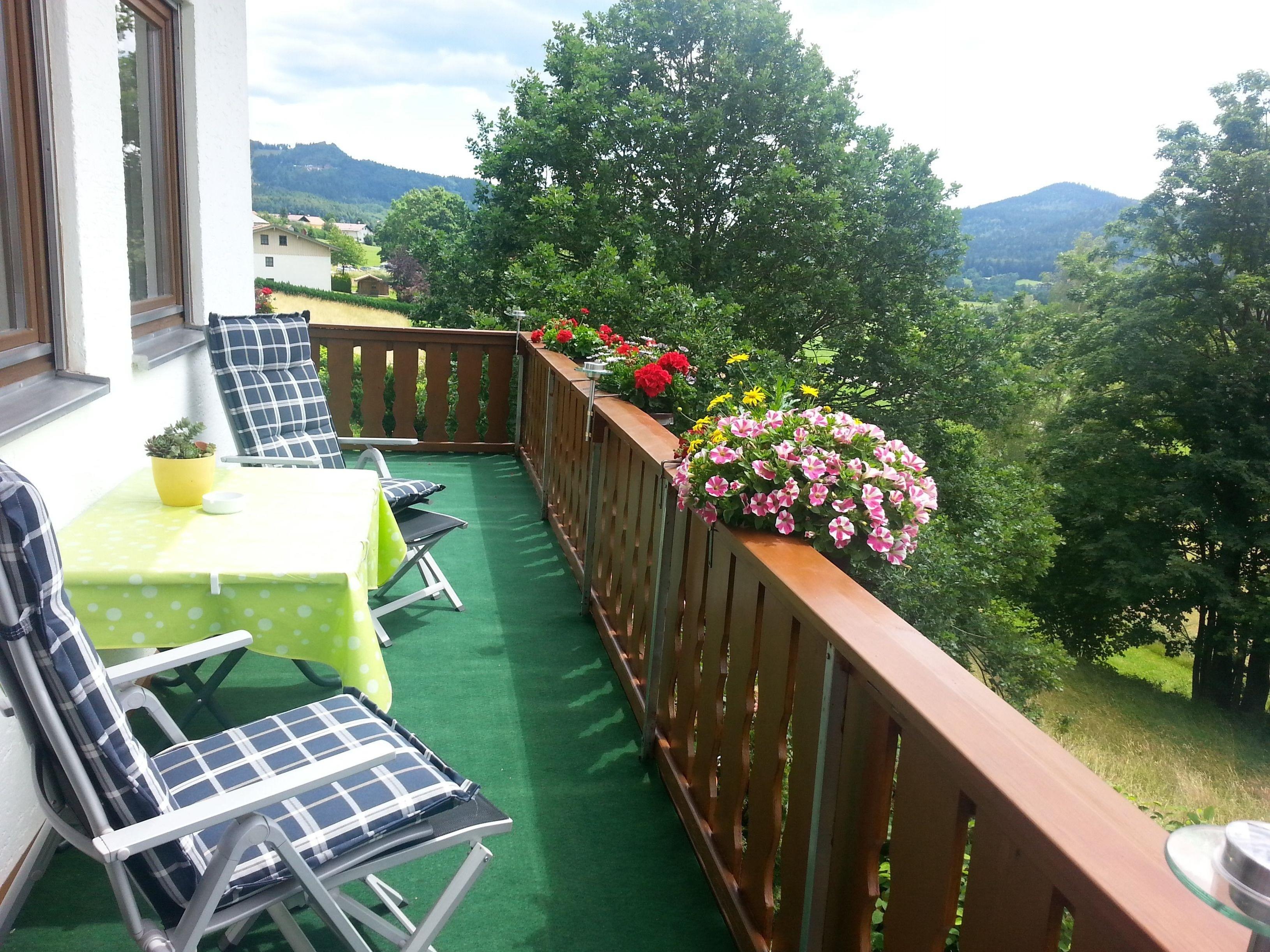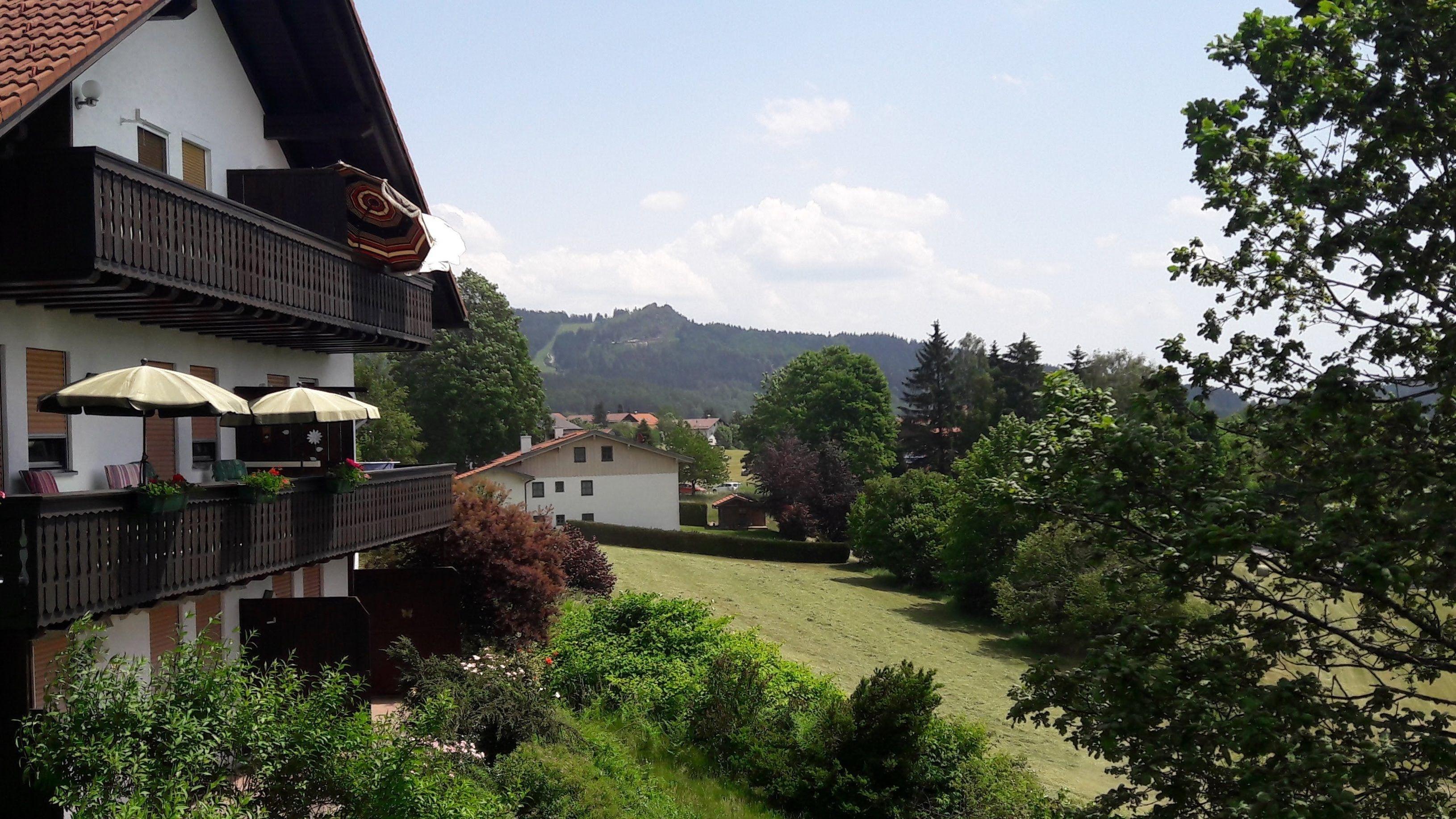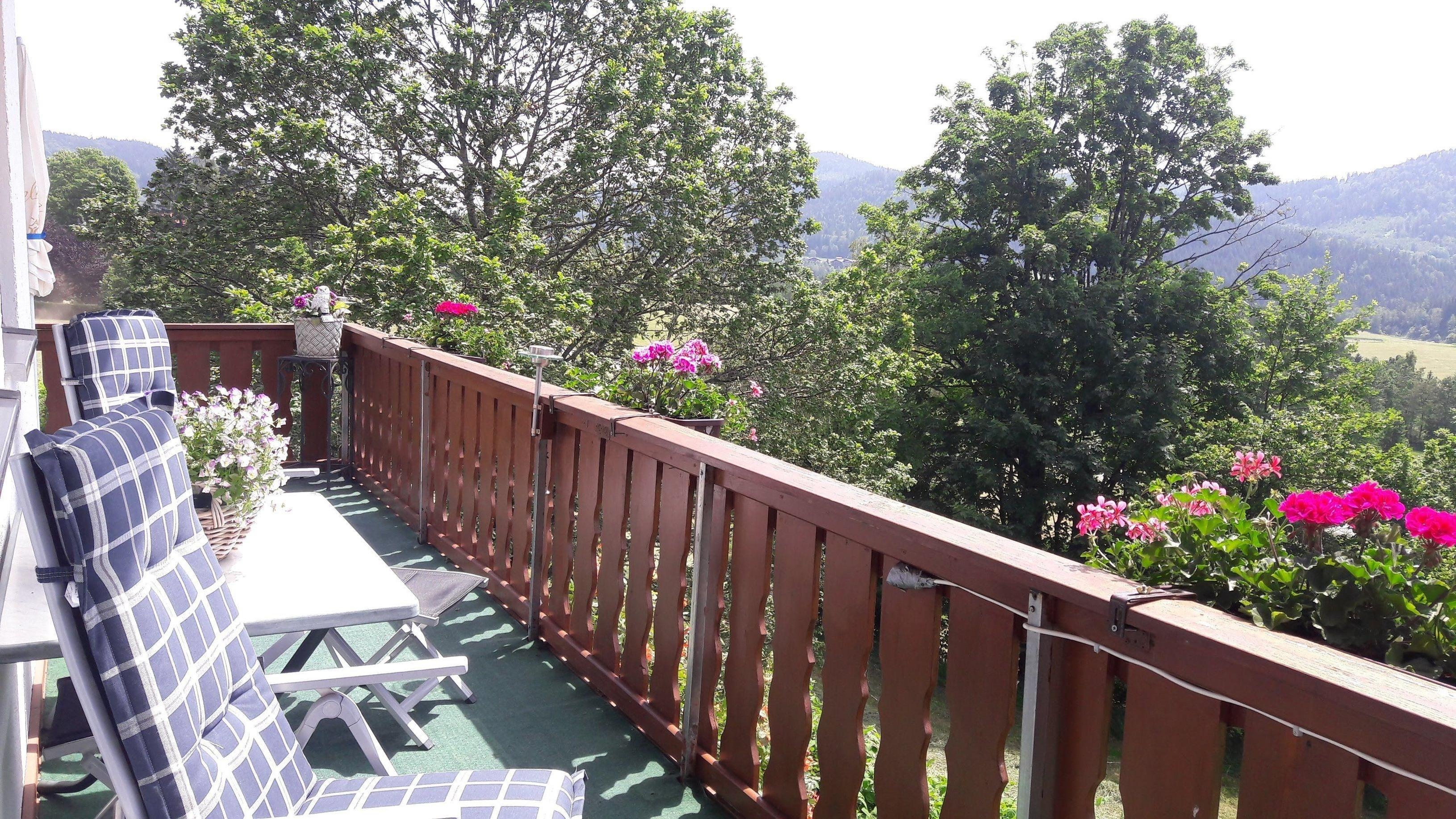 Die Ferienwohnung Panoramablick ist in Bodenmais und hat einen herrlichen Balkon in Richtung Süden. Er bietet einen wunderschönen Ausblick auf den Silberberg und den Harlachberg.
