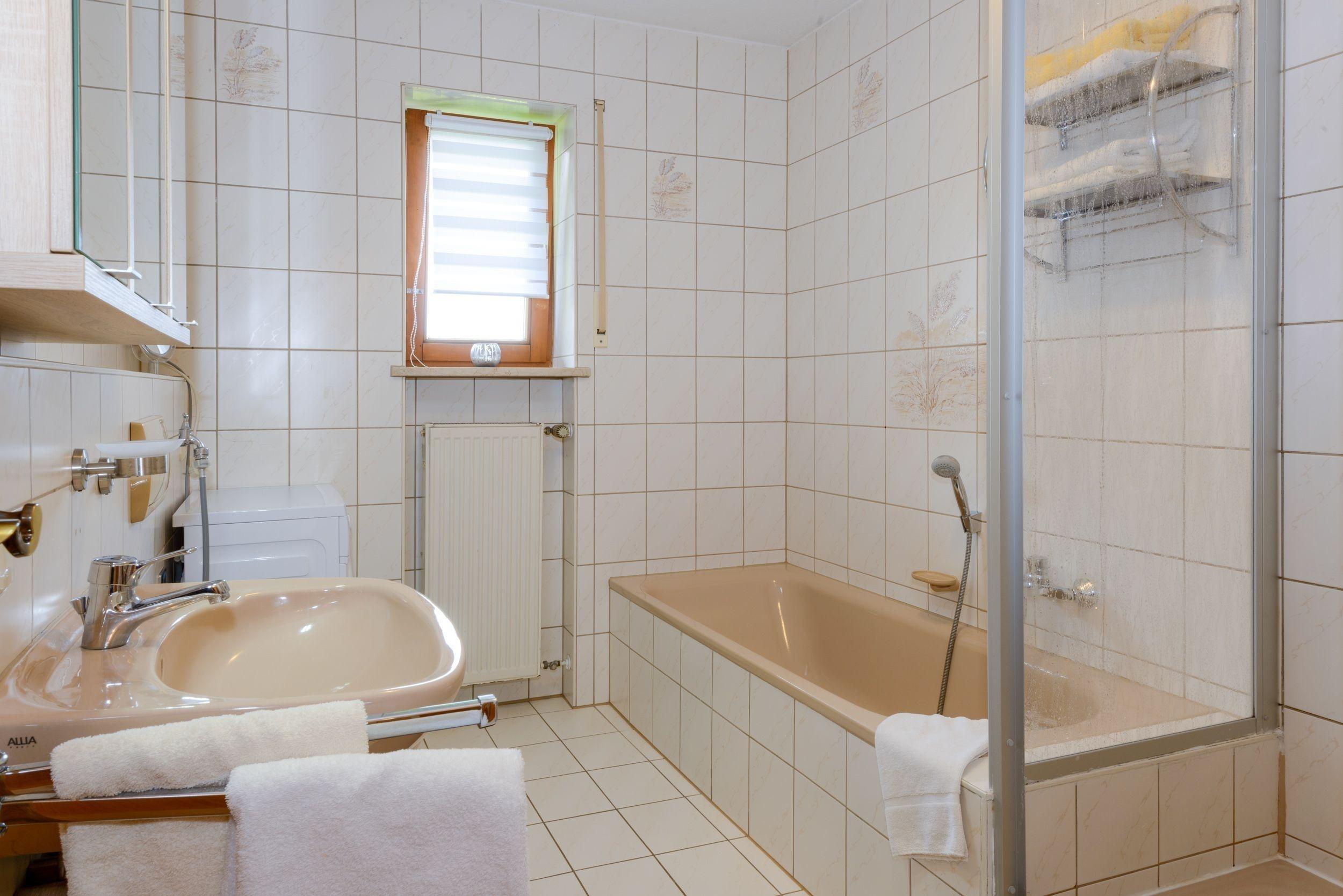 Bad mit Dusche,Badewanne und WC.