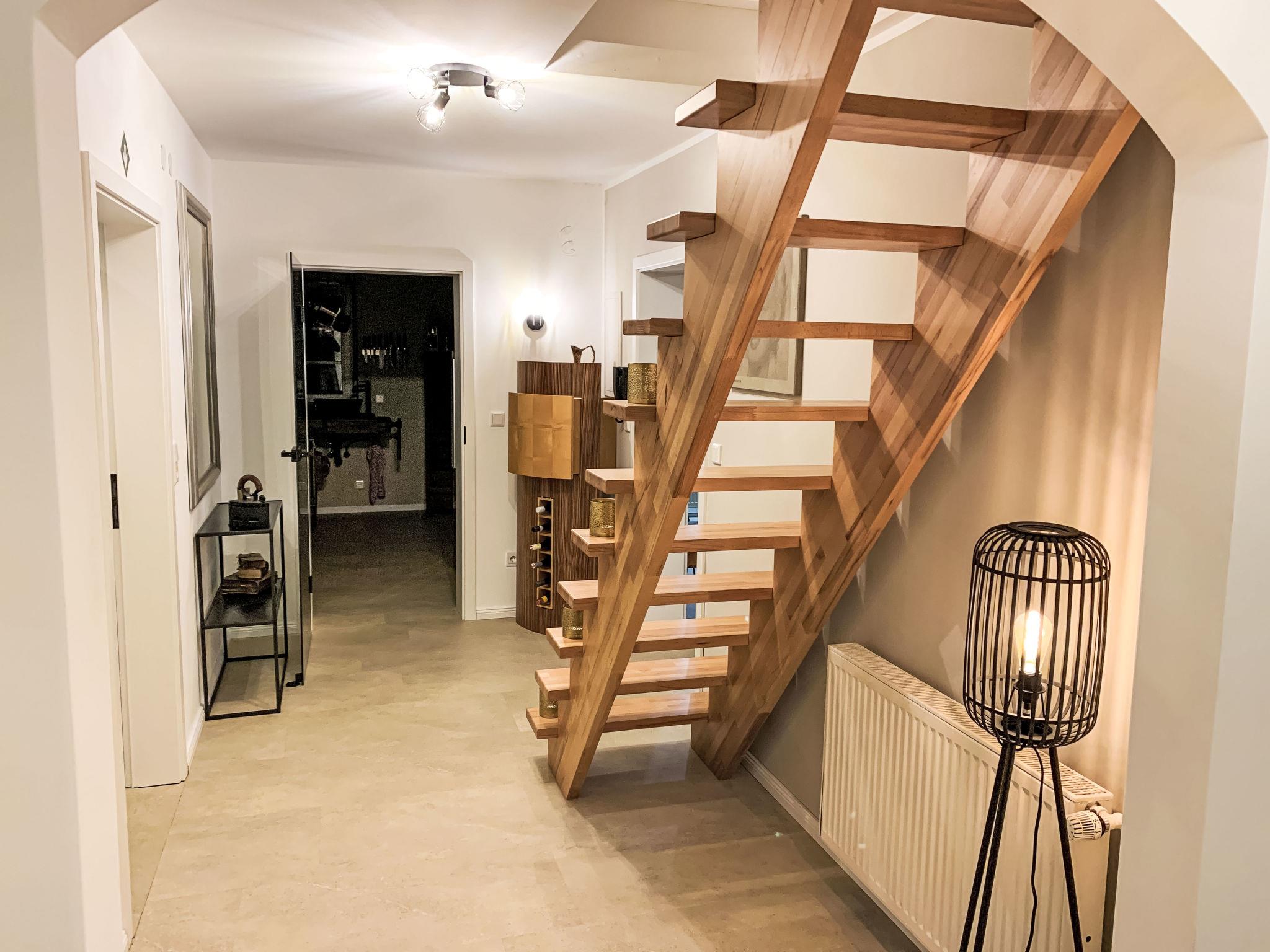 3-family house, 3 storeys. In the resort 500 m from the centre of Bodenwerder, 25 km from the centre of Bad Pyrmont, 27 km from the centre of Holzminden, in a sunny, elevated position on a slope, in the countryside. Public parking 20 m. Shop, grocery, supermarket 500 m, restaurant, bus stop 100 m, railway station "Emmertal" 10 km, outdoor swimming pool 10 km, indoor swimming pool 1 km. Golf course (18 hole) 10 km, tennis 1 km, riding stable 2 km. Nearby attractions: Hameln 23 km, Bad Pyrmont 25 km, Kloster Corvey 33 km. Hiking paths: Weserbergland 500 m, Naturpark Solling-Vogler 33 km. Bicycles can be stored in a lockable and monitored area (workshop).