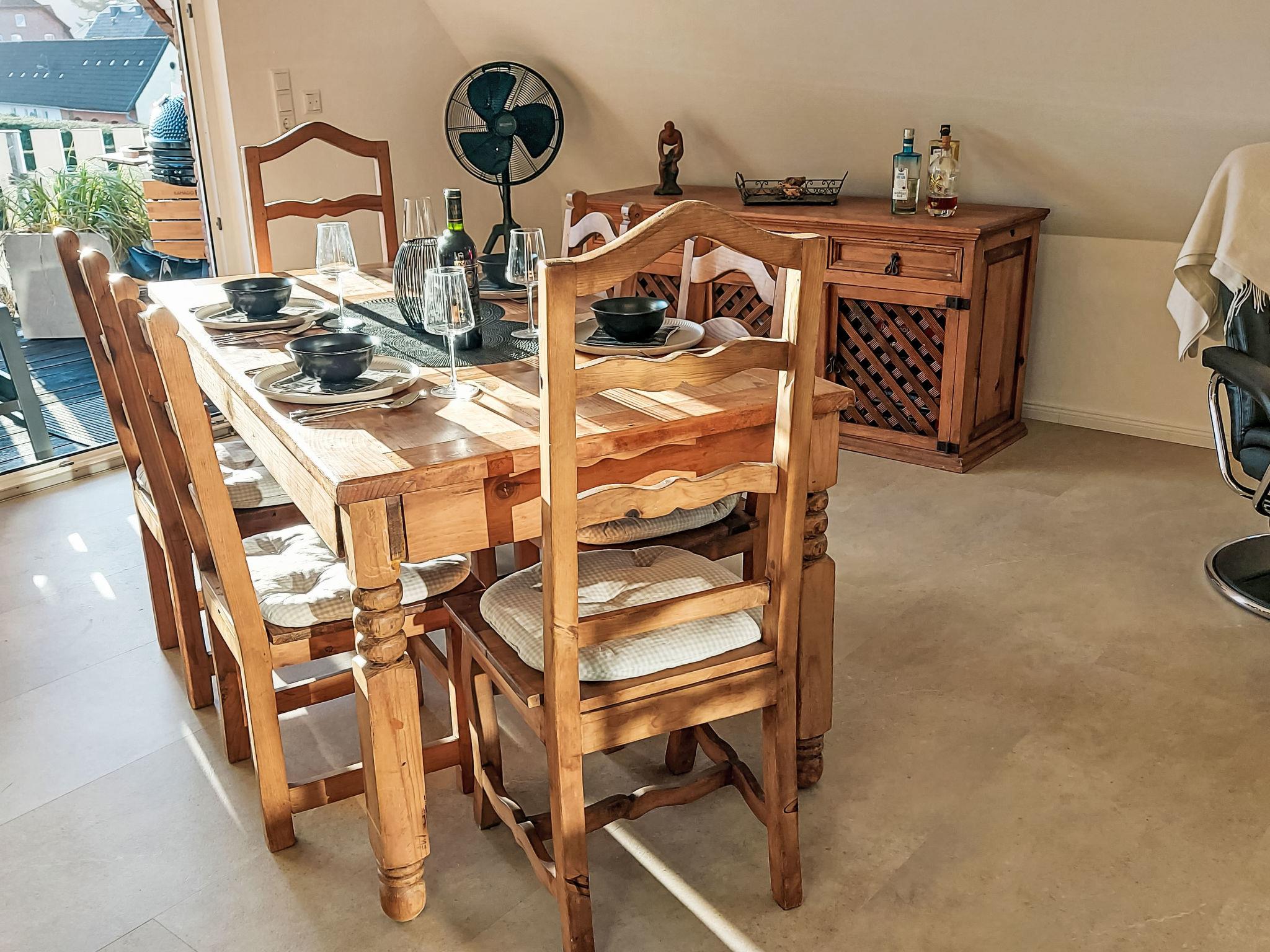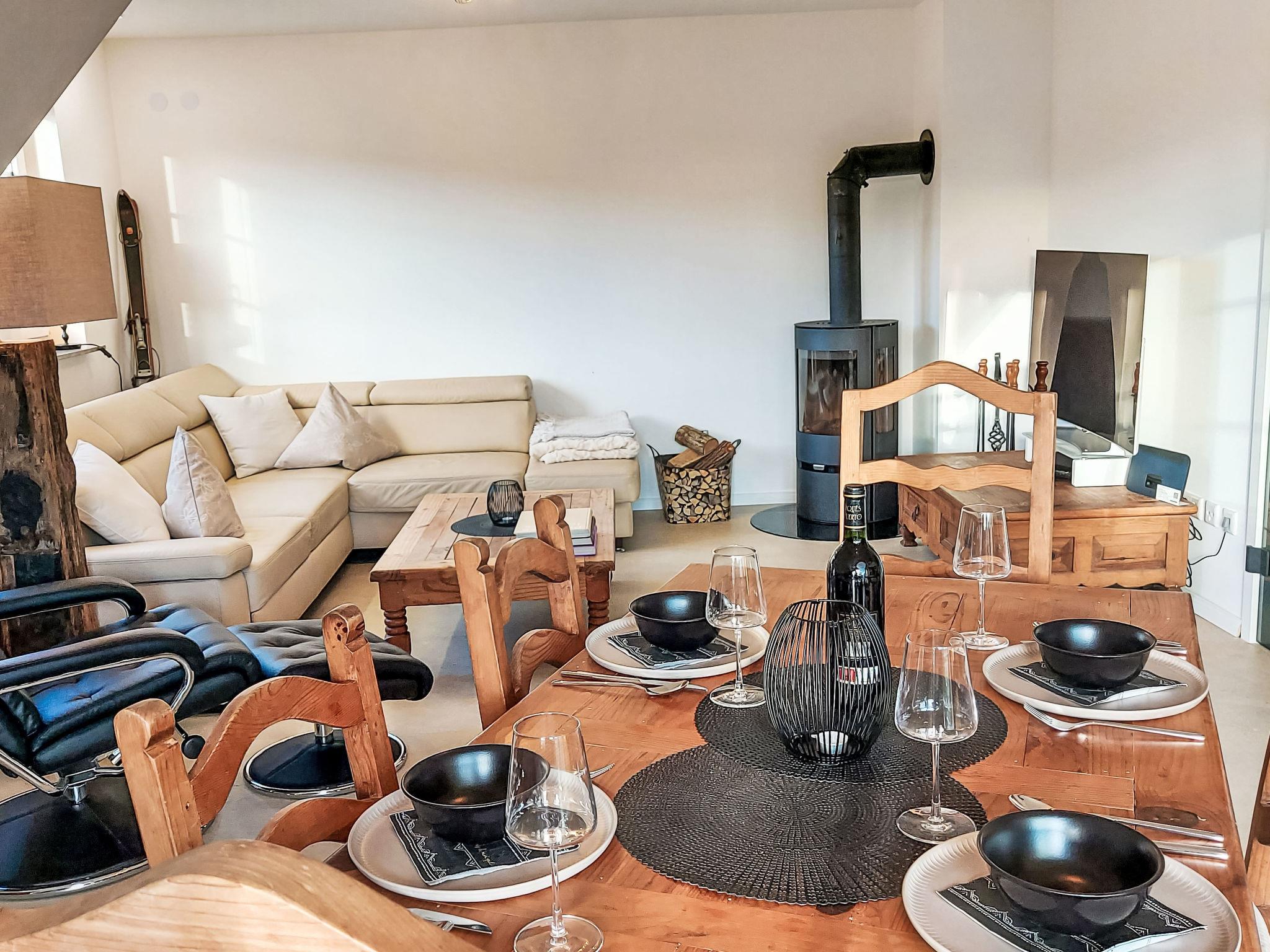 "Casa Ela", 3-room apartment 100 m2, on the upper floor. Renovated in 2024, beautiful and modern furnishings: living/dining room with Scandinavian wood stove, dining table and satellite TV (flat screen). Exit to the balcony. 1 room with 1 double bed (180 cm, length 200 cm). 1 room with 1 double bed (200 cm, length 200 cm). Kitchen (2 hot plates, oven, dishwasher, toaster, kettle, microwave, freezer, electric coffee machine). Sep. WC, bath/shower/WC. Gas heating. Balcony 12 m2. Balcony furniture, box-room. View of the countryside and the resort. Facilities: washing machine, iron. Internet (WiFi, free). Please note: non-smokers only. Smoke alarm, fire extinguisher.