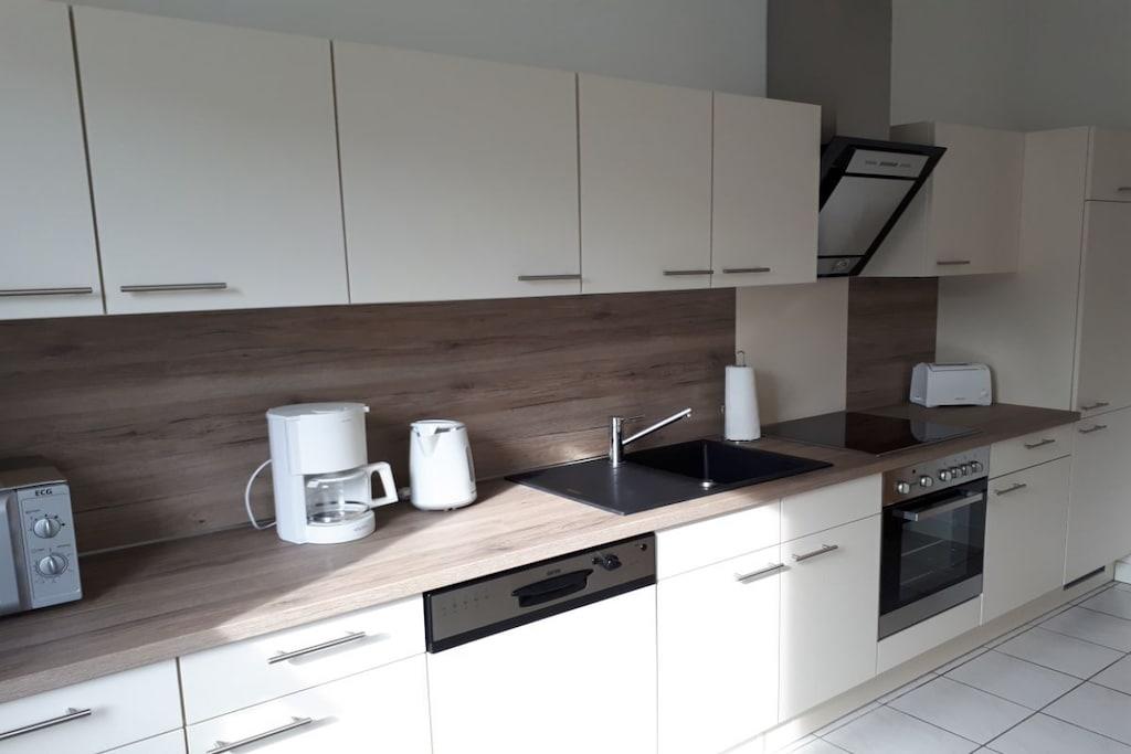 Das Herzstück dieser Wohnung ist die umlaufende Dachterrasse die zum einen den herrlichen Blick auf die Weser und die Altstadt Bodenwerder bietet, und zur anderen Seite der direkte Blick auf die am Hang gelegenen Häuser in Bodenwerder . Die Einrichtung der Wohnung ist modern, aber sehr gemütlich gehalten. Das Schlafzimmer ausgestattet mit einem Doppelbett ( 180cm breit ) und Flachbildfernseher lädt dazu ein den Tag geruhsam zu beginnen. Das Wohnzimmer ist die perfekte Ruheoase mit Flachbildfernsehen gemütlicher Couch und direkter Zugang zur großen Dachterrasse. Die Küche ist komplett ausgestattet mit Ceran-Kochfeld, Backofen, Spülmaschine und Kühlschrank mit Gefrierkombination. Toaster und andere Küchengeräte runden dieses ab. Der perfekte Ort um ihr Urlaubs-Dinner zuzubereiten.
