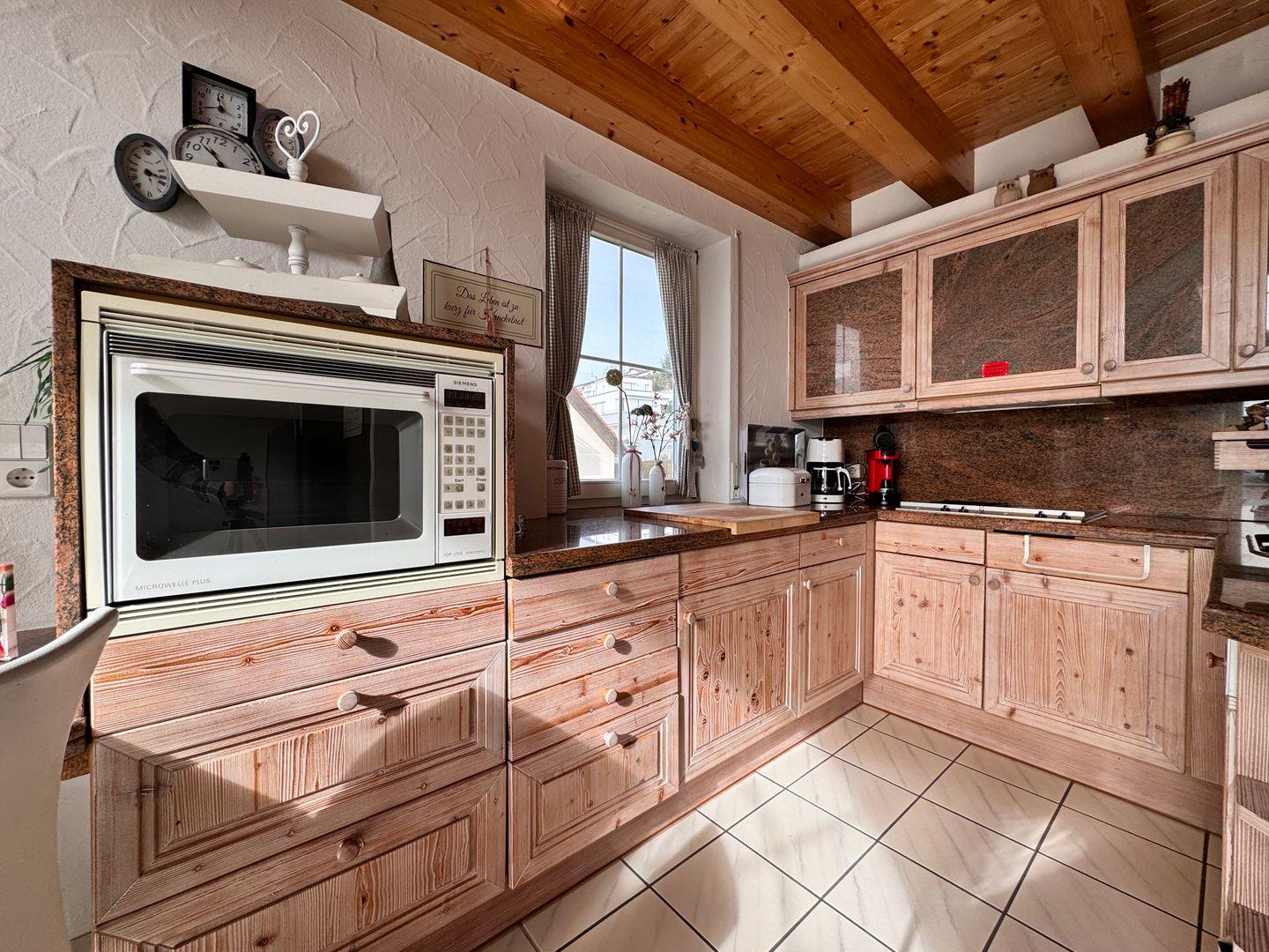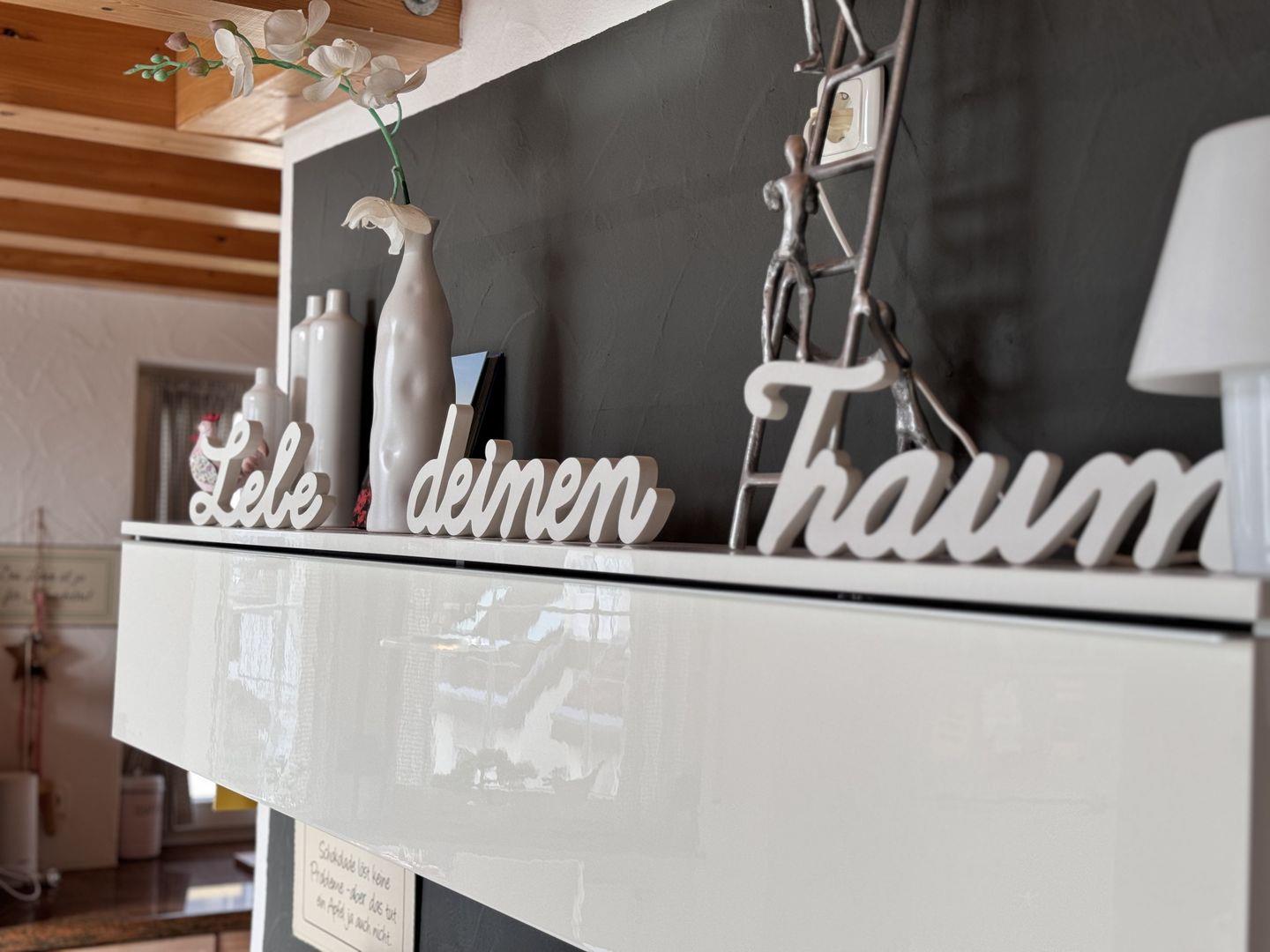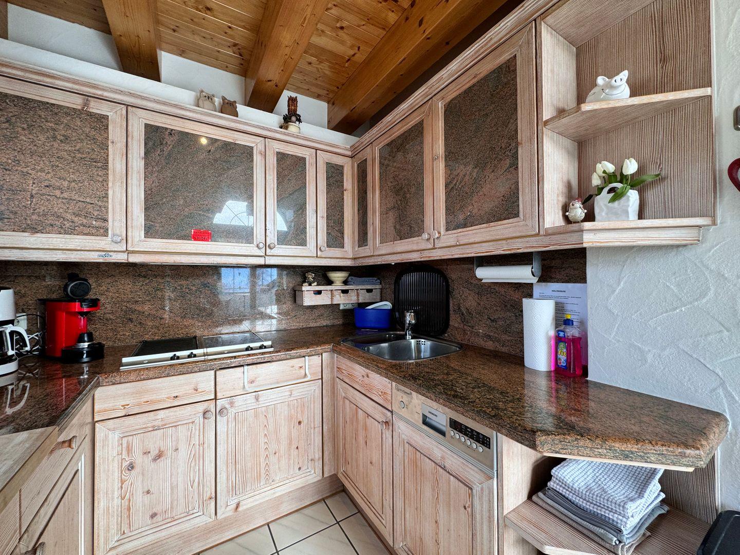 Der großzügige Wohnbereich mit offener Küche lädt zu entspannten Stunden ein. Die gut ausgestattete Küche, integriert in den Wohn- und Essraum, ermöglicht gemeinsame Kocherlebnisse. Der Essbereich mit Seeblick bietet einen besonderen Charme für Frühstück, Mittag- oder Abendessen. Eine Terrasse erweitert den Wohnraum nach Außen.
