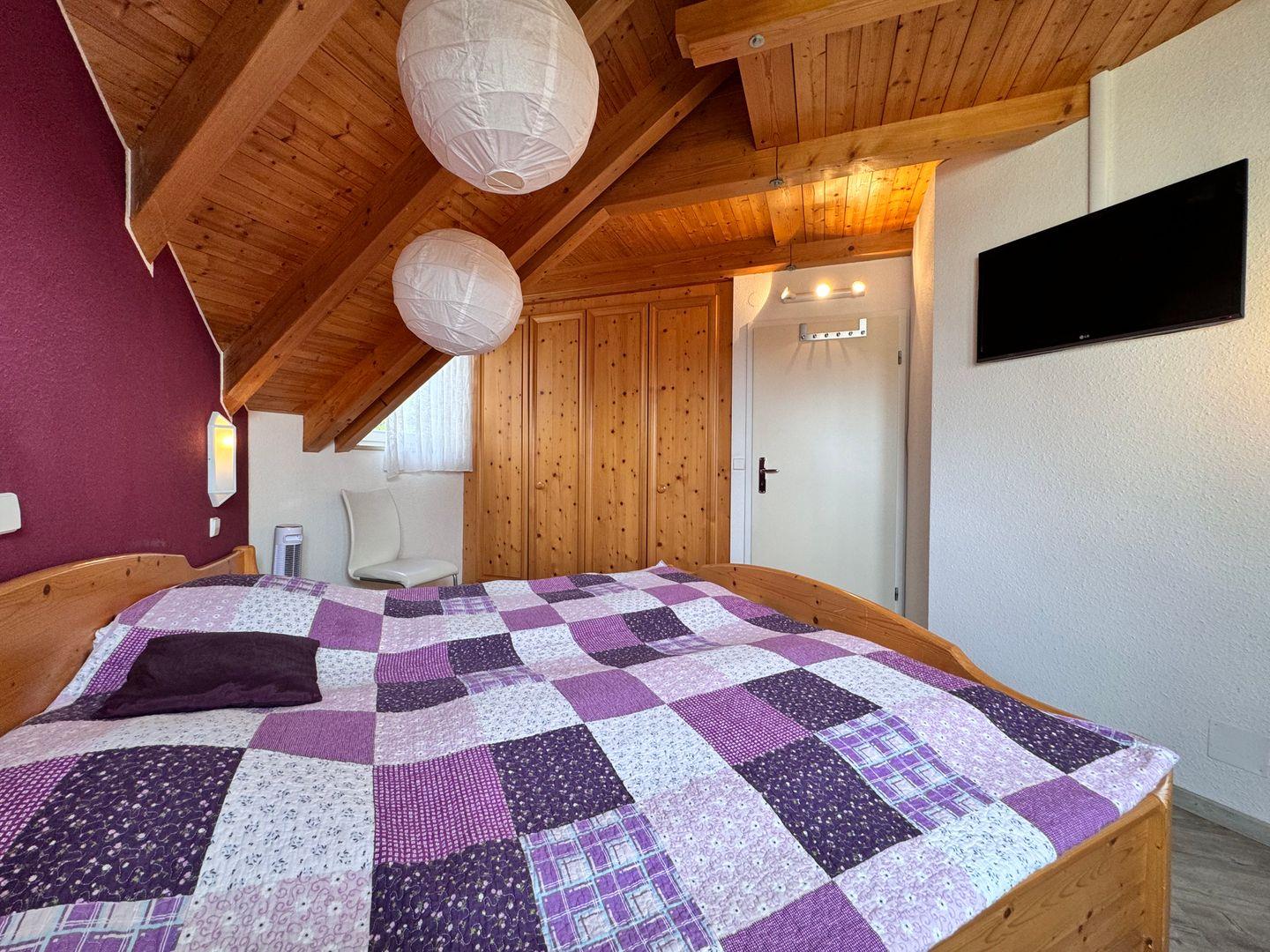 Die Wohnung verfügt über zwei Schlafzimmer, wobei das abgeschlossene Schlafzimmer im unteren Bereich den Eltern vorbehalten ist. Auf der Galerie befindet sich ein weiteres Schlafzimmer mit einem Kojenbett und einer Schlafcouch. Jedes der beiden Schlafzimmer verfügt über ein eigenes Badezimmer mit Duschbad und Tageslicht. Für zusätzliche Unterhaltung stehen Flachbild-TVs, Blu-Ray, eine Home-Cinema-Hifi-Anlage und WLAN zur Verfügung.