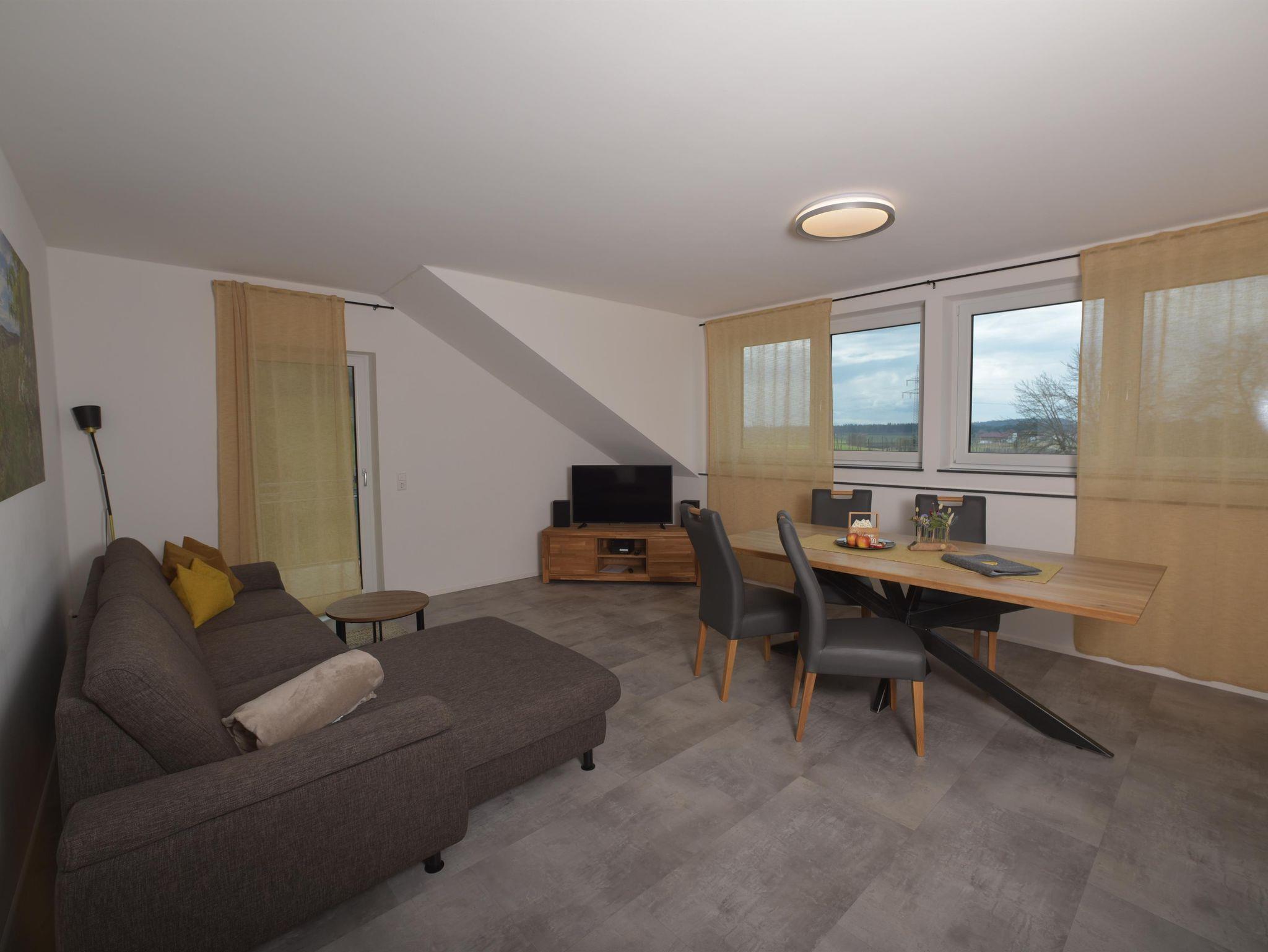 Im 2. OG auf ca. 80m² finden Sie zwei getrennte Schlafzimmer mit einem Doppelbett bzw. einem ausziehbaren Einzelbett (auf 170x200 cm), Zustellbett möglich. Die komplett ausgestattete Wohnküche mit großem Essbereich, bequemer Stoffcouch, TV und Kompaktanlage lädt zum Wohlfühlen ein. Das großzügige Badezimmer ist mit einer begehbaren Dusche, einem Waschbecken und Toilette ausgestattet. Ein Balkon mit toller Aussicht lädt zum Verweilen ein.