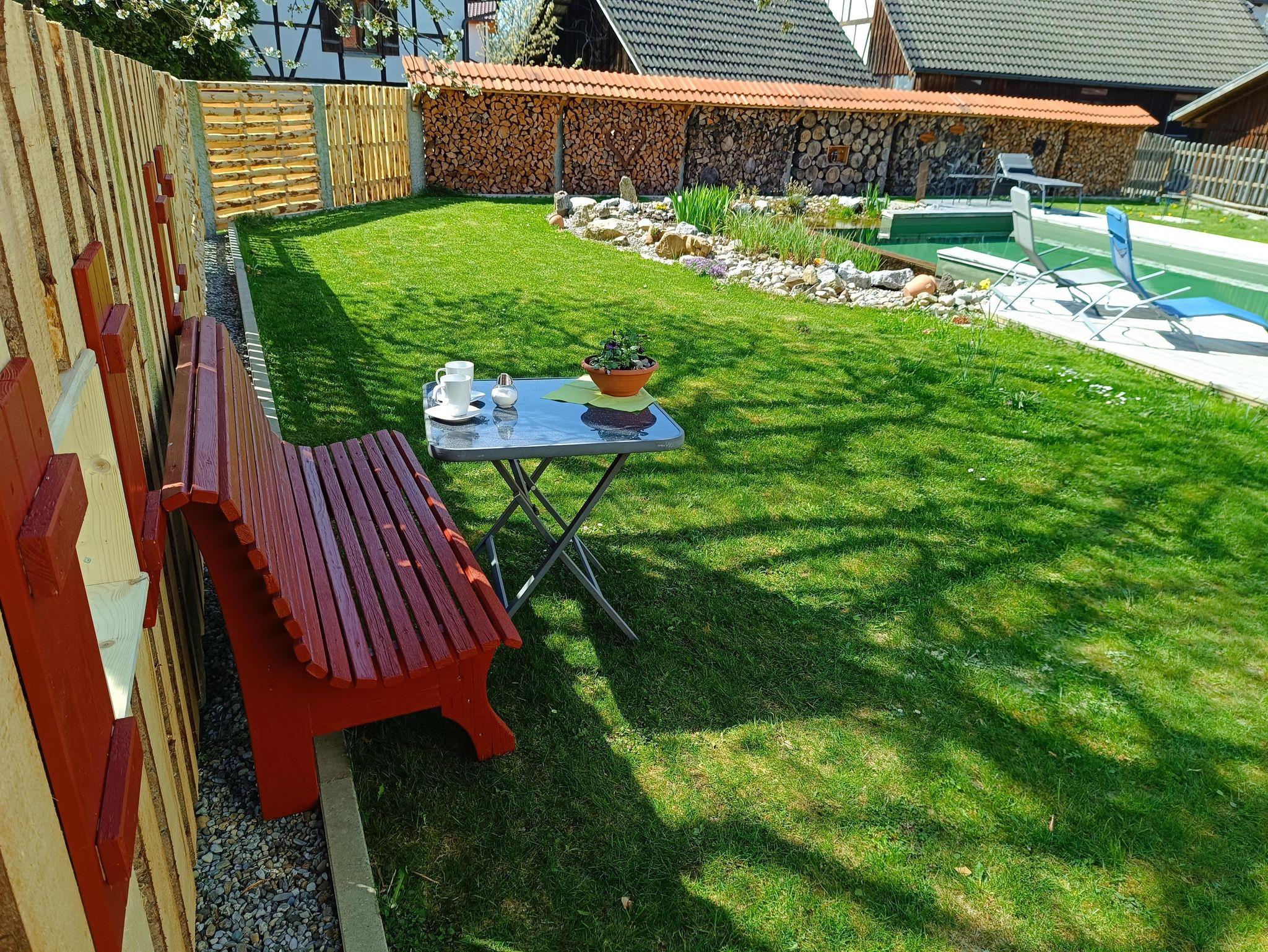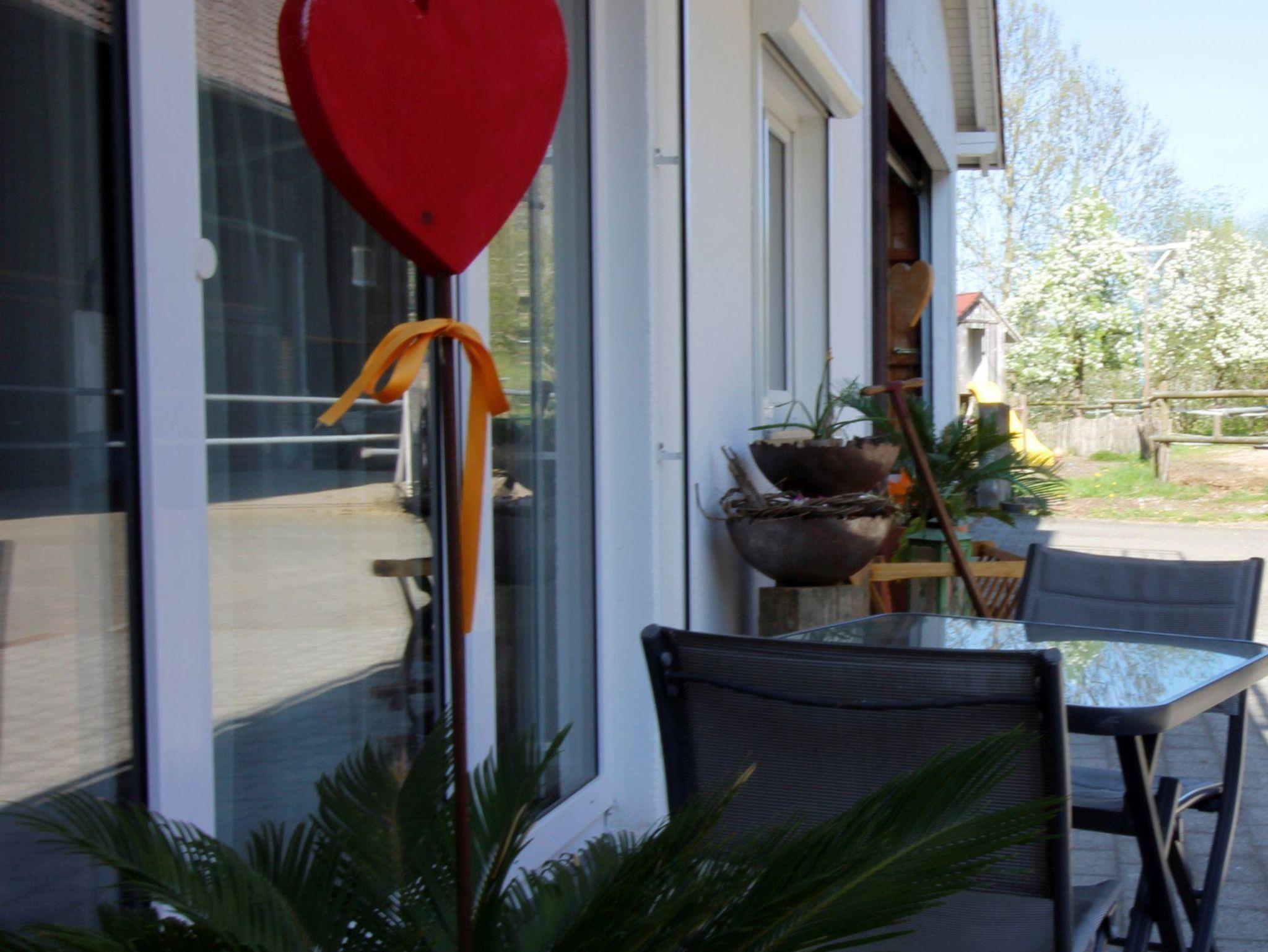 Urlaubsfreude beginnt in unserer sonnigen Ferienwohnung Theresa im ersten Obergeschoss mit zwei Schlafzimmern und Balkon. Diese Ferienwohnung wurde nach unserer großen Tochter benannt und bietet einen schönen Blick zum Schwimmteich und dem Hasengehege.