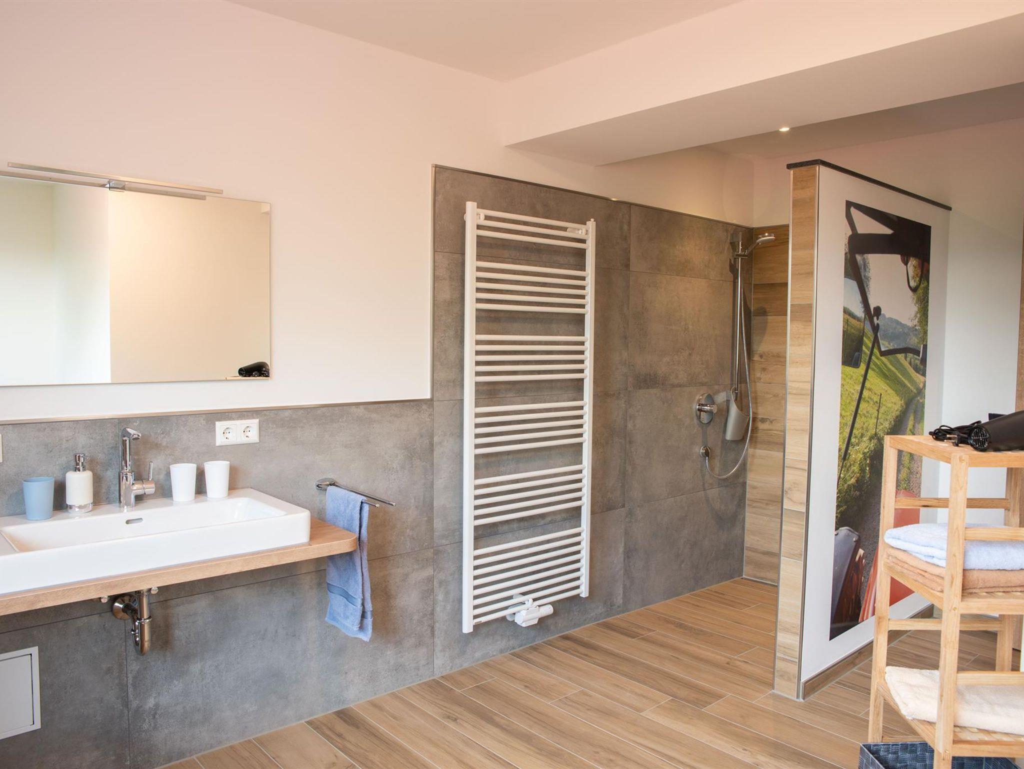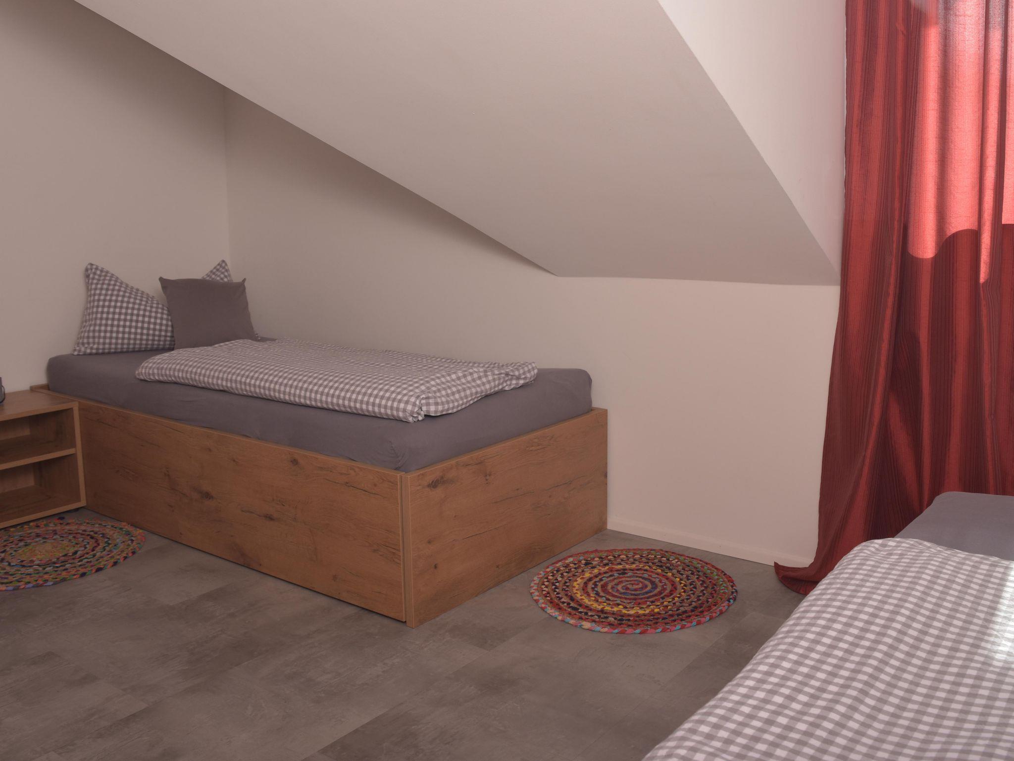 Im 2.OG auf ca. 95 m² finden Sie zwei getrennte Schlafzimmer mit einem Doppelbett bzw. einem ausziehbaren Einzelbett (auf 170x200 cm), Zustellbett möglich. Die komplett ausgestattete Wohnküche mit großem Essbereich, bequemer Stoffcouch, TV und Kompaktanlage lädt zum Wohlfühlen ein. Das großzügige Badezimmer ist mit einer begehbaren Dusche, einem Waschbecken und Toilette ausgestattet. Die Wohnung hat zusätzlich eine separate Toilette.