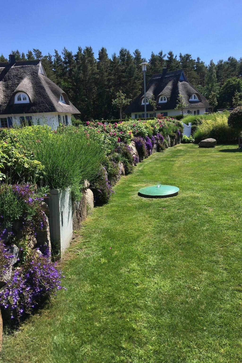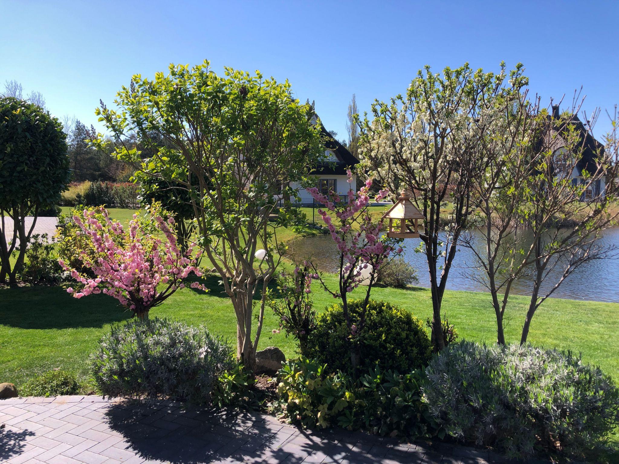 The outdoor whirlpool (optional) with 36-degree water in the garden provides further relaxation. ( Use at your own risk and in compliance with the care instructions, children not without supervision ) In the newly built 5-star resort, the 700 square metre waterfront property is surrounded by exclusive thatched-roof houses directly on a 2000 square metre pond, enclosed on the street side with a fieldstone wall and offers peace and relaxation. The approx. 50 square metre terraces face the sun, a beach chair and an exclusive, swivelling garden lounger as well as garden furniture are available. Since the house is located on a water property (large pond), it is only conditionally suitable for children. The property is fenced on three sides. 2 bicycles are at your disposal free of charge (at your own risk), but their use cannot be claimed in the event of a defect. The same applies to the outdoor whirlpool, the care instructions must be strictly adhered to.