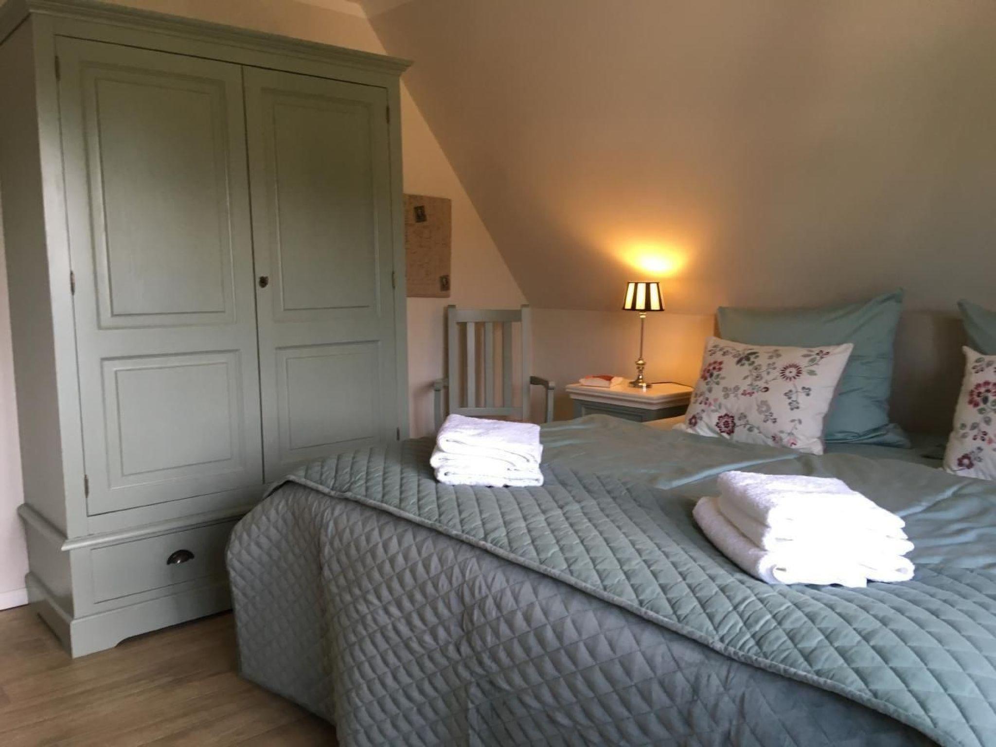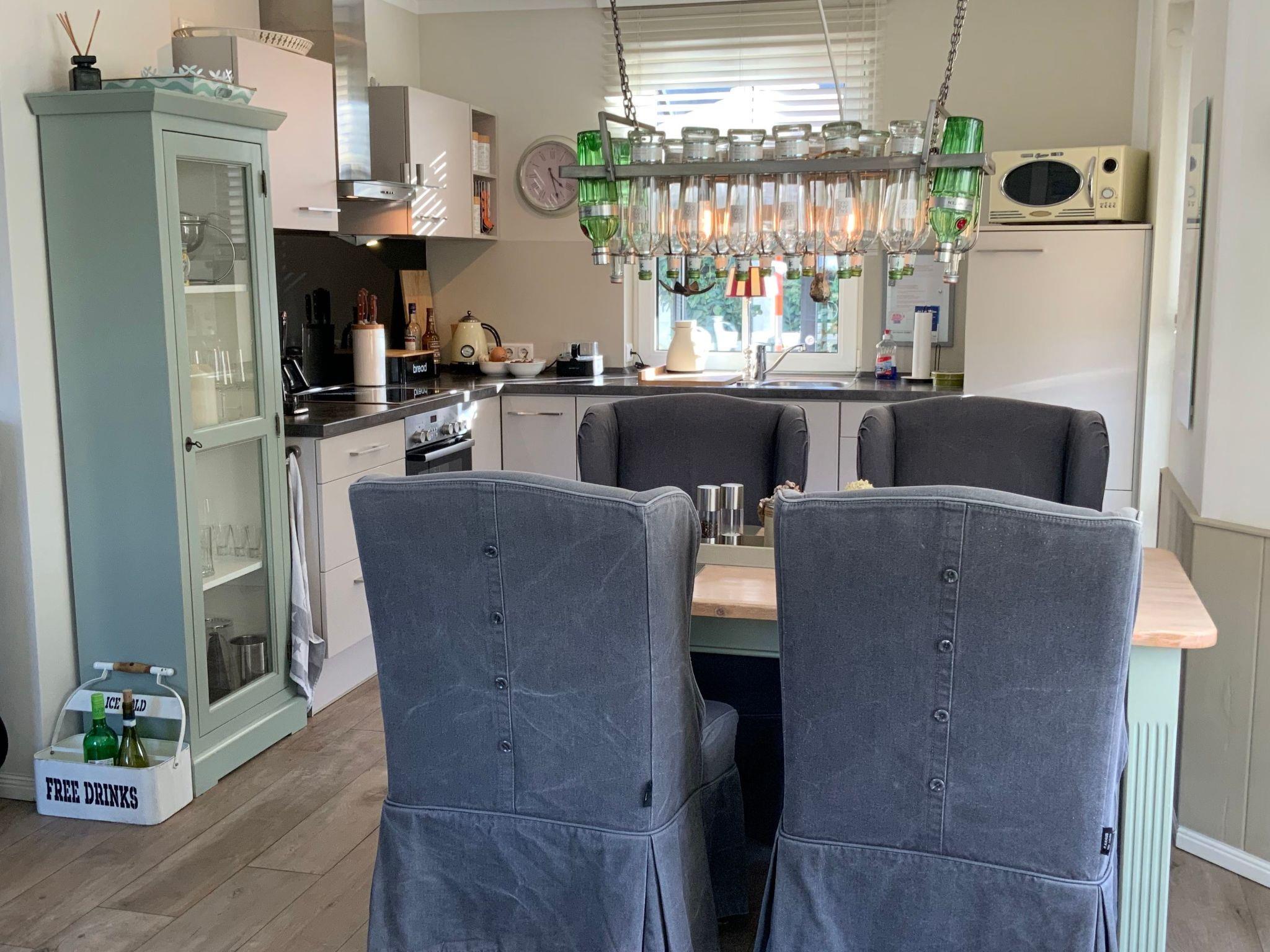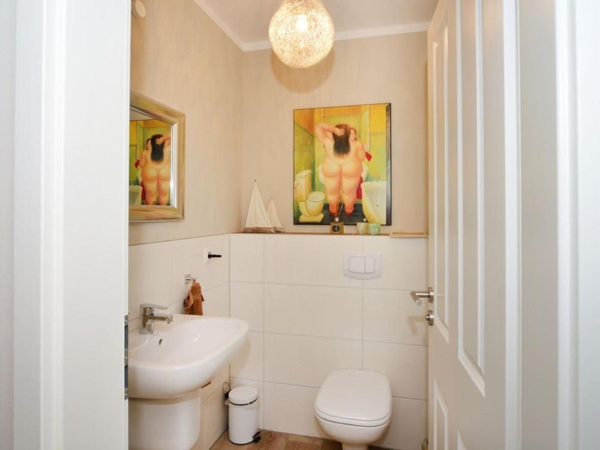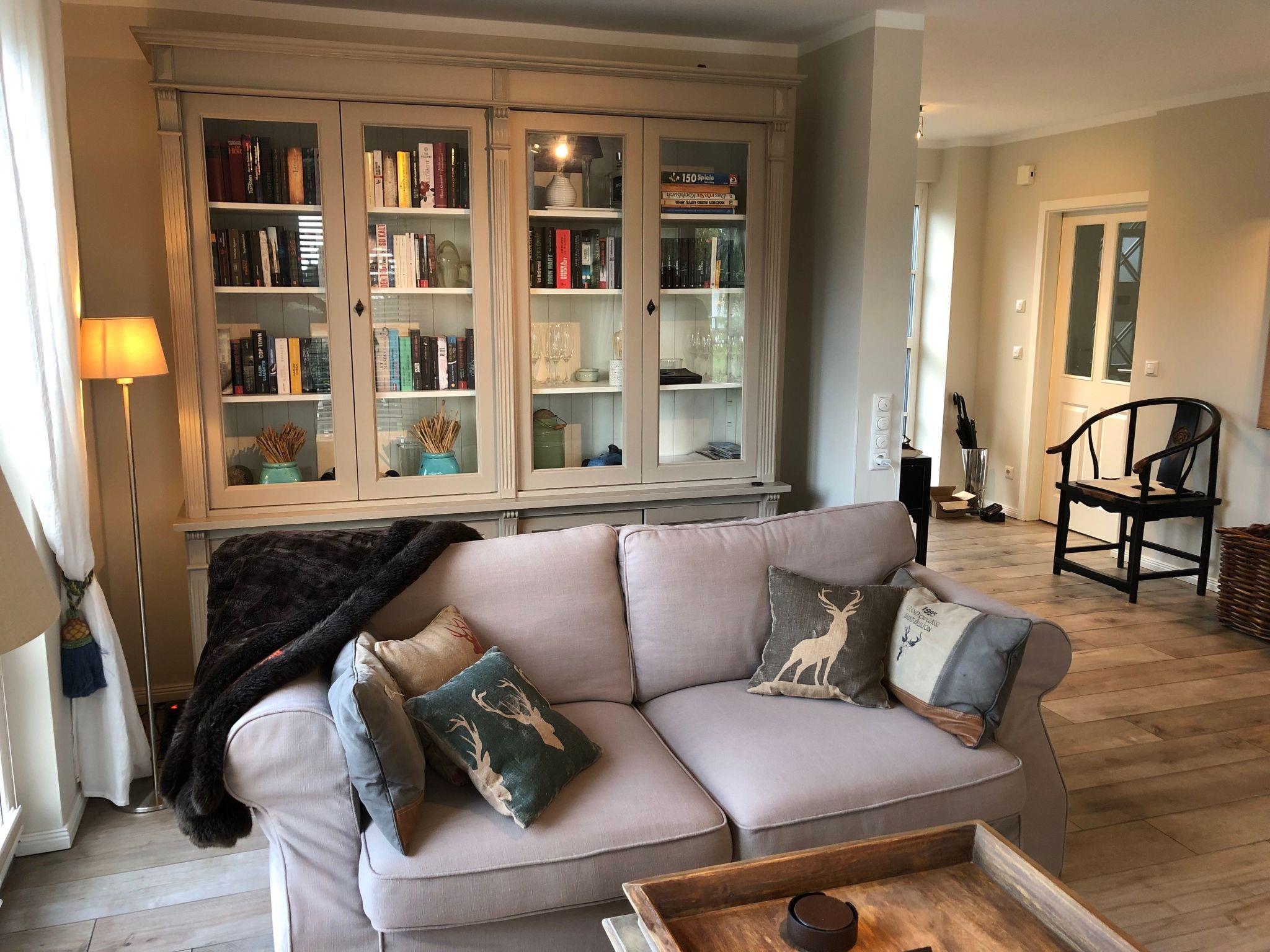 The high-quality furnishings in country house style and the wonderful garden by the large pond will get your holiday off to an immediate start. On the ground floor, you will find a spacious living/dining area with a fully equipped fitted kitchen, dining table with a view of the water, seating area with flat-screen TV, music system with iPad and free Wi-Fi internet access via fibre optic network. The house has been awarded 5 *****, the highest possible award from the DTV. This means first-class facilities with exclusive comfort as well as a generous offer in excellent quality and a well-kept, exceptional overall impression. Underfloor heating throughout the house, guest WC, cloakroom and utility room with washing machine are all included. A wood-burning stove provides a cosy and atmospheric ambience even on cooler days. We are happy to provide you with the wood for the initial firing, please add any additional requirements. For a restful night's sleep, there are two bedrooms with comfortable box-spring beds on the upper floor. You can enjoy the Finnish sauna in the large bathroom with a large walk-in shower and corner bath. You are welcome to bring your dog with you, preferably well behaved. However, it is not permitted to bring more than one dog, and cats are also not allowed. .