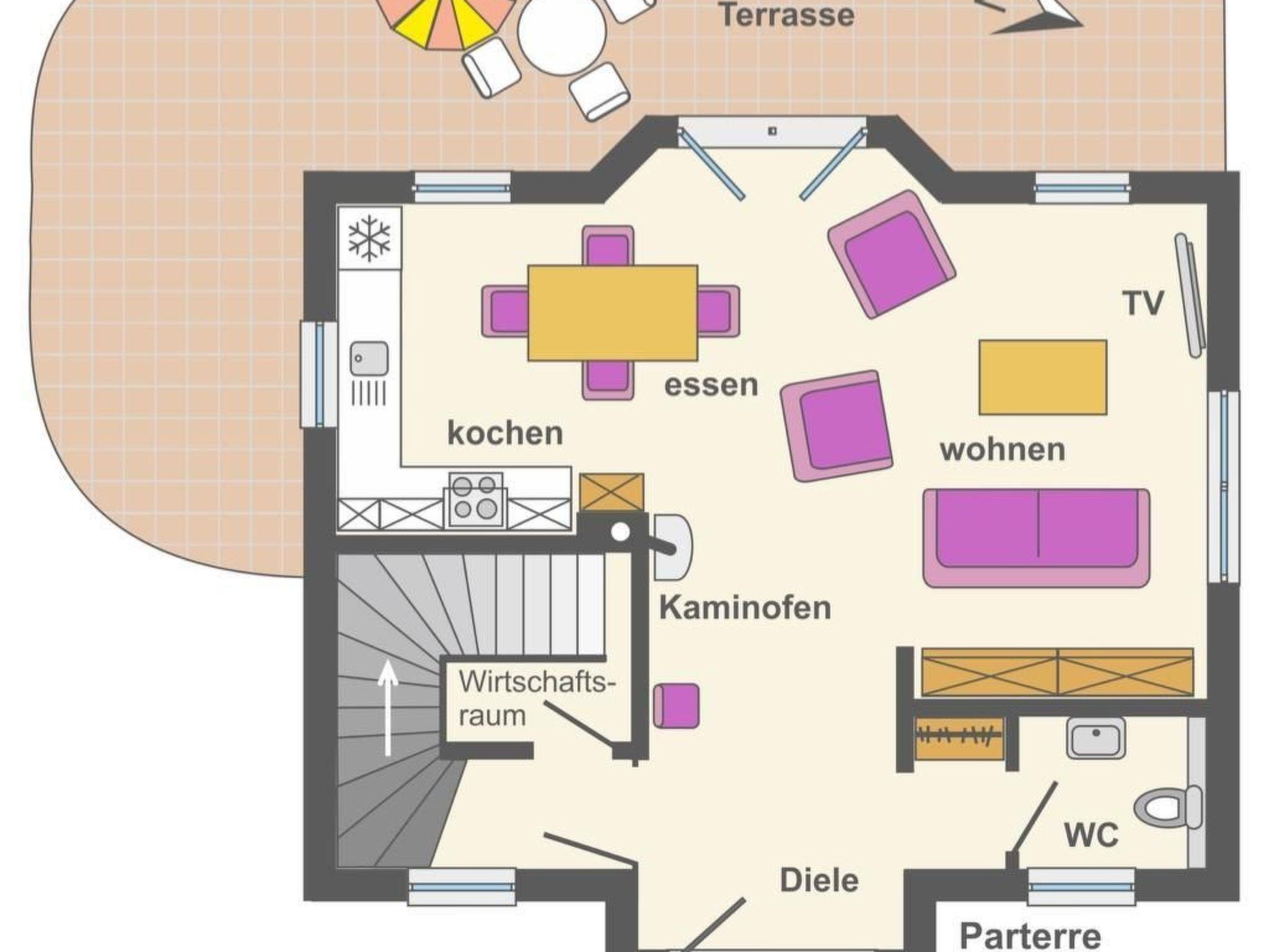 Terms and conditions: The tenant must treat the rented property with care. He undertakes to report and replace any damage that may have occurred. No liability is accepted for any items brought into the house by the tenant. The use of garden furniture, bicycles, beach chair, whirlpool, electric barbecue etc. is at the tenant's own risk. The landlord has no influence on disturbances occurring outside the property, such as construction noise, loud music, etc., and is expressly not liable for these. The times for this are regulated in the local bylaws. Since January 2022, the municipality has levied a visitor's tax on site.