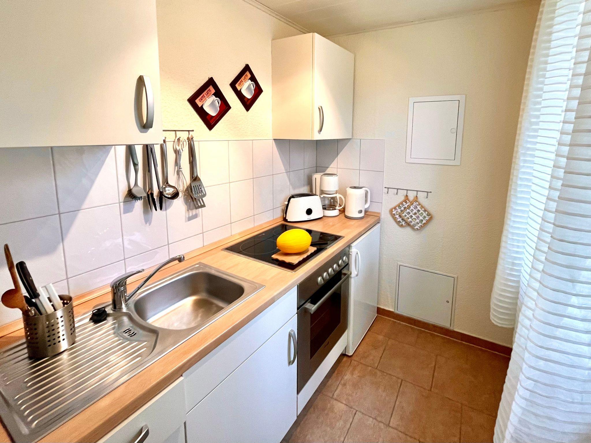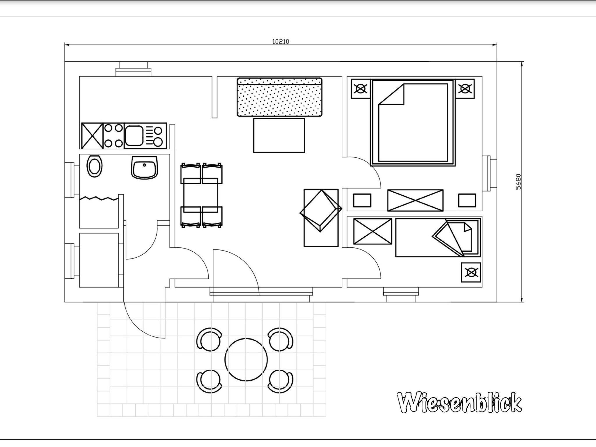 In the holiday home Wiesenblick 2 you will find a cosy living and dining area with sofa bed, highboard, flat screen TV, radio/CD and a dining table for 4 people on a living space of approx. 50m². The kitchen is well equipped with ceramic hob, oven and fridge with freezer compartment. The larger bedroom with double bed (160x200) and wardrobe invites you to a restful night's sleep. A smaller bedroom with a comfortable single bed (90x200) and wardrobe, together with the sofa bed in the living room, provides additional sleeping accommodation. The daylight bathroom has a shower, WC and washbasin for your well-being. The holiday home can always be kept at a pleasant temperature with the energy-saving infrared heaters. Free Internet (WLAN) is also available.