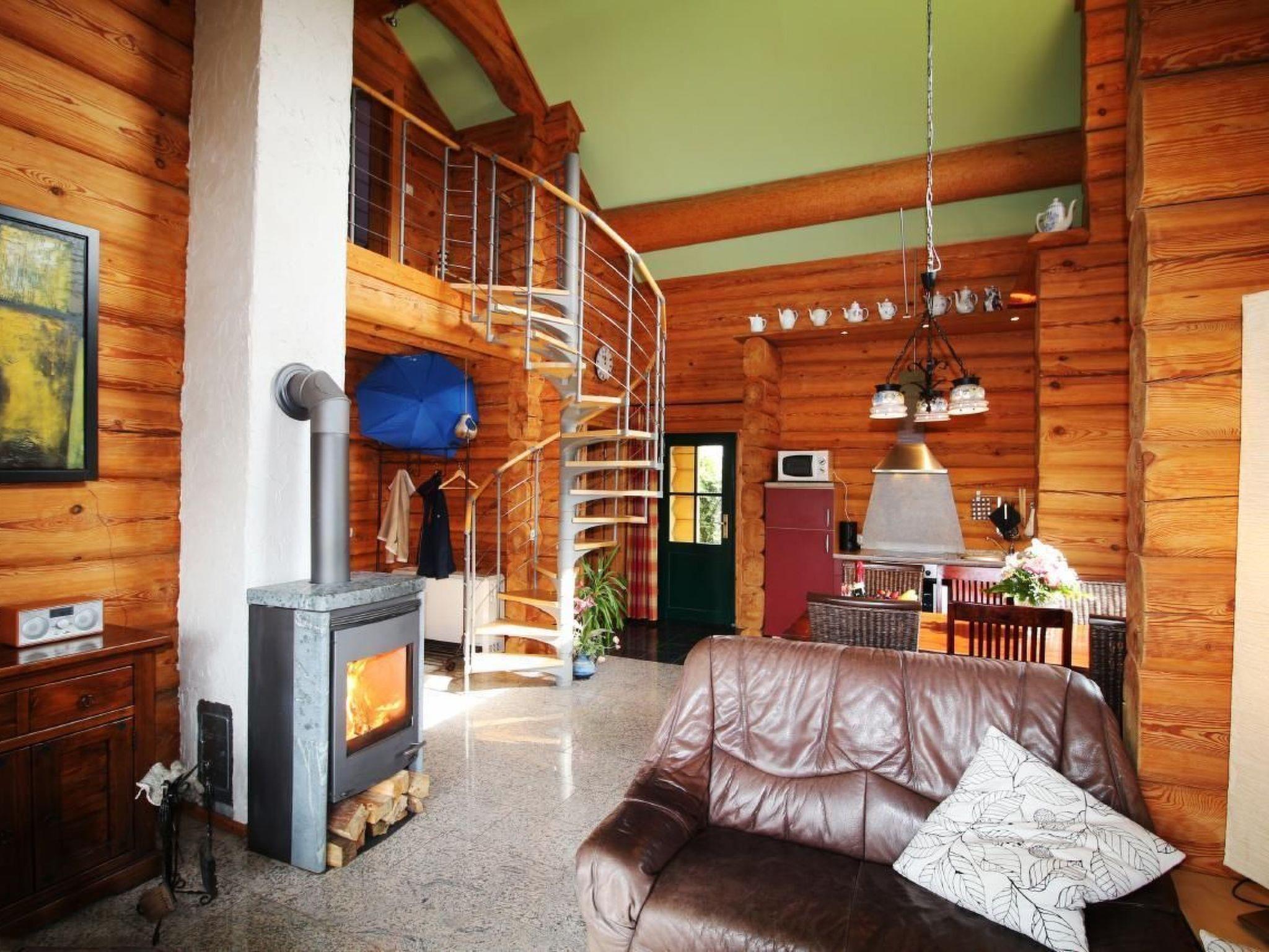 Our cosy log cabin "Haus Kranichblick" is located in a holiday home settlement surrounded by greenery and Pomeranian forest landscape on the edge of the village of Bodstedt and the nature reserve "Vorpommersche Boddenlandschaft". It therefore guarantees a relaxing and peaceful holiday. A mild coastal climate, kilometres of fine sandy beaches and rustic forests create an idyllic location. Time out in the countryside - an ideal holiday resort at any time of year away from the hustle and bustle of the seaside resorts. spend your holiday in our lovingly designed "Haus Kranichblick". The property covers 520 m² and the living space in the house is approx. 100 m². t. On the ground floor there is an open, fully equipped kitchen (if something is missing, we will take care of it), the living room with a couch and a nice, cosy fireplace, a bathroom with a large shower and hairdryer as well as a bedroom with a double bed for 2 people and another bedroom with 2 single sinks and a washbasin. The ground floor is tiled and has underfloor heating. The sunny terrace is a wonderful place to relax and enjoy great barbecue evenings. There are garden chairs with adjustable backrests and cushions for sunbathing and a column air grill. The garden invites you to play, relax, linger and unwind, and on the upper floor there is a bedroom for 2 people and access to our large, beautiful balcony with views of the Bodden and an animal observation post. Of course, a high chair and travel cot are available for the little ones.