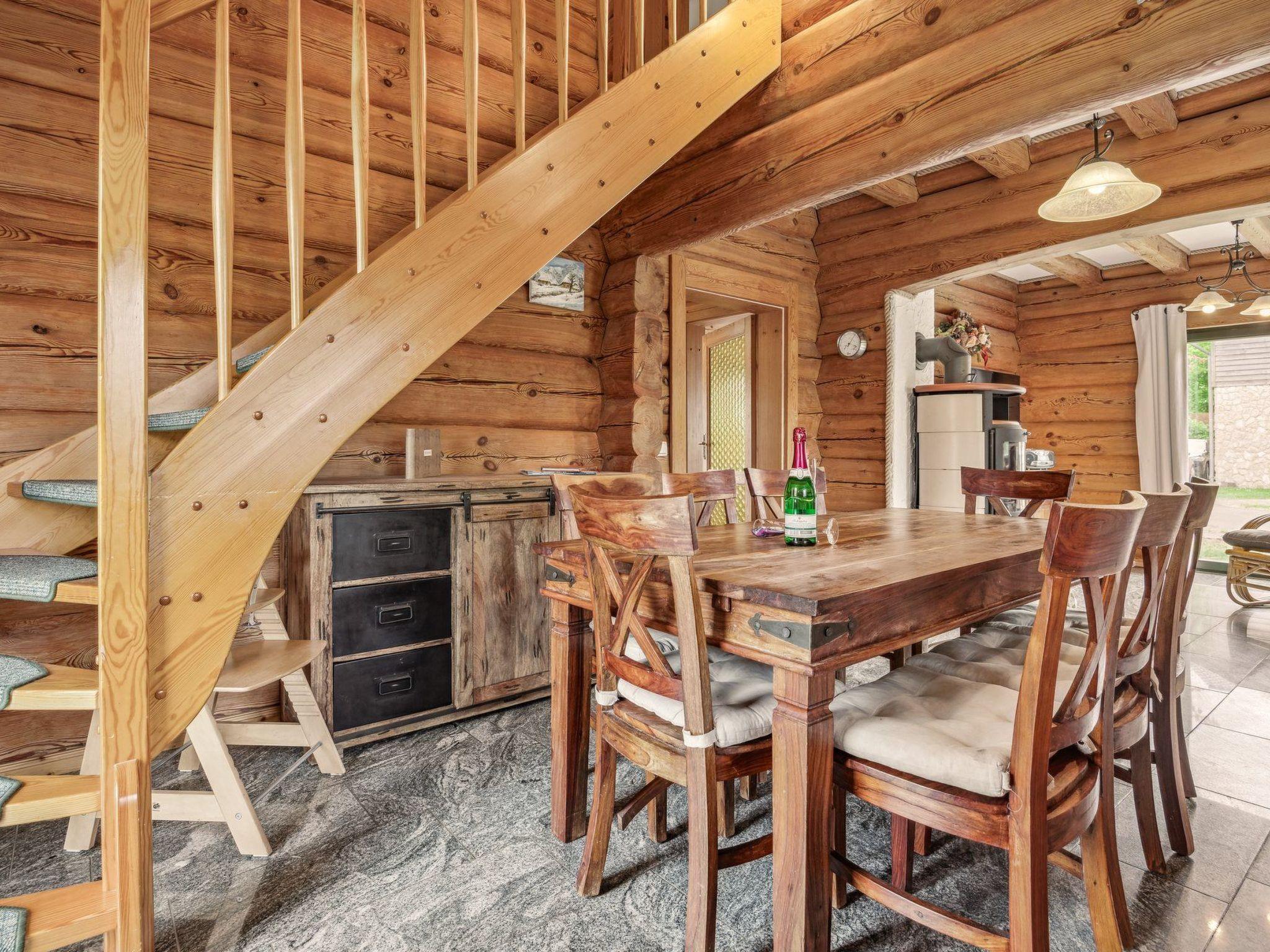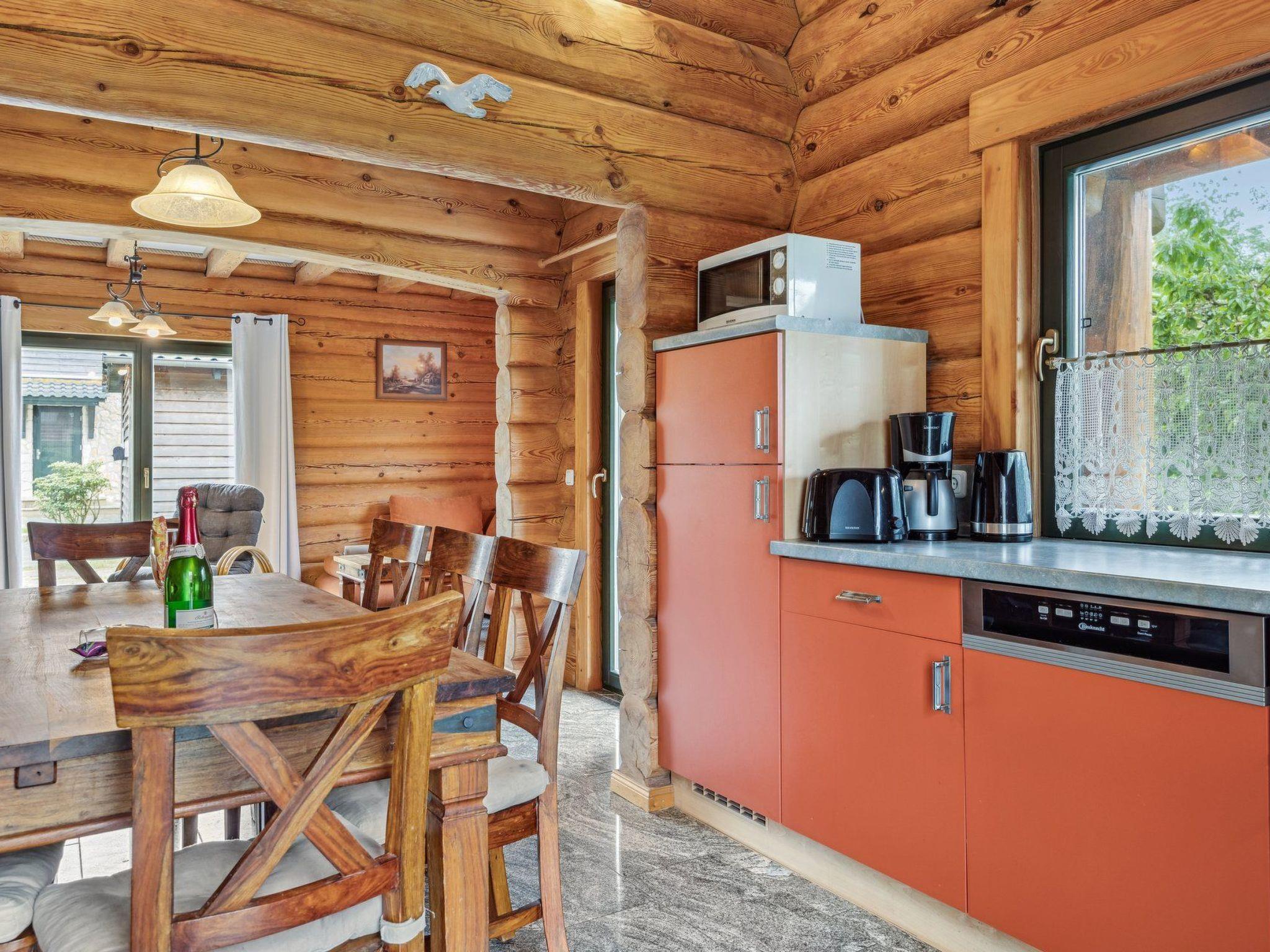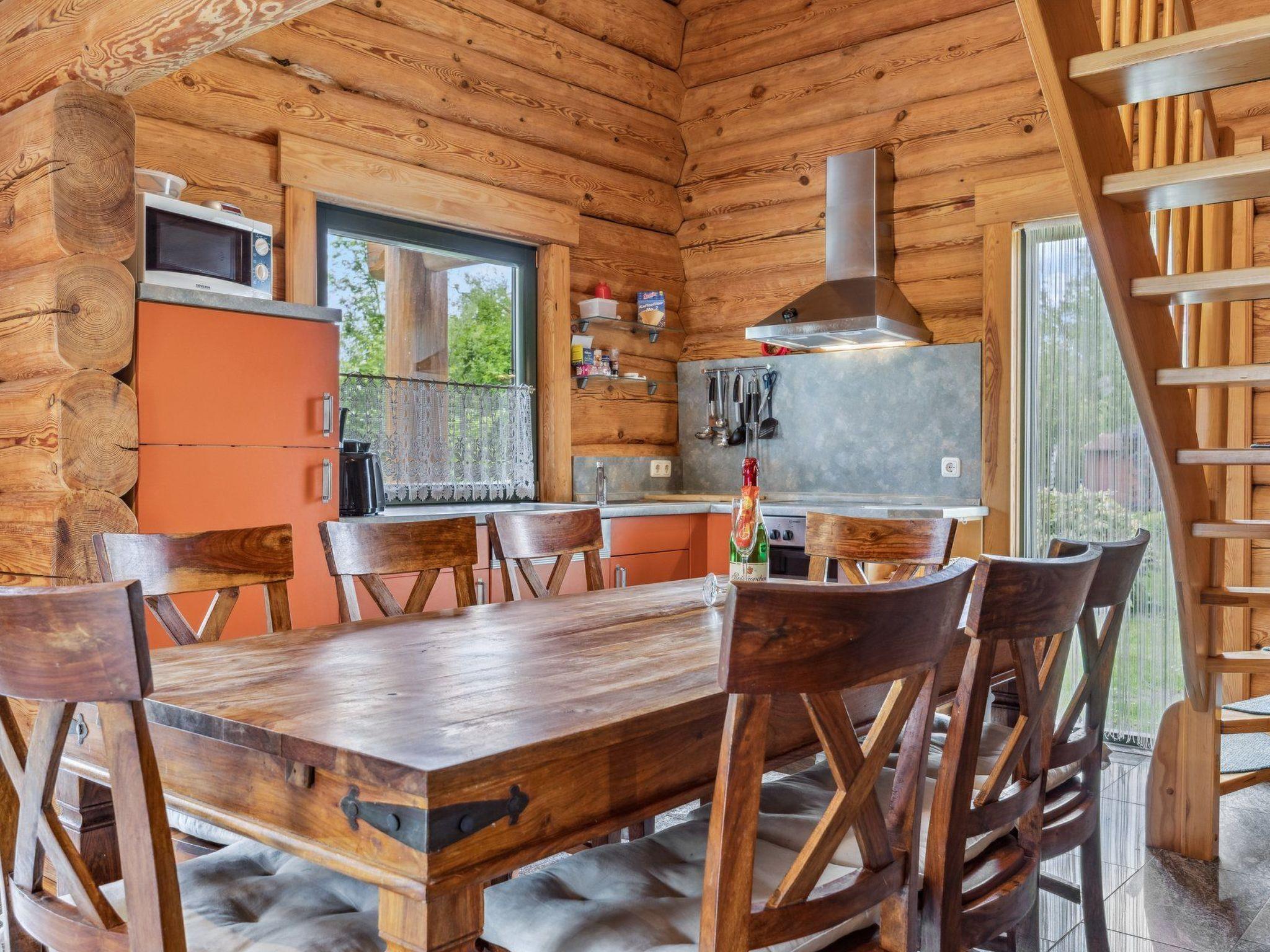 Our cosy log cabin "Dat Stammhus" is located in a green holiday home settlement surrounded by Pomeranian forest landscape on the edge of the village of Bodstedt and the nature reserve "Vorpommersche Boddenlandschaft". It therefore guarantees a relaxing and peaceful holiday. A mild coastal climate, kilometres of fine sandy beaches and rustic forests create an idyllic location. Time out in the countryside - an ideal holiday resort at any time of the year away from the hustle and bustle of the seaside resorts - spend your holiday in our lovingly designed "Dat Stammhus". The property covers 560 m² and the living space in the house is approx. 140 m². The log cabin was completed in June 2006. On the ground floor there is an open, fully equipped kitchen (if something is missing, we will take care of it), the living room with a couch and a nice, cosy fireplace, two bathrooms with a large shower and hairdryer and a bedroom for 2 people. The ground floor is tiled and has underfloor heating. The sunny terrace is a wonderful place to relax and enjoy great barbecue evenings. There are garden chairs with adjustable backrests and cushions for sunbathing and a column air grill. The garden invites you to play, relax, linger and unwind, and there are two generously furnished bedrooms for a further 6 people on the upper floor. Of course, a high chair and travel cot are available for the little ones. The animals in the neighbourhood can be observed from the balcony.