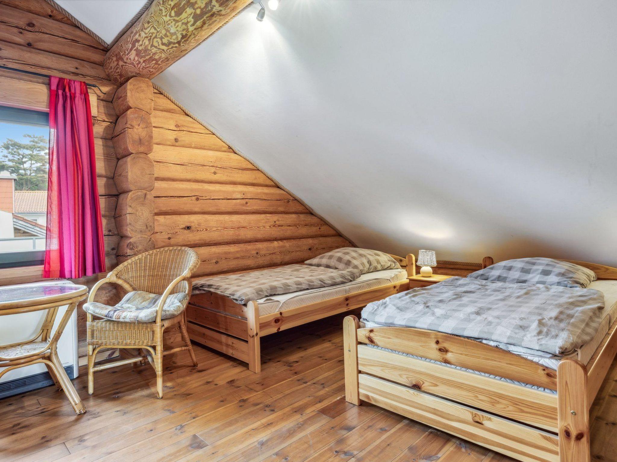 We ask for your understanding that the house is a non-smoking house.pets are welcome.friendly hosts are a matter of course for us: the contact person on site, the Wolli (operator of the Café & Bar Wolli) is at your disposal for all questions & problems.the settlement: The holiday home settlement consists of 28 holiday homes and the Café & Bar Wolli. Due to the private road, only a few foreign cars stray into the estate, so it is possible to let your children roam the area largely unsupervised. New friendships are often formed while romping through the woods and meadows. The plots are all so large that you can retreat and unwind. The diverse architectural styles of the houses are interesting to look at and create a well-balanced neighbourhood. The "Östlicher-Backstein-Rundweg" cycle path, located directly in front of the estate, takes you around the entire Bodden, approximately 80 kilometres. This can easily be done in one day. The beautiful Baltic Sea beach in Zingst is approx. 30 minutes by bike. The cycle path is also suitable for inline skates, roller skates and skateboards. Jogging and Nordic walking are also recommended.Bodstedt: The small harbour with its typical wooden fishing boats, the Zeesenboote, is particularly beautiful to look at. The oldest Zeesen boat regatta takes place every year on the first weekend in September, and there is a landing stage for boat trips around the Bodden and for boat transfers to the Darß. The local beach is only three minutes away by bike. The shallow water zones are ideal for beginners and water rats. Adults can relax on the large lawn next to it. The village has three small restaurants serving fresh fish and fried potatoes. The fisherman supplies holidaymakers and locals with fresh and smoked fish every day. Whether by bike, on foot or on horseback - experience the landscape and the charm of the village up close and personal.SurroundingsYou will spend your holiday in a quiet location. The Baltic Sea spa resort of Zingst (10 km) and the Baltic Sea resort of Prerow (18 km), both characterised by maritime traditions, are not far away. Prerow Bay is one of the most beautiful beaches in Europe. Good shopping facilities, restaurants and evening events can be found in Barth (7 km). The Bodden and the Baltic Sea are an attractive area for water sports enthusiasts and there are countless activities on offer. Hiking is in: it's worth taking a look off the beaten track, especially in autumn when thousands of cranes stop to rest on the Zingst.highlights in the surrounding area- Störtebeker Festival on Rügen (75 km)- Climbing forest in Born (23 km)- Karls Erlebnishof in Rövershagen (41 km)- Marlow bird park (38 km)