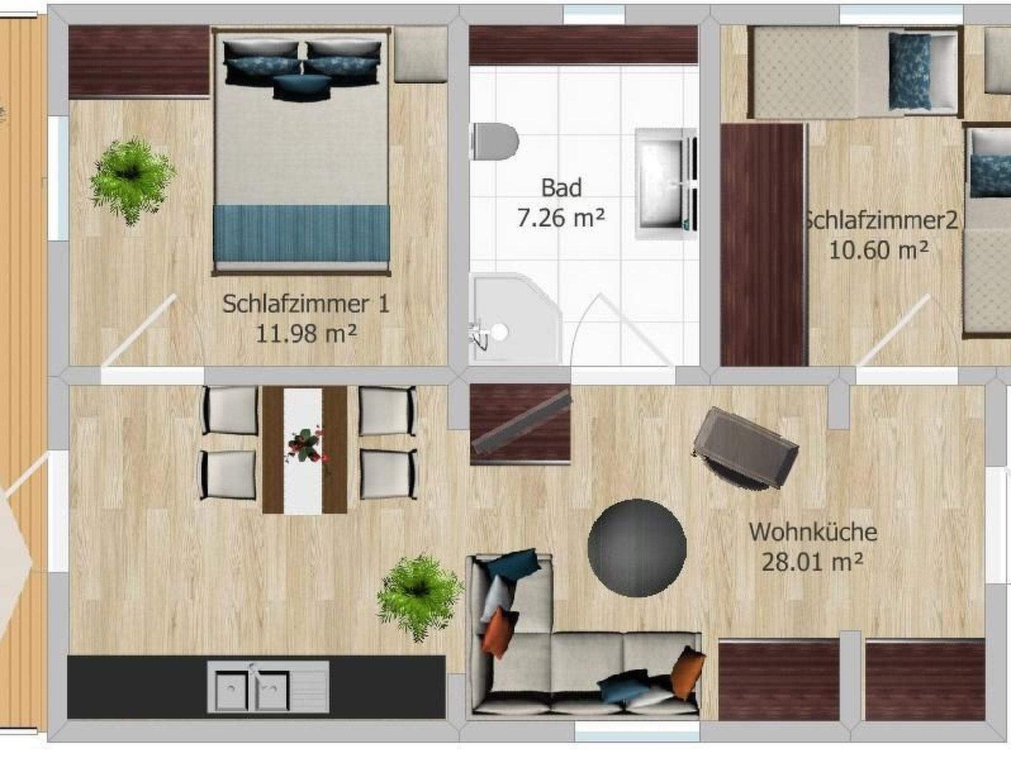 Our cosy ground floor apartment in Haus Star is located in a holiday home estate surrounded by greenery and Pomeranian woodland on the edge of the village of Bodstedt and the nature reserve "Vorpommersche Boddenlandschaft". It therefore guarantees a relaxing and peaceful holiday. A mild coastal climate, kilometres of fine sandy beaches and rustic forests create an idyllic location. Time out in the countryside - an ideal holiday destination at any time of the year away from the hustle and bustle of the seaside resorts.our holiday flat is located on the ground floor of Haus Star. Another holiday apartment is available on the upper floor. The house Star was completed in May 2018. The holiday flat offers approx. 70 m² of floor space and consists of the kitchen-living room, a bathroom with a large shower and two bedrooms for 2 people each, plus 1 additional person can sleep comfortably on the pull-out sofa in the kitchen-living room. The garden behind the house invites you to play, relax and barbecue.- Kitchen-living room, with large pull-out sofa (1 additional sleeping possibility)- 1 bedroom, 1.80m double bed- 1 bedroom, 2x single bed- 1 bathroom