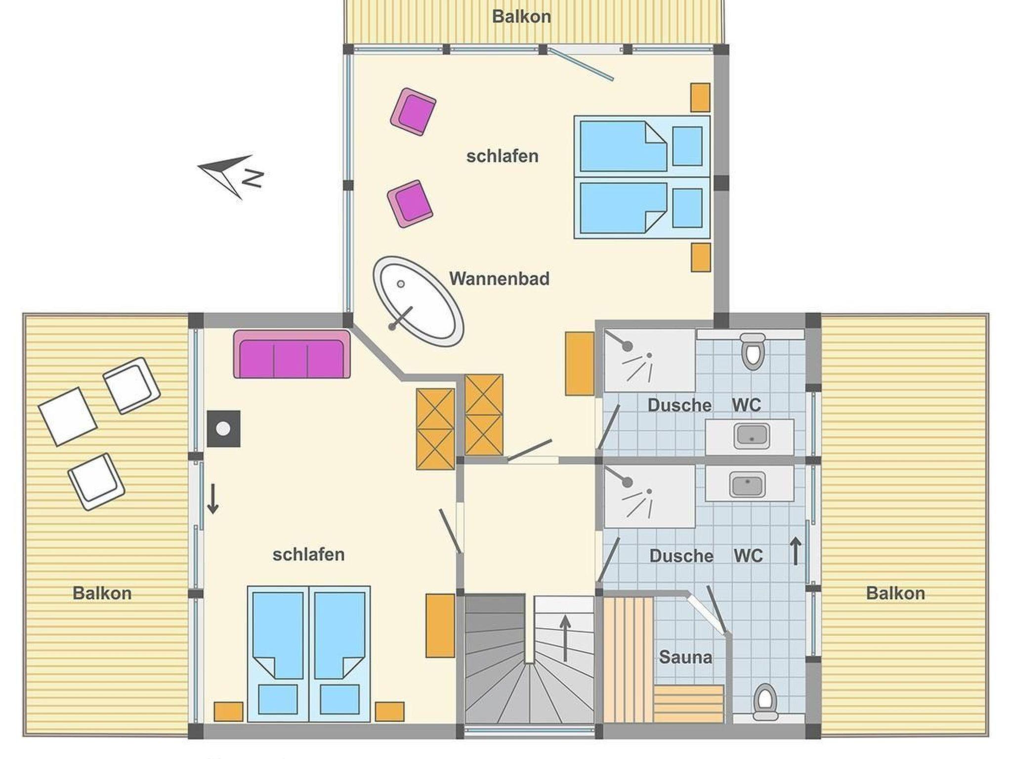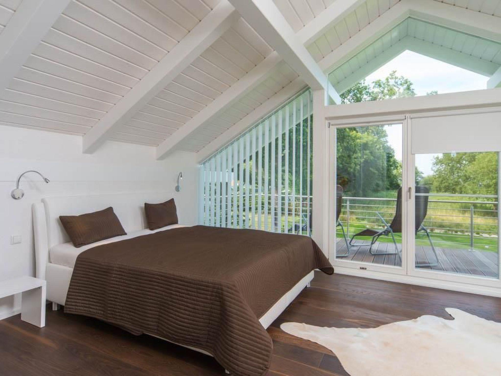 The upper floor has an area of 82 m² and is divided into two spacious bedrooms with a marvellous view of the Bodden, 2 bathrooms with spacious showers and a sauna.