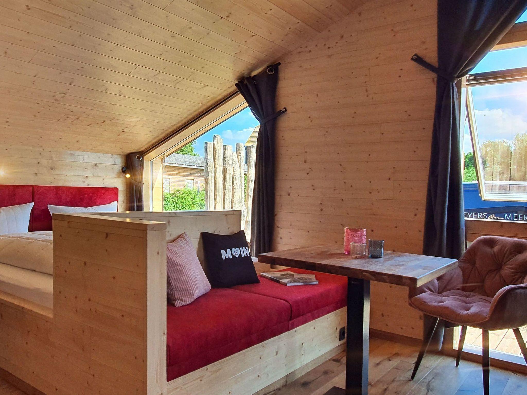Welcome to "Wolke 7", our romantic Tiny wooden holiday home, specially designed for couples to experience unforgettable moments in an intimate atmosphere. Furnished with an open-plan living situation, it offers the perfect backdrop for a dream holiday for two. It can also be occupied by a small child up to the age of two to accommodate young families.