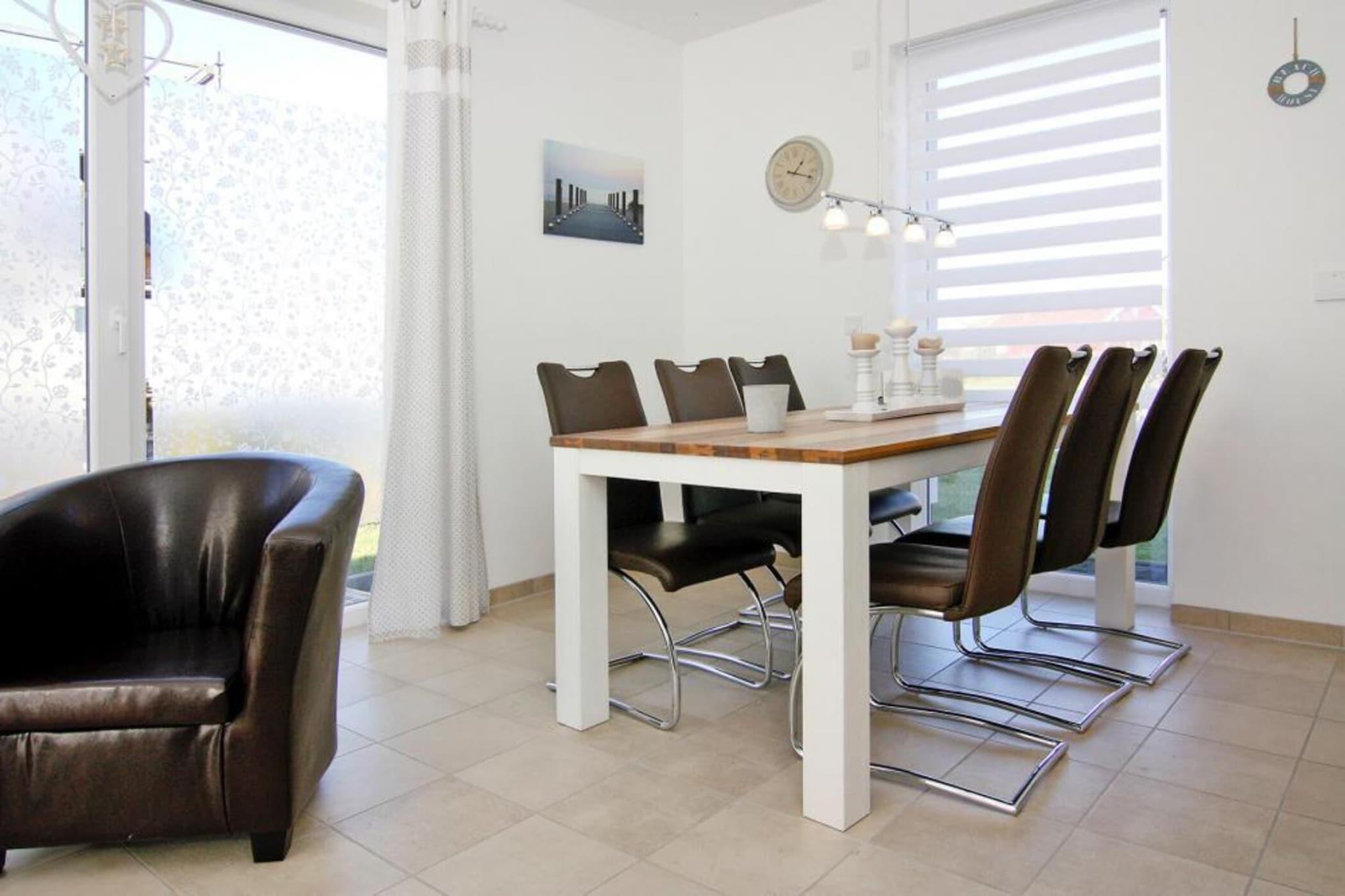 Den friske luft her på Salzhaff ved Østersøen er en fornøjelse for alle sanser. Fra balkonen på dit rummelige feriehus i en idyllisk bygd, med en god udsigt, kan du skue ud over enge og marker til Østersøen. Med tre soveværelser, to badeværelser og en hyggelig stue er huset, der er beklædt med kunstigt stråtag, et ideelt feriemål for store familier eller små turgrupper, der nyder at cykle. Efter morgenmaden på terrassen kan du tage en kort afstikker til den naturlige strand eller til en af nabobyerne. Den velholdte have indbyder også, hvis du vil tage det roligt ind imellem. På skønne sommeraftener tænder man gerne grillen og slutter dagen af i godt selskab. Skulle vejret ikke samarbejde, garanterer den moderne underholdningselektronik og et behageligt åbent køkken et meget behageligt ophold indendørs. Den lille by Boiensdorf am Salzhaff ligger i udkanten af et naturreservat mellem Wismar og Rerik. Det landlige miljø er særdeles velegnet til en ferie med børn, og det friske Østersøklima sikrer sund luft. De nærliggende byer kan hurtigt nås på cykel. Besøg for eksempel den hollandske vindmølle og det lille landsbymuseum i Stove (2,1 km). Aktiviteter i nærheden: Regionen omkring Salzhaff er skabt til lange cykelture. Kør for eksempel til Rerik (ca. 13 kilometer). Stedet har en særlig charme på grund af sin fantastiske beliggenhed mellem lagunen og Østersøen. Øen Poel er også ideel til udflugter. Takket være de flade badeområder er lagunen særdeles velegnet til familier med børn til sprudlende vandsjov. Der er ikke kun en legeplads på stranden ved jeres sommerhus, men også en lille snack om sommeren. Den gamle hansestad Wismar inviterer til en
