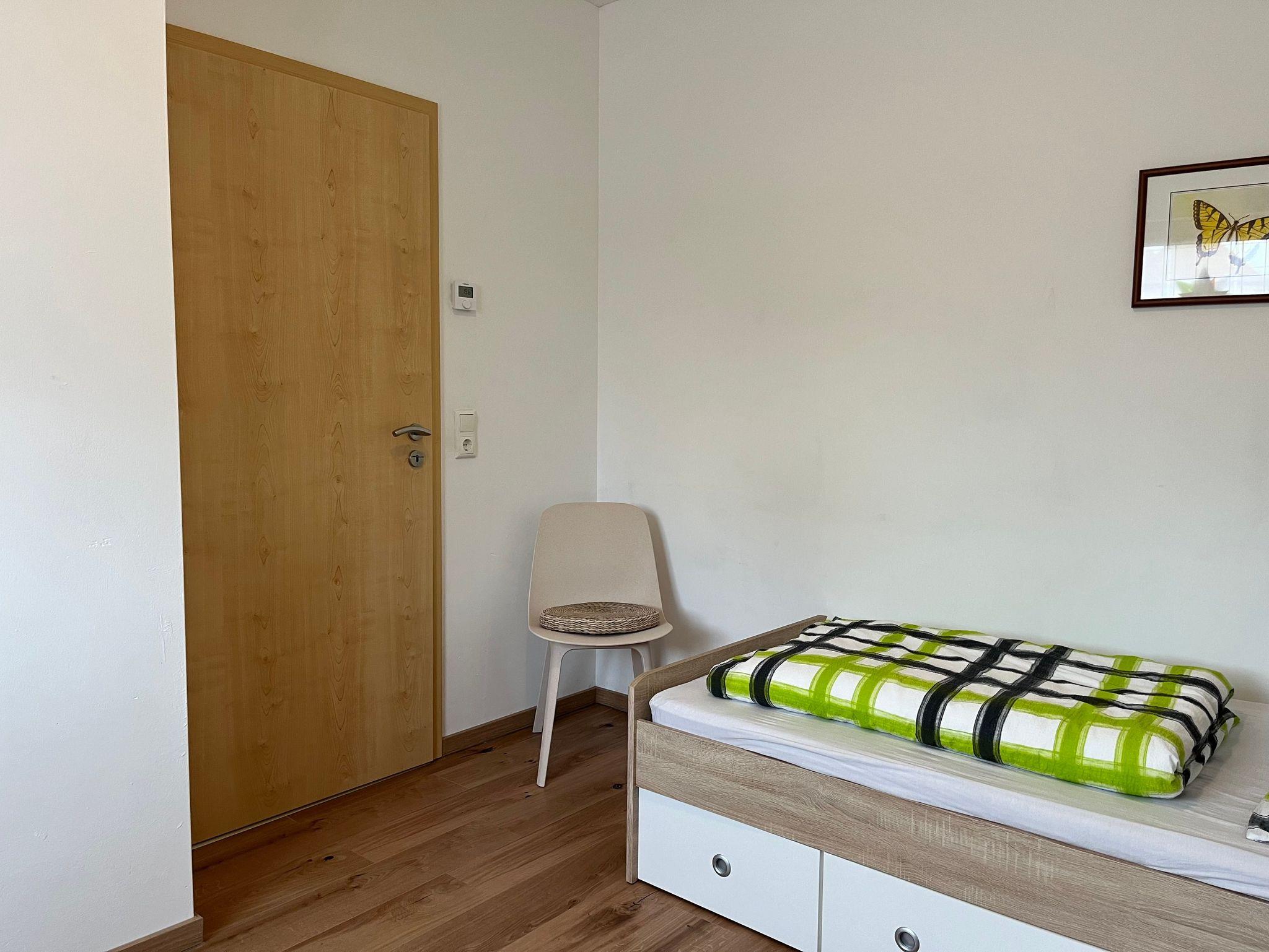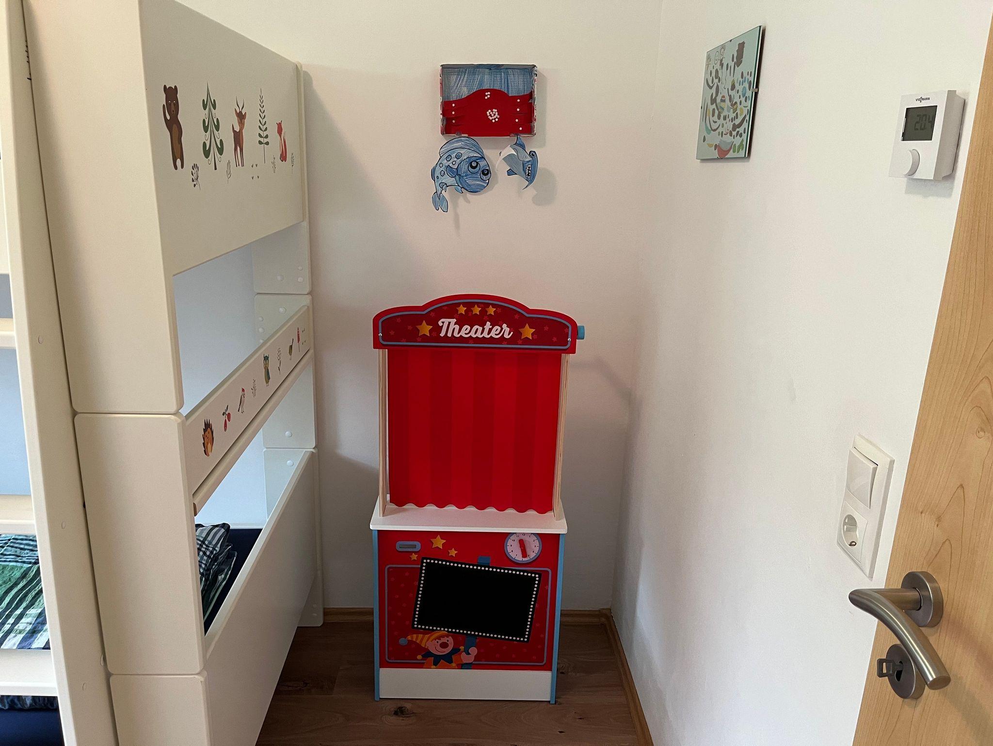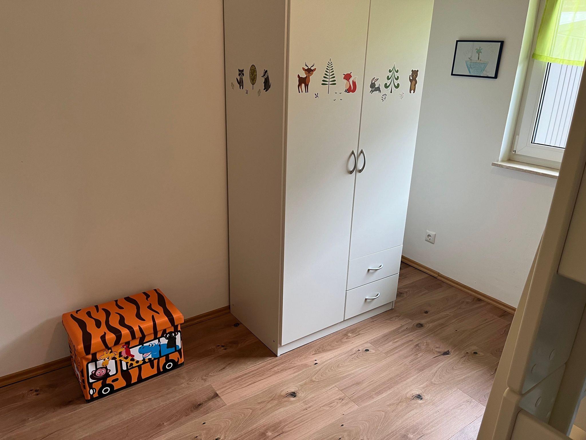 Waschmachine, Kinderreisebett und Kinderhochstuhl sind vorhanden.