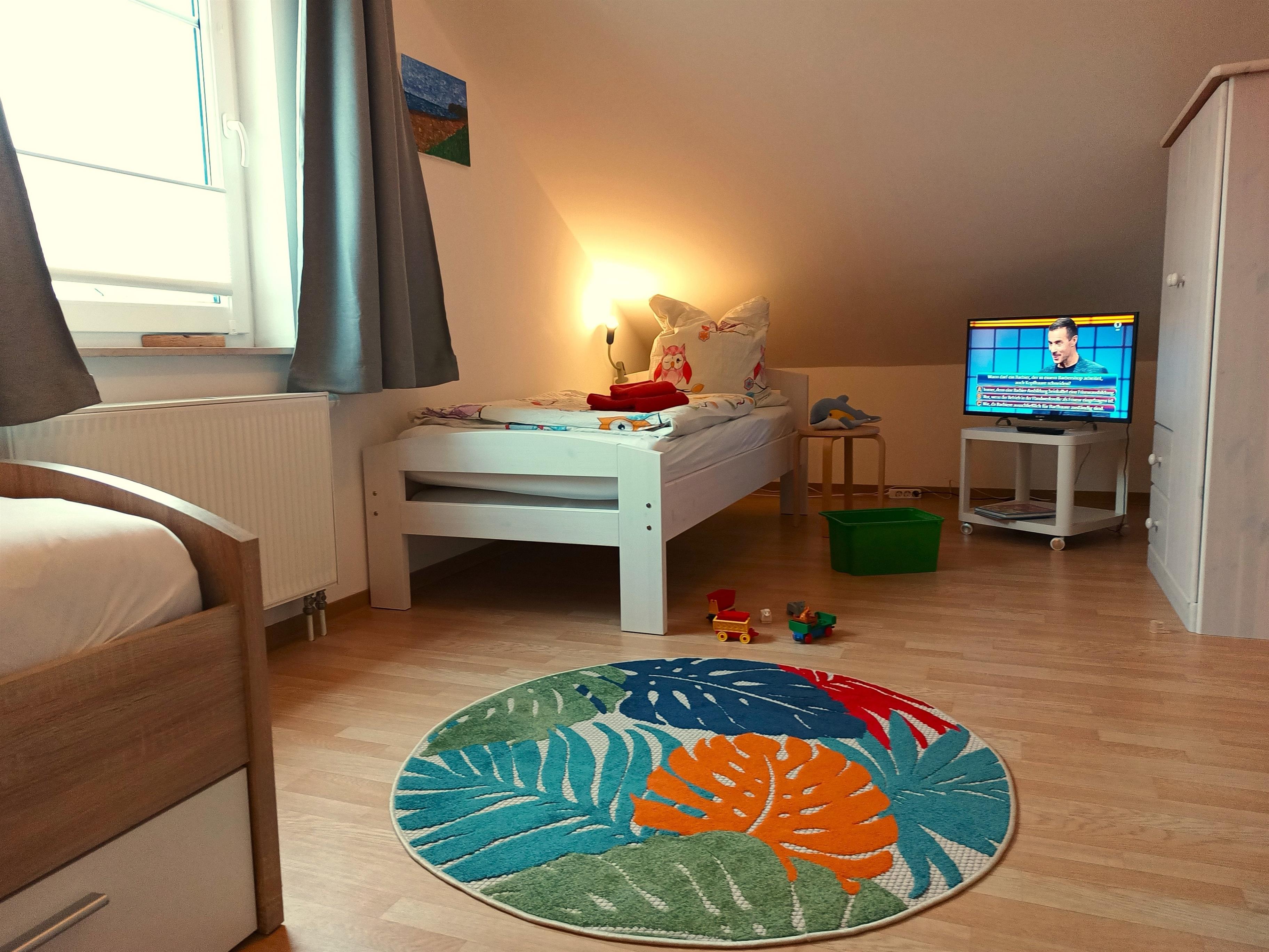 Im Erdgeschoss befindet sich ein Schlafzimmer mit Doppelbett (1,60x2 m), ebenso das Bad mit Dusche/WC, Handtuchheizung und Waschmaschine. Im Obergeschoss wartet das "Seeblick-Schlafzimmer" mit einem bequemen, 2x2 m großen Doppelbett auf Sie. Gegenüber vom zweiten, mit Dusche/WC ausgestatteten Bad steht Ihnen eine Infrarot-Sauna zur Verfügung. Im "Kinderzimmer" steht ein Kojenbett für 2 Personen und in der Spielecke finden Ihre Kinder Bücher, Legosteine und Spiele vor.
