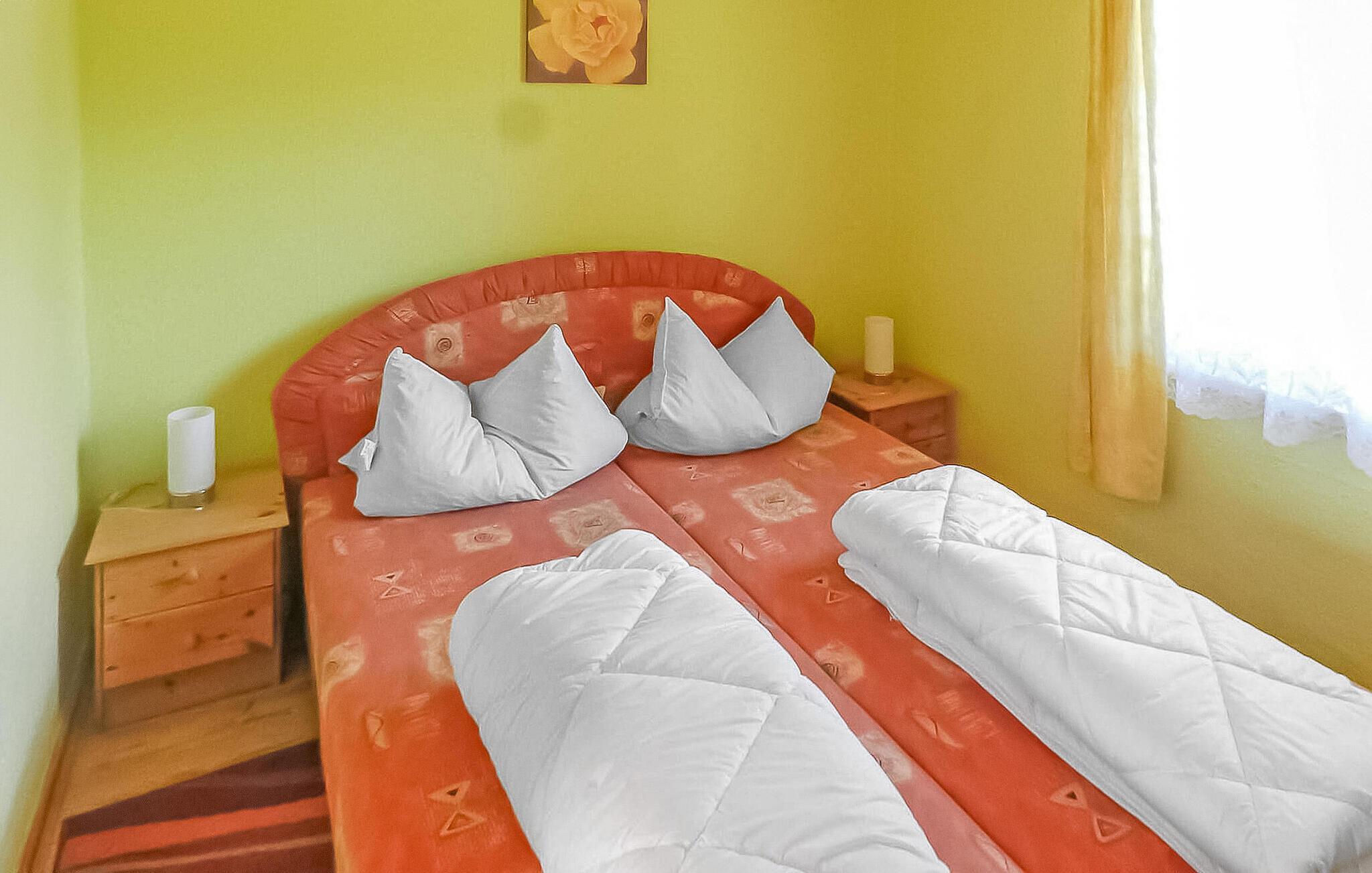 Lige ud til Warta-søen, i et lille privat feriekompleks, ligger et af tre komfortable feriehuse til op til fire personer. Badeområdet ligger cirka 50 meter væk. Cykeludlejning, en "Spur der Steine" cykelsti, en strand med legeplads og dykkerplatform samt en restaurant er tilgængelig i landsbyen. Alle tre huse har terrasse, robåd (€25/uge), grill og parkering. Feriehusene er udstyret med en stue med polstrede møbler, satellit-tv, radio, to soveværelser (en dobbeltseng, et med to polstrede liggestole), et køkken med elektrisk komfur, køleskab og fryser, kaffemaskine og et badeværelse med bruser og toilet. Dette feriehus har også en pejs og delvis udsigt over søen fra terrassen. Slutrengøring er inkluderet i den samlede pris. Sengelinned og håndklæder kan medbringes eller lejes på stedet. Energiforbrug betales på stedet. En lille hund på op til 45 cm er tilladt på denne ejendom. Byen Warthe ligger omgivet af adskillige søer i et tæt skovklædt landskab, cirka 16 km nord for Templin, og giver jer optimale forhold for lystfiskere, cyklister, vandrere, svampeplukkere og friluftsmennesker, der søger ro. Der er shoppingmuligheder, strand, fisketure og jagt i byen. Skov- og økologiske ture kan bestilles efter aftale. Templin er turistcentret i Uckermark-regionen, og bestemt ikke kun på grund af dens smukke omgivelser, der er rige på skove og søer. Der er udendørs swimmingpools, et smukt naturskønt termisk spa, bådudlejning, passagerbådsture samt adskillige restauranter og butikker. Omkring 4 km uden for byen åbnede den vestlige by Silverlake City i 2004 med forskellige fritidsattraktioner. Der arrangeres adskillige arrangementer, især i højsæsonen.