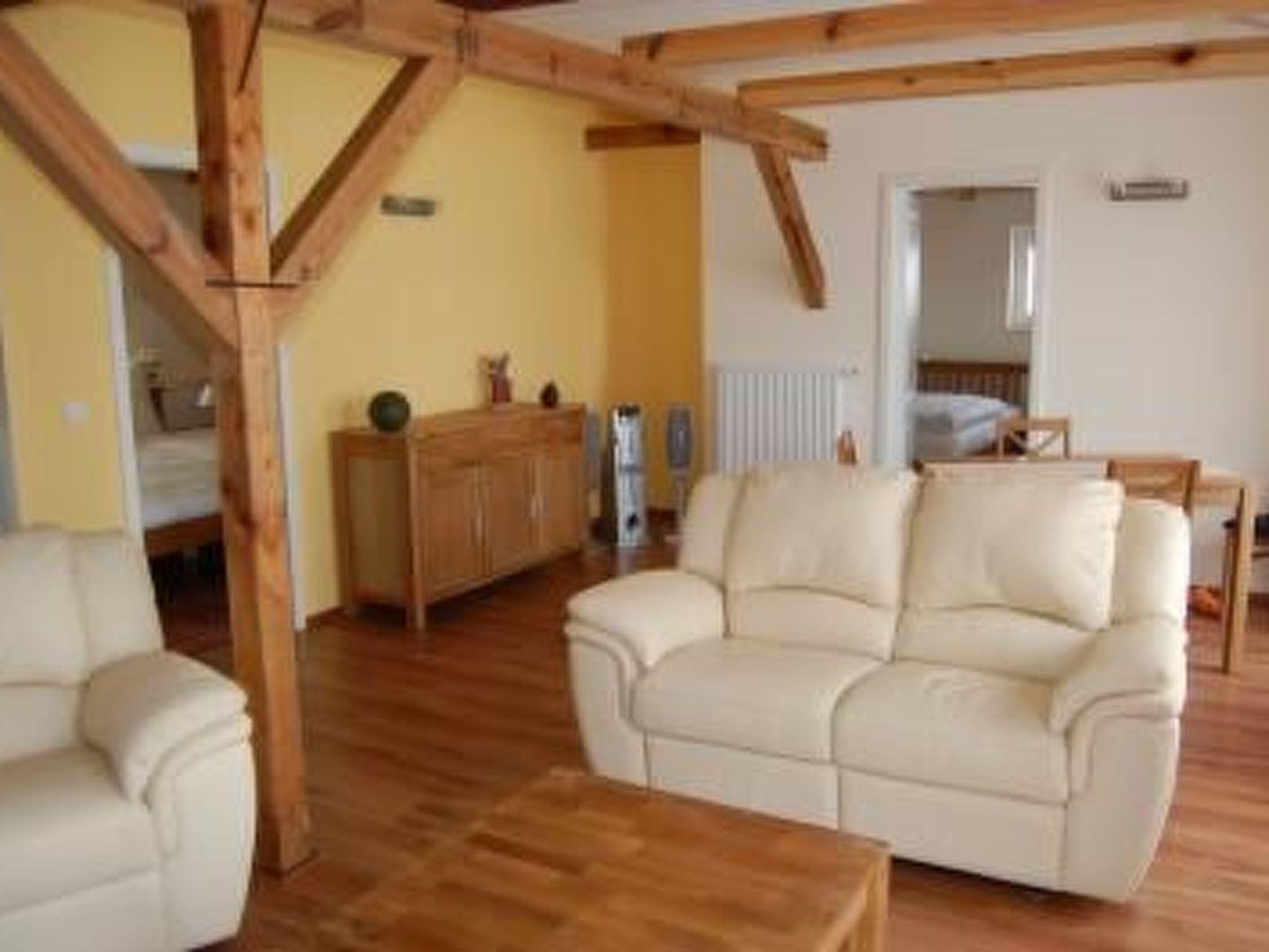 The flat is 80 square metres in size and has a spacious living and dining area, 2 bedrooms, a fully equipped fitted kitchen and bathroom with shower. In the adjoining wellness area you can also relax in the sauna (infrared cabin) in the cold seasons. The large wooden terrace is a great place to have breakfast. Excursions: Ostrich farm Berkenlatten, barefoot adventure park also in Berkenlatten, moated castle ruins Gerswalde, railway museum Gramzow, NaturTerme Templin, western town Eldorado Distance: Templin 25 km; Berlin 100 km