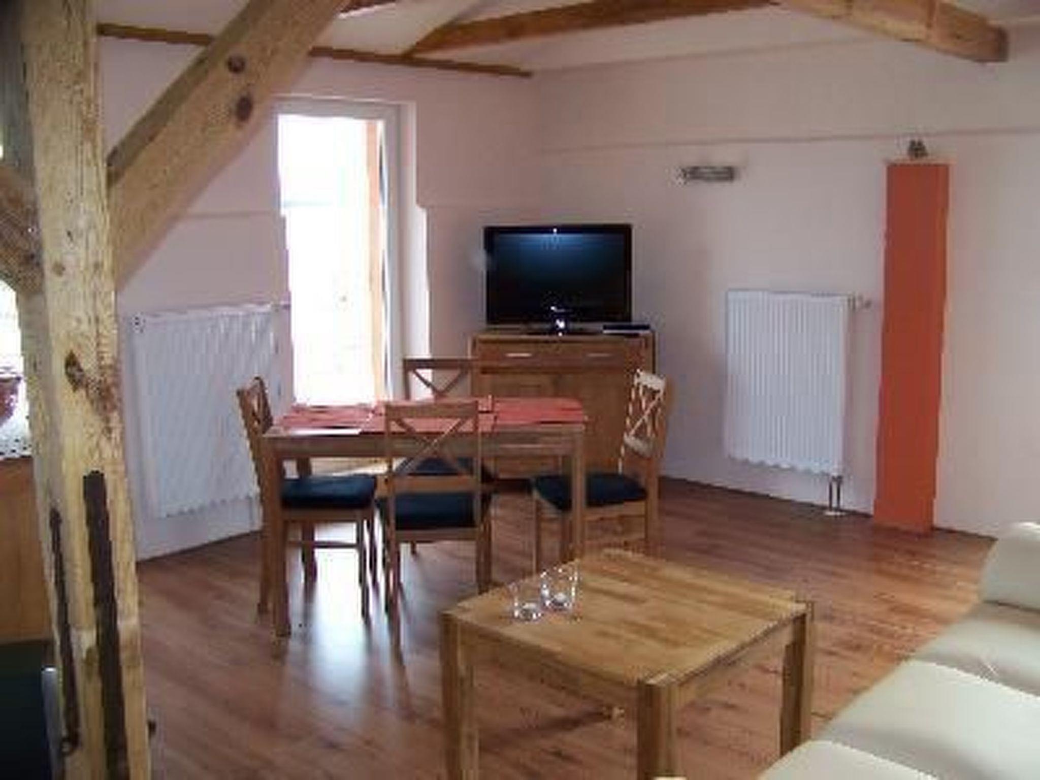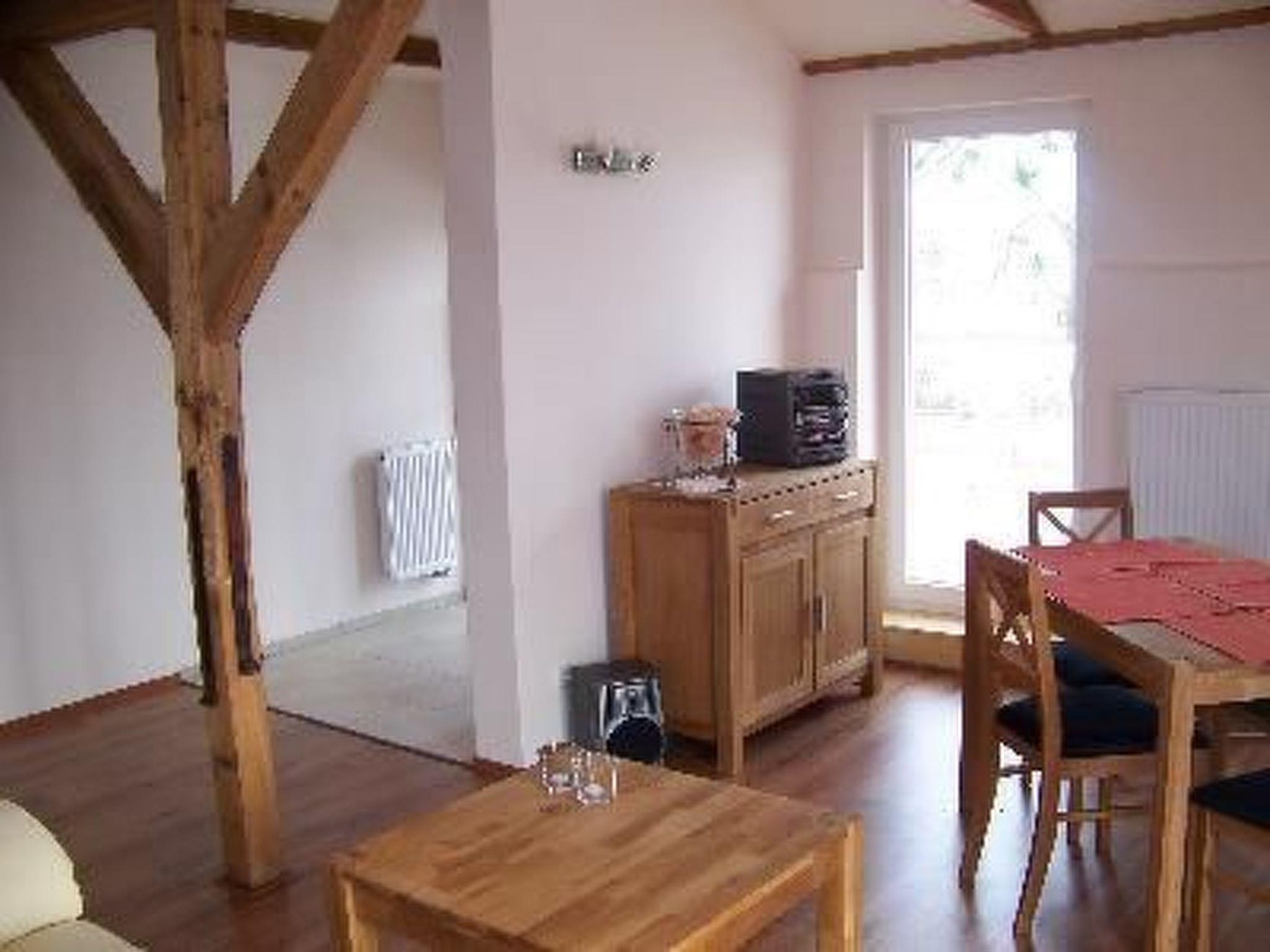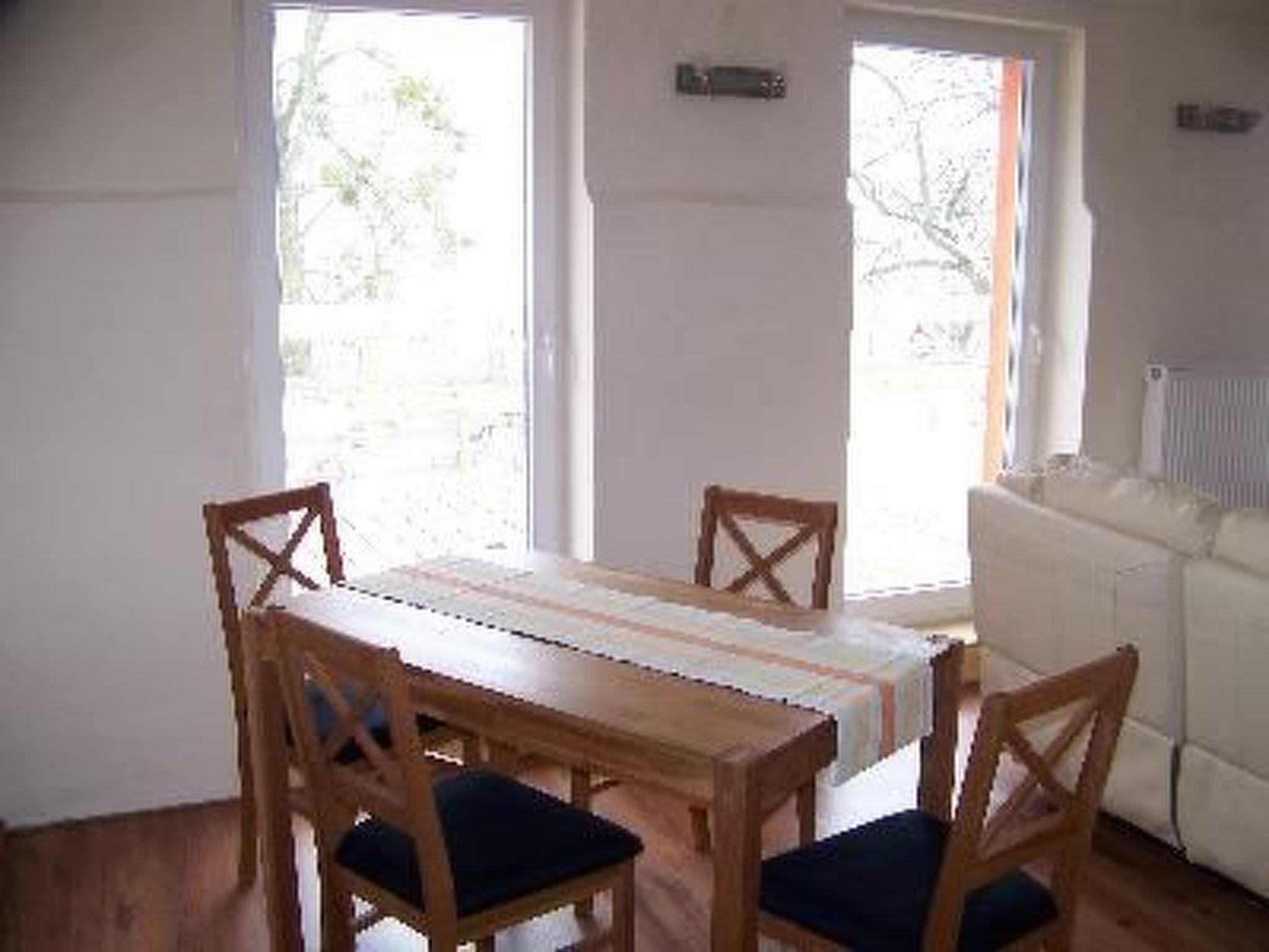 The flat is 70 square metres in size and has a spacious living and dining area, 2 bedrooms, a fully equipped fitted kitchen and bathroom with shower. In the adjoining wellness area you can also relax in the sauna (infrared cabin) in the cold seasons. The large wooden terrace is a great place to have breakfast. Excursions: Ostrich farm Berkenlatten, barefoot adventure park (also on our premises) Gerswalde moated castle ruins, Gramzow railway museum, NaturTerme Templin, western town Eldorado Distance: Templin 25 km; Berlin 100 km