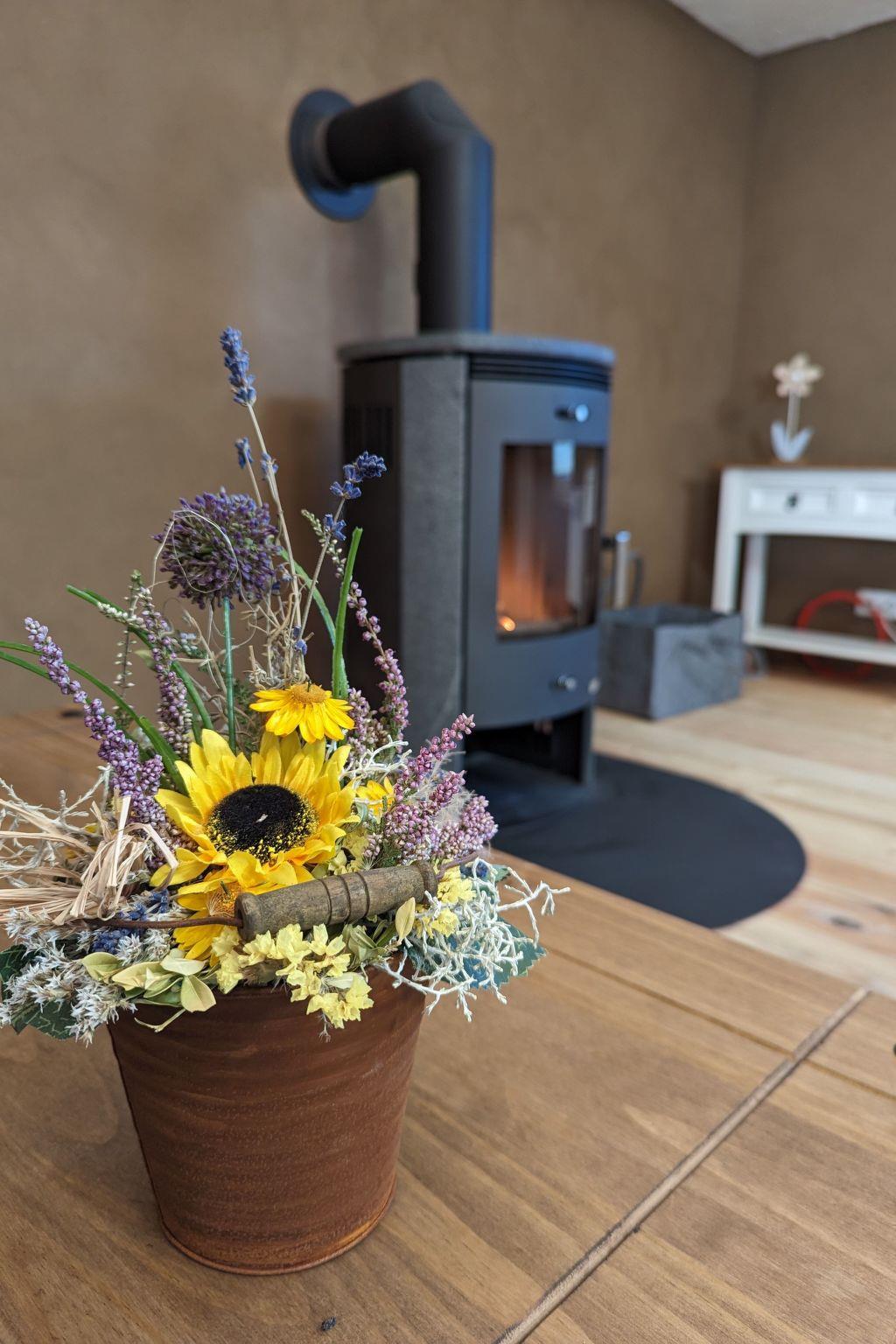 The holiday home, which was completely renovated and refurnished in 2022, is detached on a 2,500 m² plot of land for exclusive use. The holiday home is 120 m² in size and has 2 living rooms, both of which are equipped with a TV. One living room also has a fireplace. The other living room has a sofa bed that can accommodate 2 people. There are 2 bedrooms (one bed 180*200 cm, the other bed 160*200 cm). There is also a daylight bathroom with shower and underfloor heating. The kitchen is equipped with an electric cooker, induction hob, fridge, coffee machine, kettle, toaster and dishwasher. There is a dining table in the spacious kitchen that seats 6 people. In the hallway there is a coat rack for jackets and shoes and a large mirror.