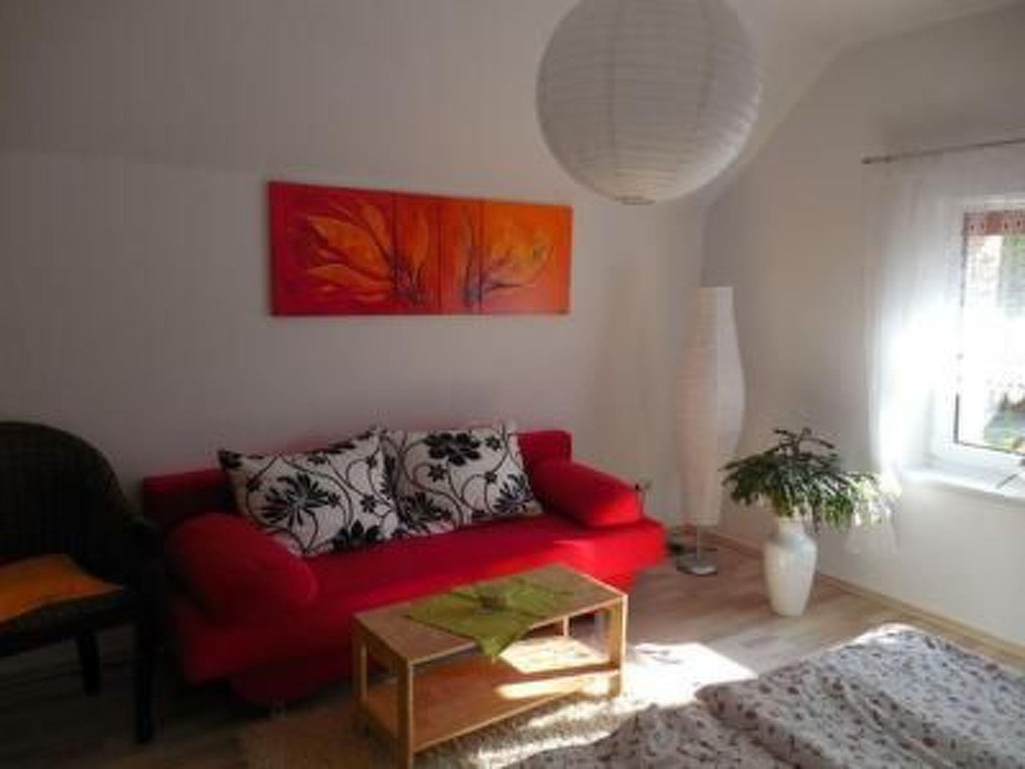 A Harvia electric heater with 6 kW is installed in the sauna barrel. There is a water bucket and ladle for an infusion. There is also interior lighting, sauna instructions, coat hooks, an hourglass and a thermometer and hygrometer. Sauna fans can end the day in a special way here. The sauna is charged separately in the price per sauna session (up to 3 people possible), see price list. Cleaning is included in the price, sauna towels are charged pro rata. The flat can accommodate 4 - 8 people. A cot is also available. On request, the morning breakfast can be enriched with a fresh egg from the neighbouring henhouse.