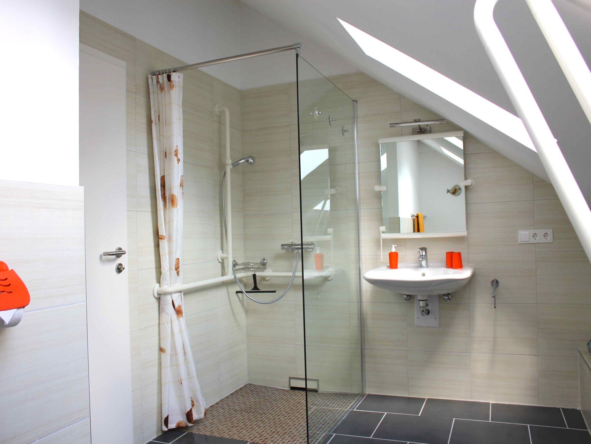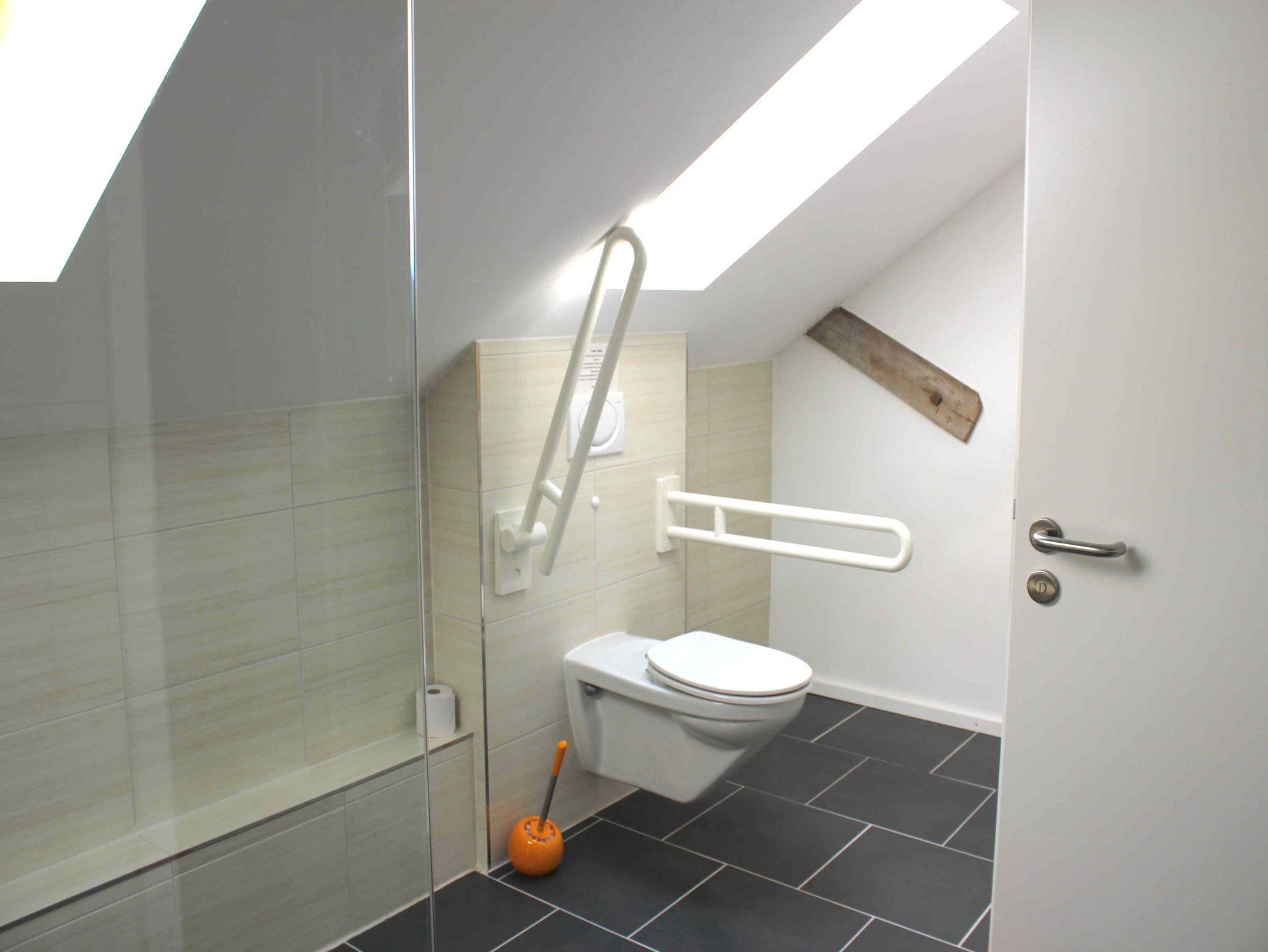 Das Zimmer ist komplett behindertengerecht gestaltet, und ein Lift im Haus sorgt für bequemen Zugang.