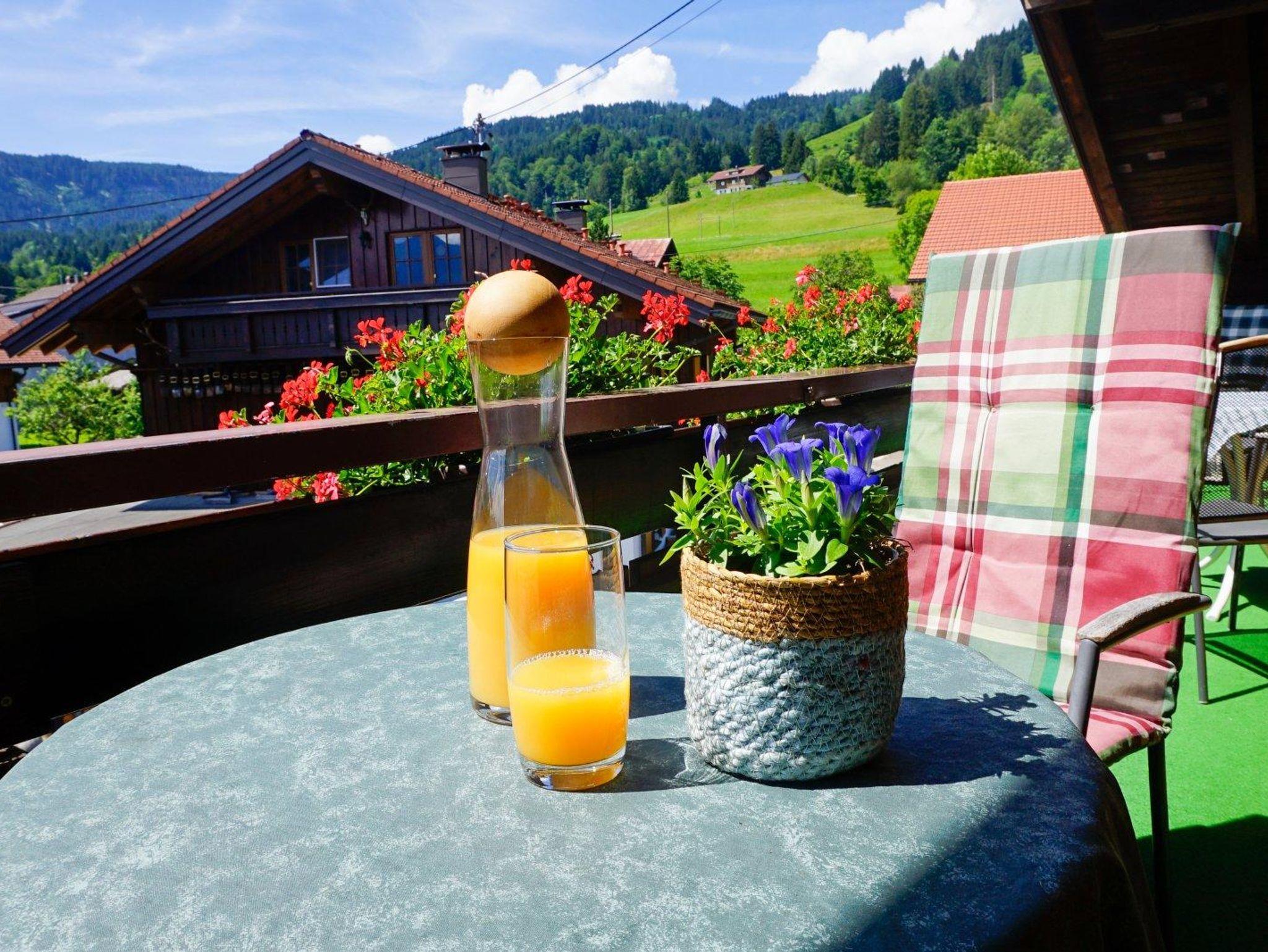 in nächster Nähe zur Hörnerbahn mit Wander- und Skigebiet sowie Loipen, Bushaltestelle und Dorfladen.