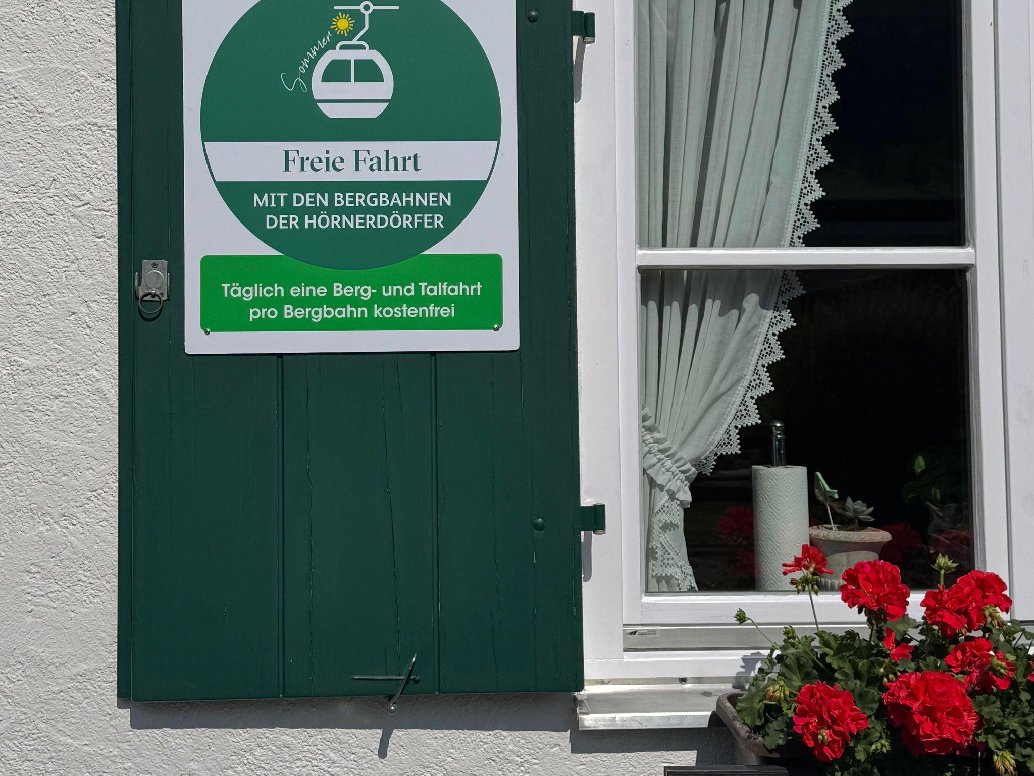 Von Mai bis November Hörnerbergbahnen 1 mal pro Tag freie Fahrt. W-LAN kostenlos, Infrarotkabine kostenlos.