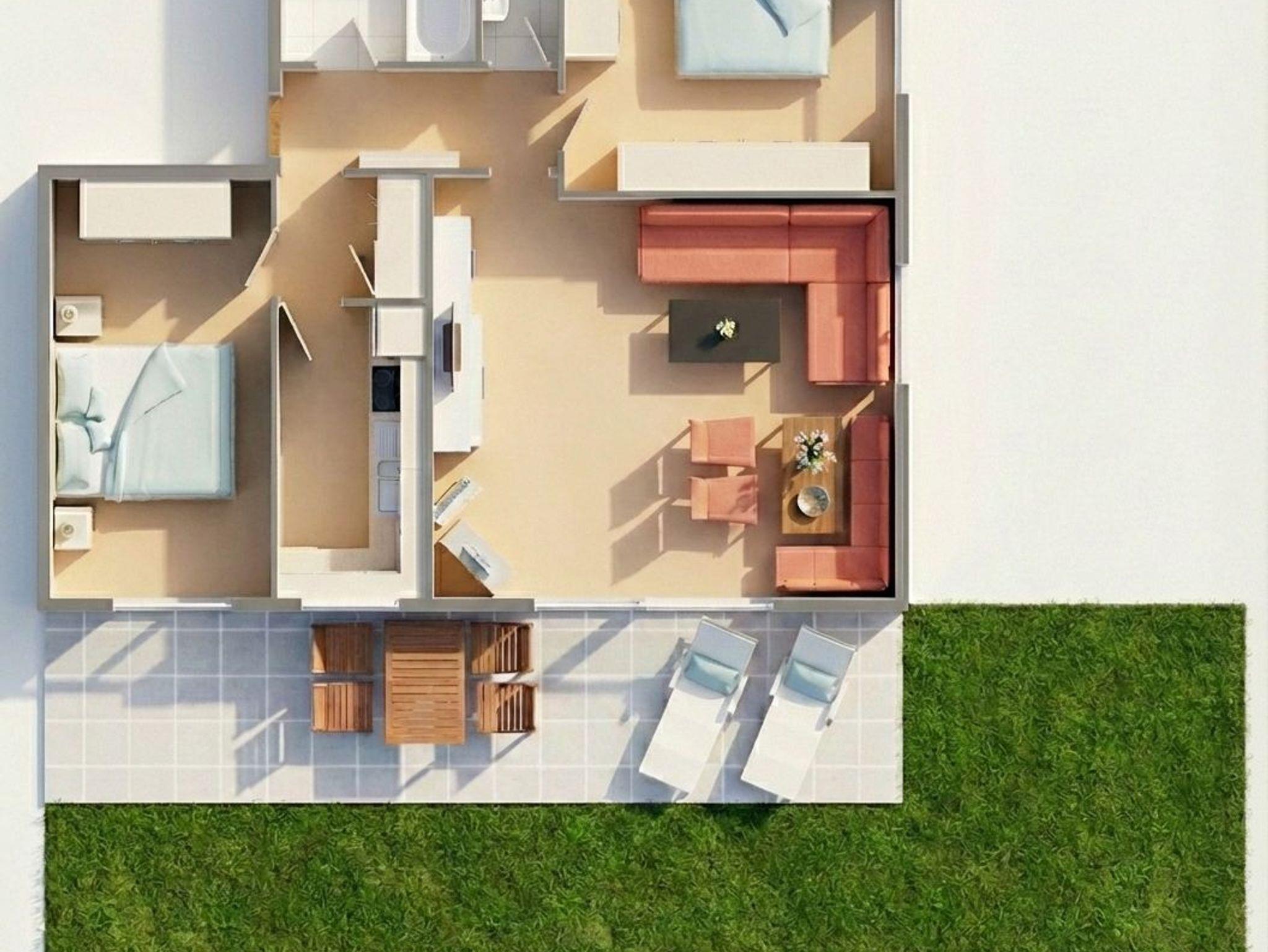 Luxuriöse 3-Raum-Wohnung (mit 4 Sternen klassifiziert) im Erdgeschoss, 70 qm, für 2-4 Personen, mit zwei separaten Schlafräumen, Ost- und Südterrasse sowie Garten mit Bergblick