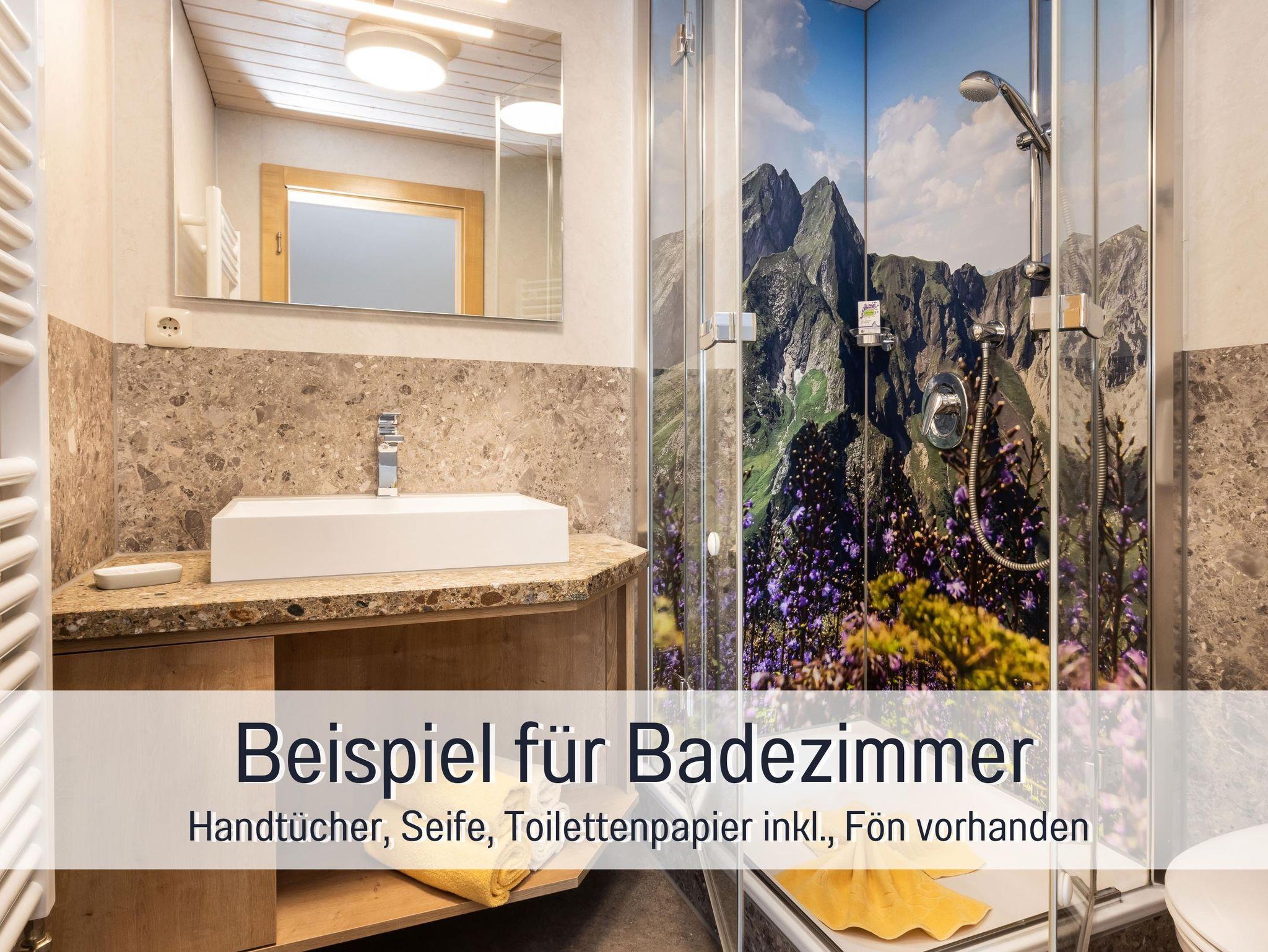 • Badezimmer mit Dusche (Motiv variiert), Fön vorhanden