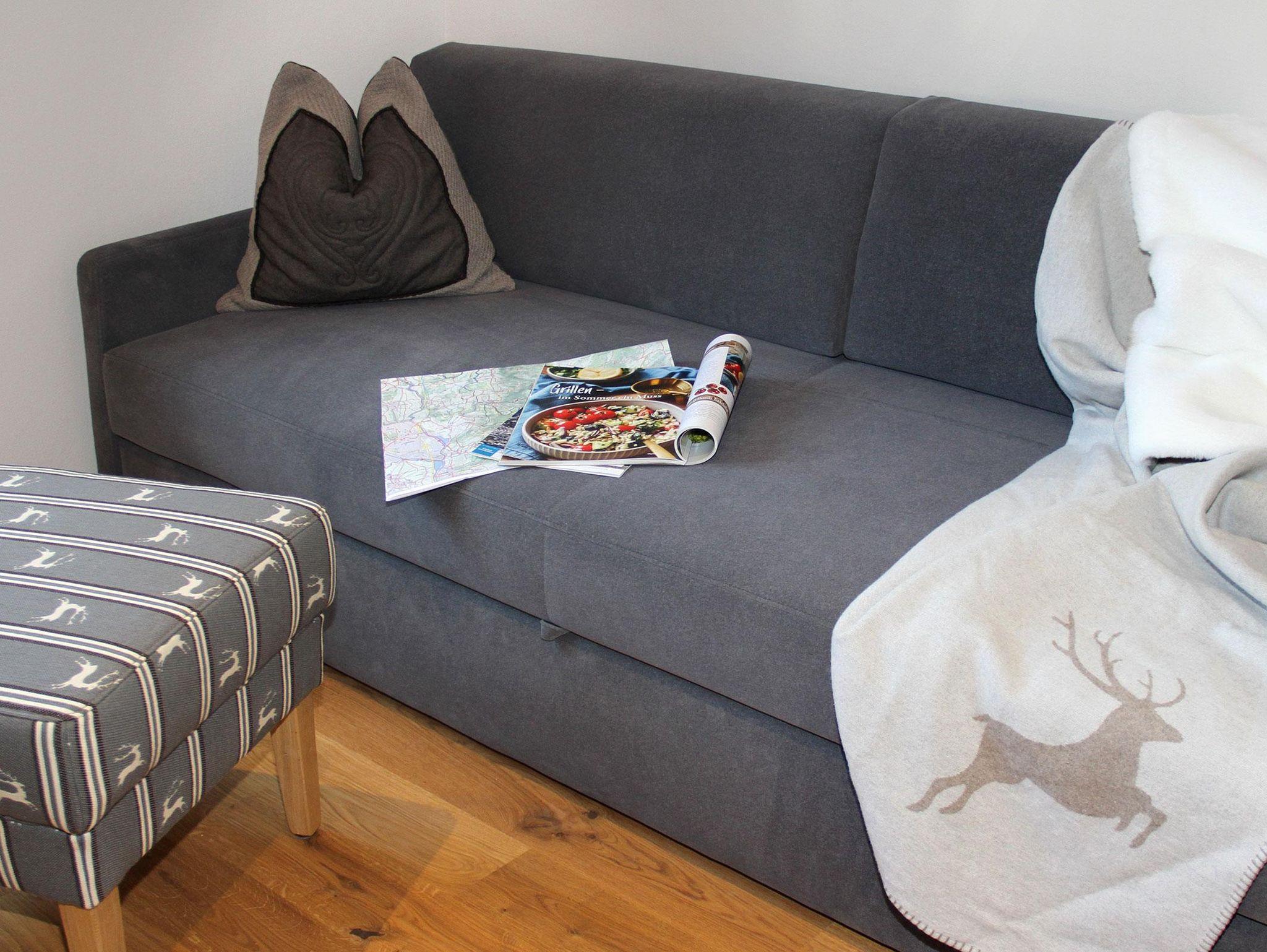 Das 59 qm große 3-RaumChalet befindet sich im Obergeschoss. Die Ausstattung ist im moder-alpinen Stil gehalten, der in hochwertigen, traditionellen Echtholzböden, Altholzwänden und Holzunikaten eine harmonische Verbindung findet. Der in warmen Naturtönen gehaltene Wohn-Essbereich mit voll ausgestatteter Küche hat einen direkten Zugang zu einem überdachten, 8 qm großen Balkon mit Gartenmöbeln für eine kleine Auszeit bei schönem Wetter und dem bergzauberhaften Blick in die Allgäuer Hochalpen. Flat-TV und WLAN laden zu gemütlichen Stunden auf der Couch oder im heimeligen Ohrensessel ein. Zwei Schlafräume mit jeweils einem Doppelbett und einem Einzelbett, einem Badezimmer mit Regendusche/WC sowie einer privaten Infrarotsauna für 2 Personen runden einen aktiven Bergtag mit Wärme, Ruhe und Wohlgefühl ab. Besonders geeignet für Paare und einen 3-Personen-Haushalt.