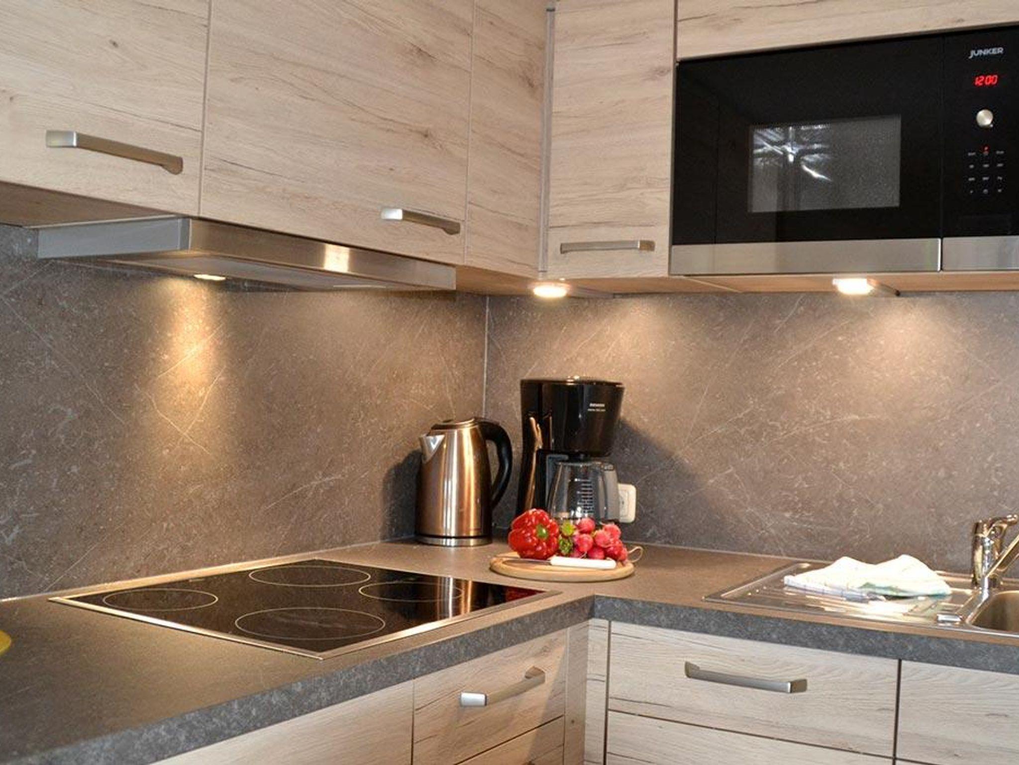 Neu renovierte 2-Zimmer-Wohnung mit 50 m², ein separates Schlafzimmer, großzügiger Ostbalkon mit freiem Bergblick. Küche mit Induktionsherd, Geschirrspülmaschine, Mikrowelle.