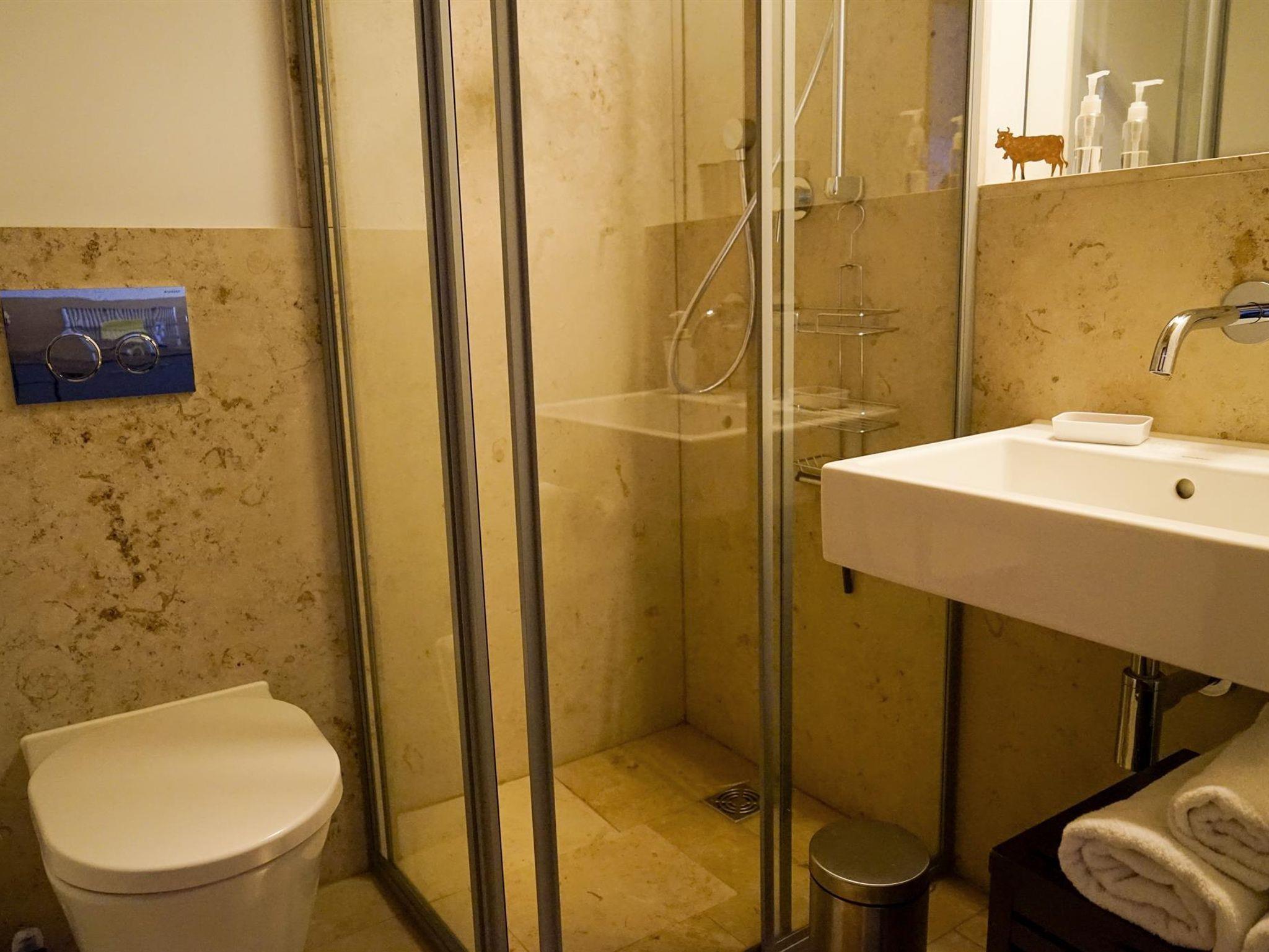 Unser geräumiges 1-Zimmer Apartment (38qm) hat einen separaten Eingang. Es ist modern, luxuriös und komfortabel mit einem Doppelbett, einem bequemen Schaukelsessel und einer gemütlichen Essecke ausgestattet. Die kleine Terrasse lädt zum Frühstück in der Morgensonne ein.