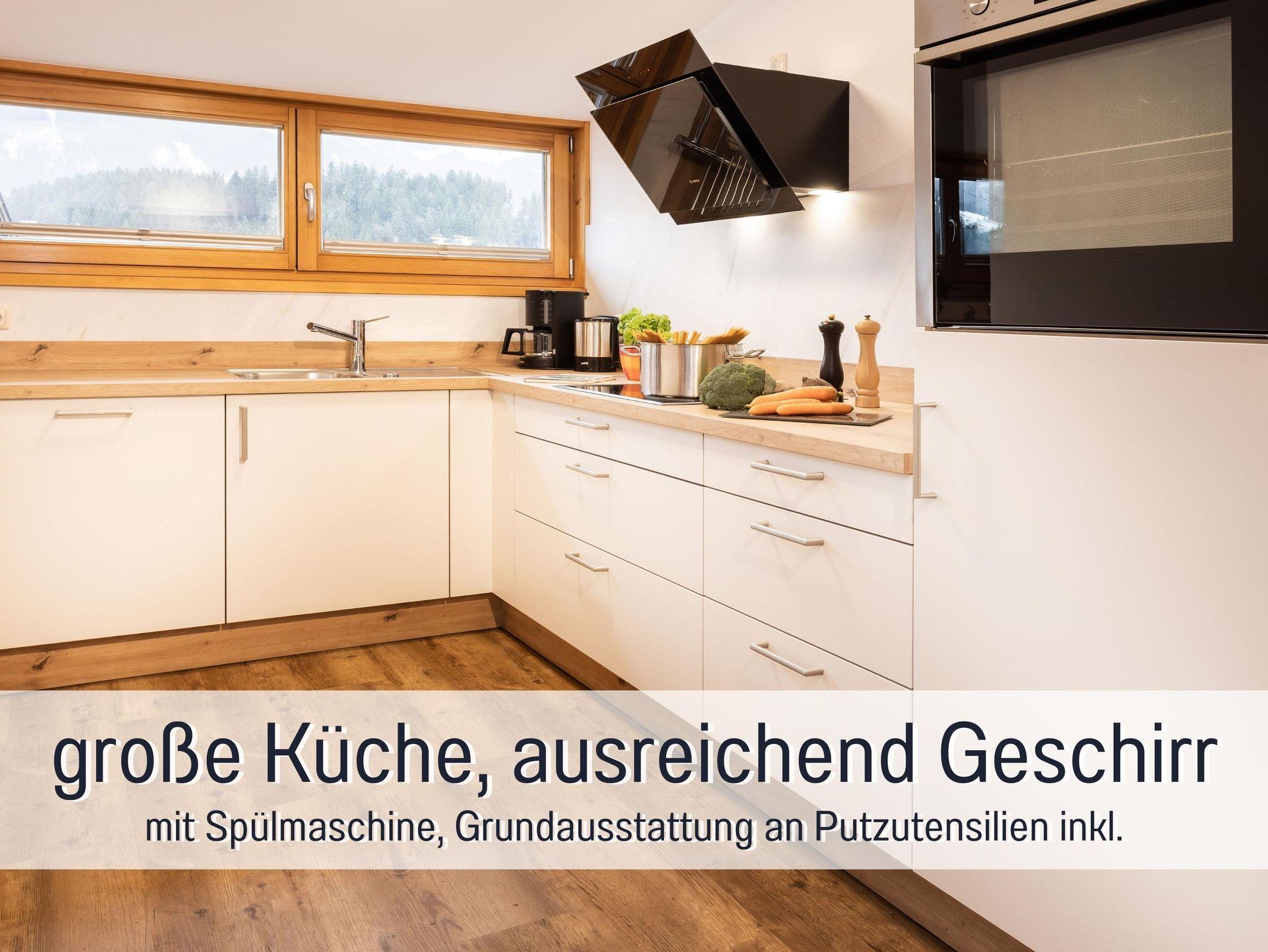 • gemütliche große Wohnküche mit separatem Essbereich, großem (Schlaf-)Sofa, SAT-TV (Flachbildschirm), Radio/CD/Cassette sowie eine optisch leicht abgetrennte geräumige Küche mit 4-Platten Herd, Spülmaschine, Kühlschrank mit ***TK-Fach und Backofen