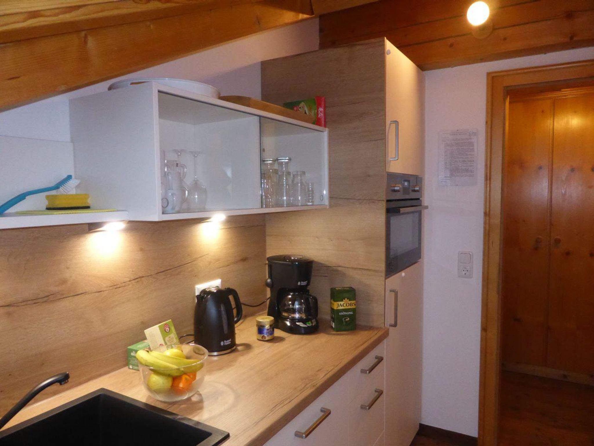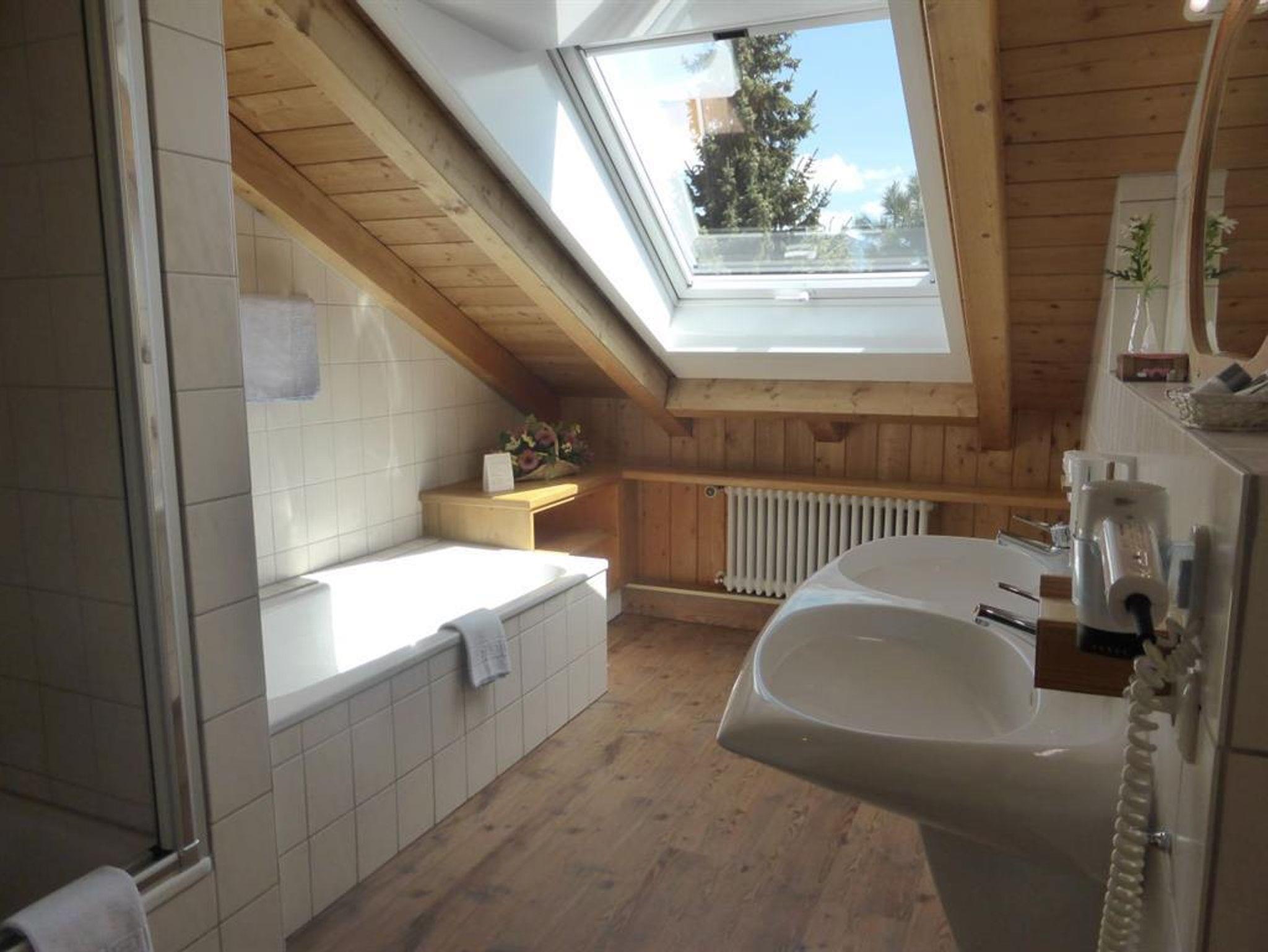 Geräumiges Familienzimmer/Juniorsuite mit ca. 50qm im Dachgeschoß. Das große Tageslichtbad ist mit Badewanne und Dusche sowie Doppelwaschbecken ausgestattet. Das WC ist separat. Die Küche mit Backofen ist komplett ausgestattet. An Schlafmöglichkeiten stehen zur Verfügung: Doppelbett (180cmx200cm), Etagenbettcouch mit 1 x 82cmx190cm (oben) und 1 x 82cmx180cm (unten), Spitzboden für zwei Personen.
