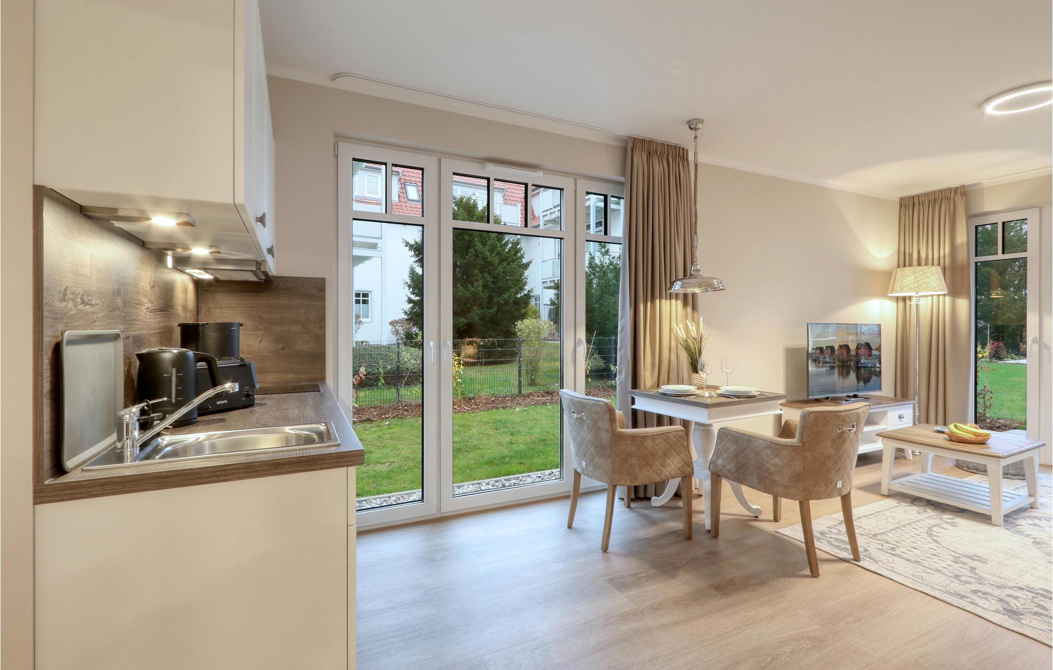 Lad jer fortrylle af den kilometerlange sandstrand, krystalklart vand og uberørt natur. Begynd dagene på jeres egen terrasse/balkon med friske rundstykker fra bageren ved siden af. Et tekøkken er tilgængeligt til tilberedning af småretter i lejligheden. Hyggelige aftener i lejligheden er lige så attraktive som en lækker middag med en kold øl i restauranten. For at I ikke skal bekymre jer om noget under jeres afslappende ferie, hjælper receptionen jer gerne med spørgsmål, ønsker og insidertips i- og omkring Boltenhagen.