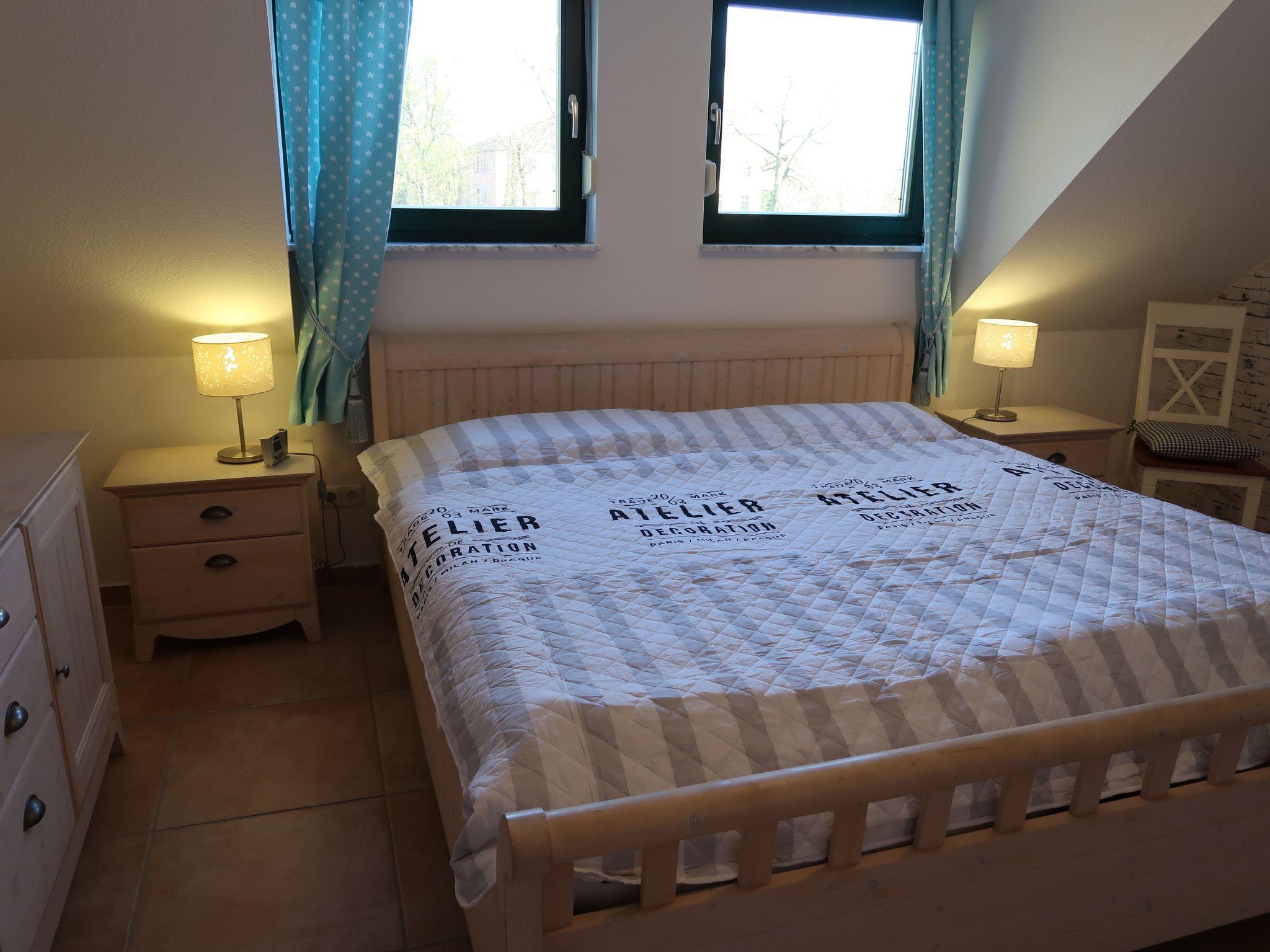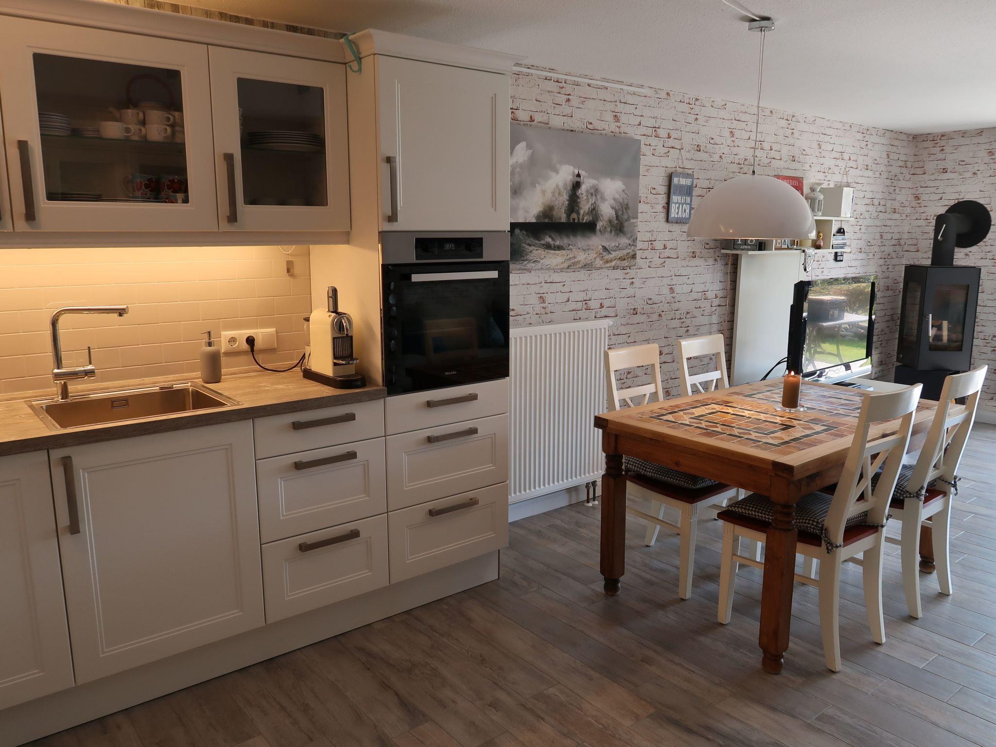 This holiday house with about 98m² of living space and with free wireless Internet access was freshly renovated in May 2015 and provides a comfortable and charming decor with a Scandinavian stove for cosy hours. The house is on two floors and is non-smoking. It has a living and dining room with a flatscreen TV with a satellite receiver, a DVD/CD player, a Bluetooth receiver and satellite radio, as well as a Scandinavian stove. There are three bedrooms on the first and second floor, of which two have a double bed and the other has a French bed. There is an open kitchen with a ceramic hob, oven, fridge with freezer compartment, dishwasher, microwave, coffee machine, espresso machine (Tchibo Cafissimo tabs), kettle, toaster, hand mixer, and a dining table and chairs. The bathroom on the second floor has a big shower, a WC and a hairdryer. There is a further WC on the ground floor, along with a washing machine and a dryer. The whole house has radiators. You need t bring your own beach, hand and tea towels. Bed linen (155 x 220cm) is provided on arrival for a fee.
