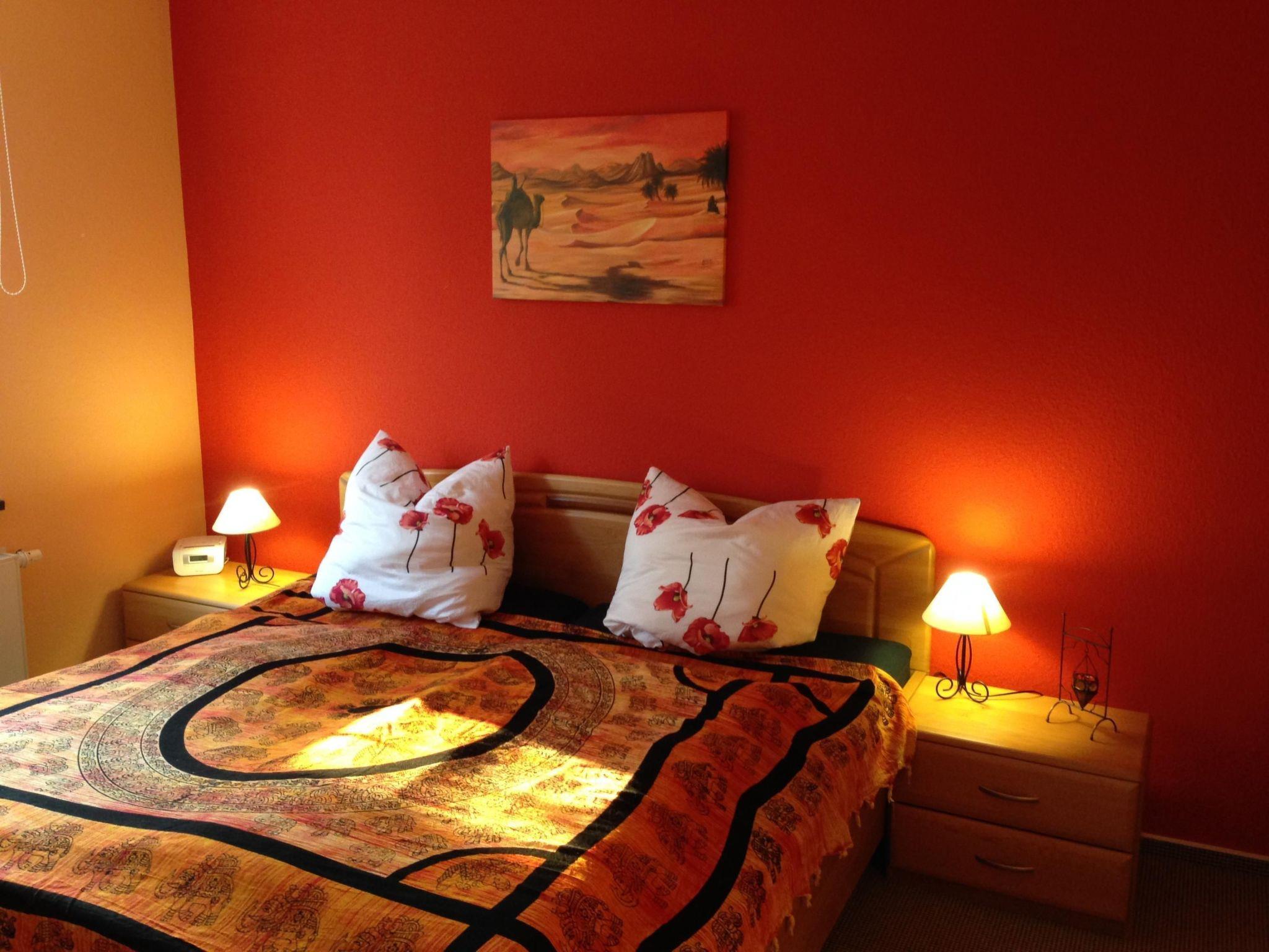 The tastefully furnished 2-room apartment is located on the ground floor and is bright and cosy for 2-4 people on around 60 sqm. The quietly located holiday flat offers a wonderful view of the countryside. When you enter, you immediately feel like you're on holiday. The well-kept kitchen is fully equipped with all kitchen appliances, including dishwasher, ceramic hob, fridge and freezer. The living area invites you to relax, the two comfortable sofas can be pulled out and easily accommodate an extra bed for 2 people. A satellite TV and DVD player are also available here. The bedroom has a double bed with two high-quality mattresses, which can be individually adjusted using the slatted frames, and a large wardrobe for your holiday wardrobe. The modern bathroom with large mirror, an elegant granite vanity top, washing machine and underfloor heating rounds off the entire flat.